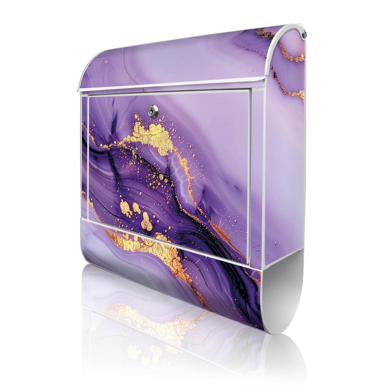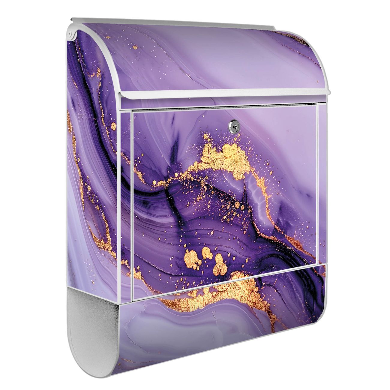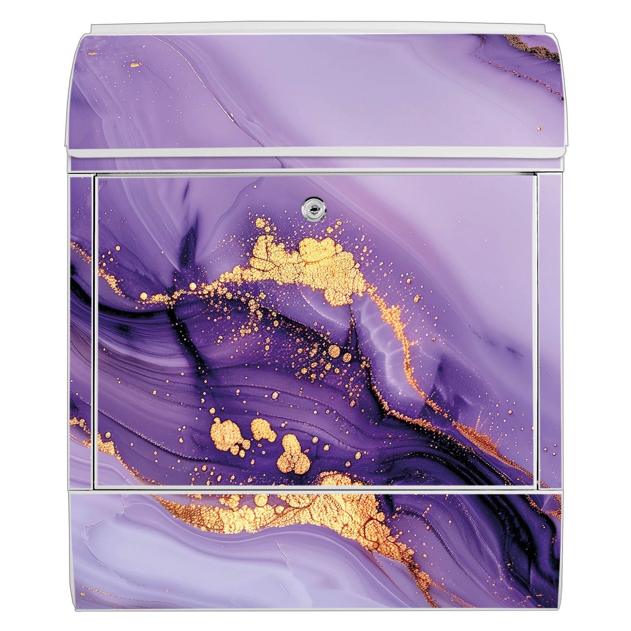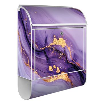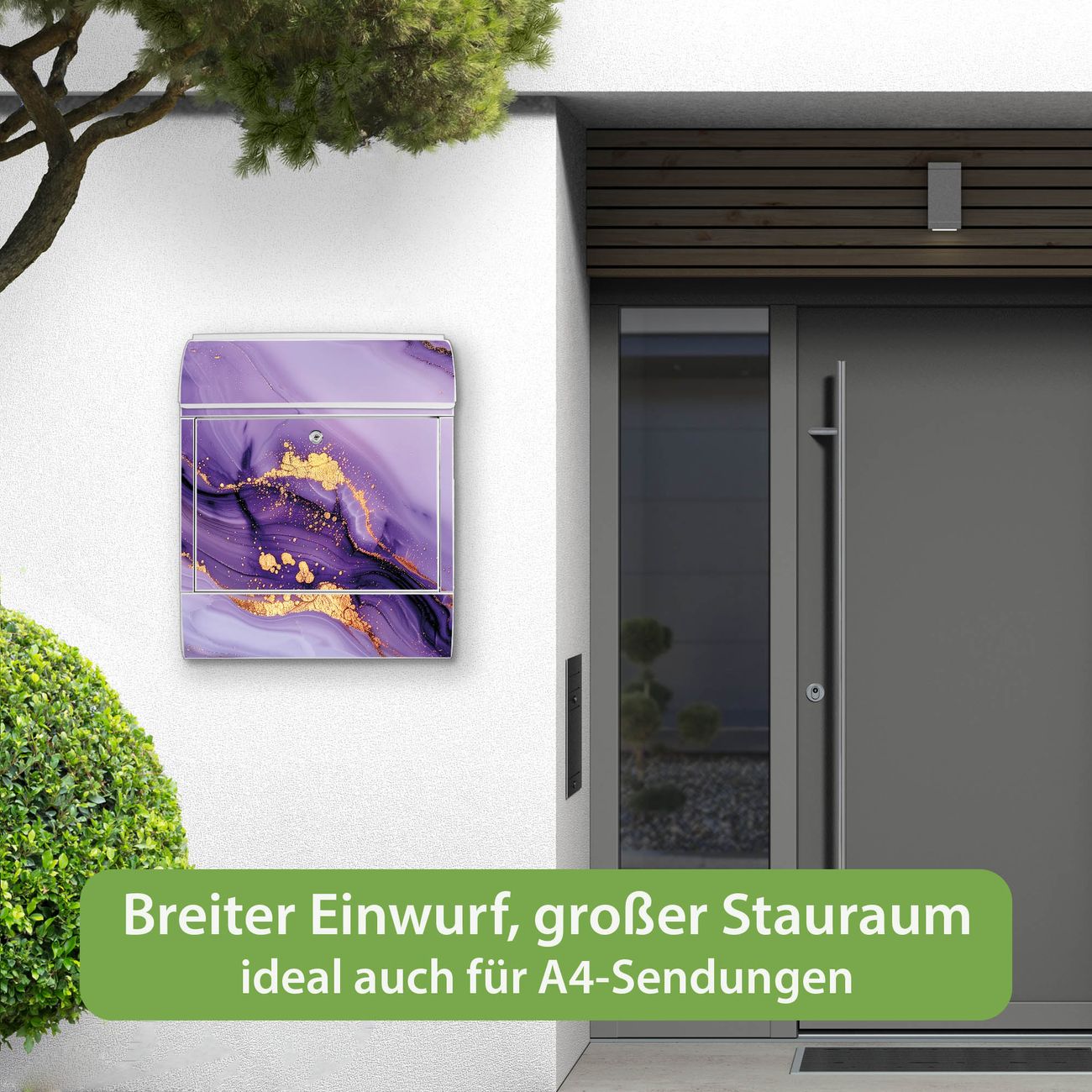 Großer Stahl Briefkasten Motiv Lila Marmor mit Gold 3