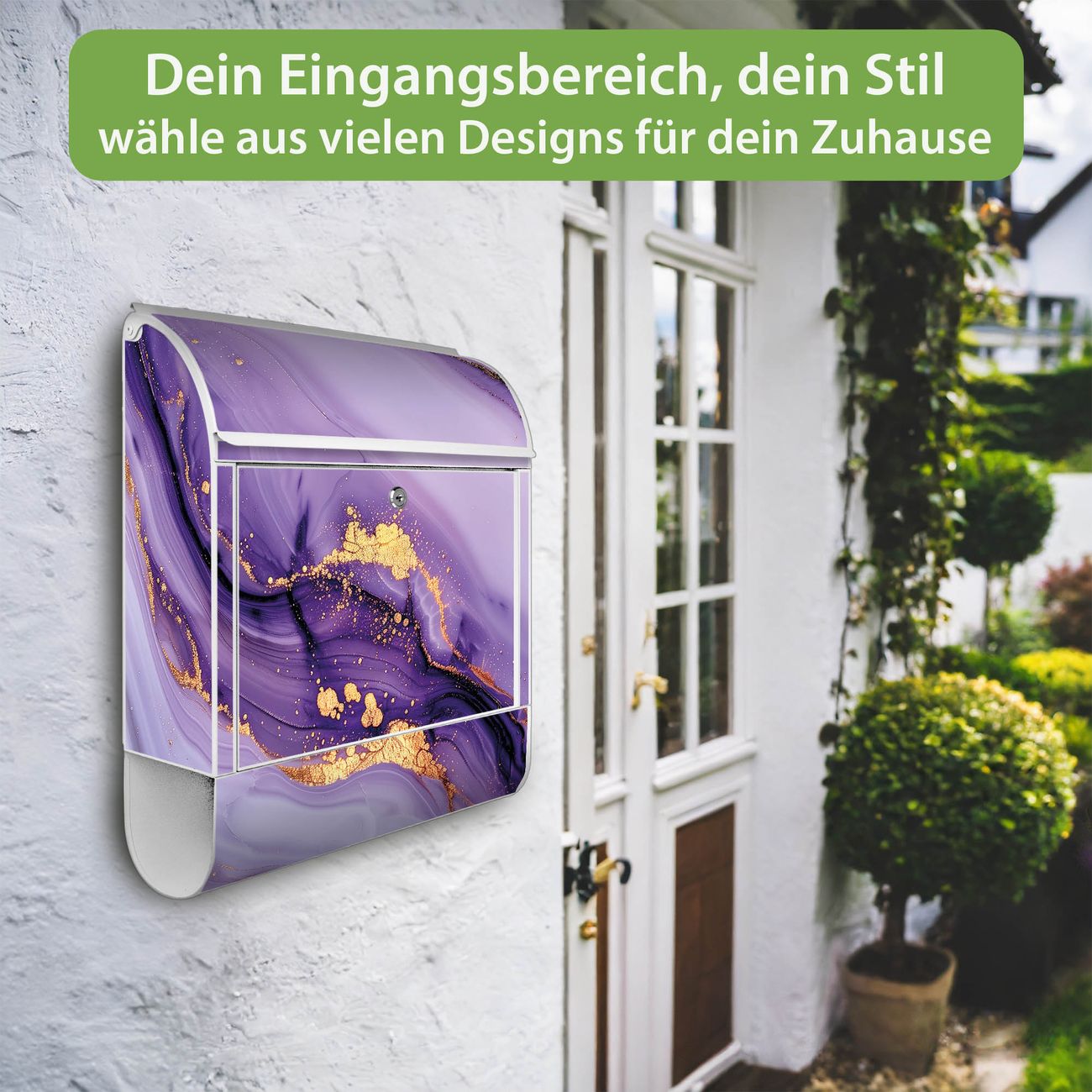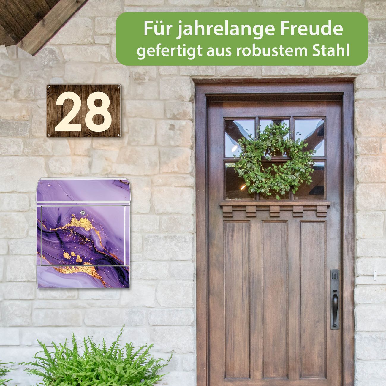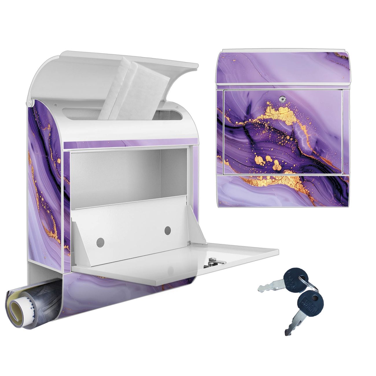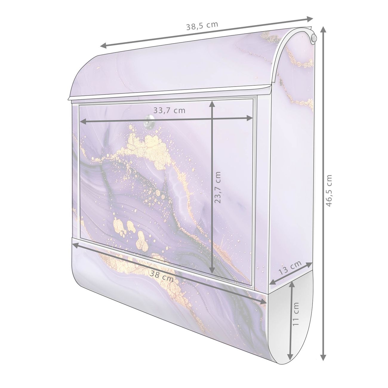Großer Stahl Briefkasten Motiv Lila Marmor mit Gold 3
