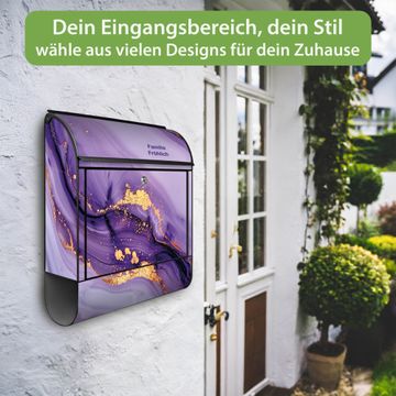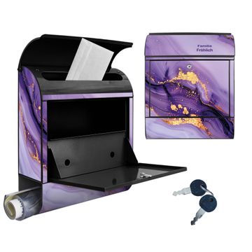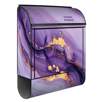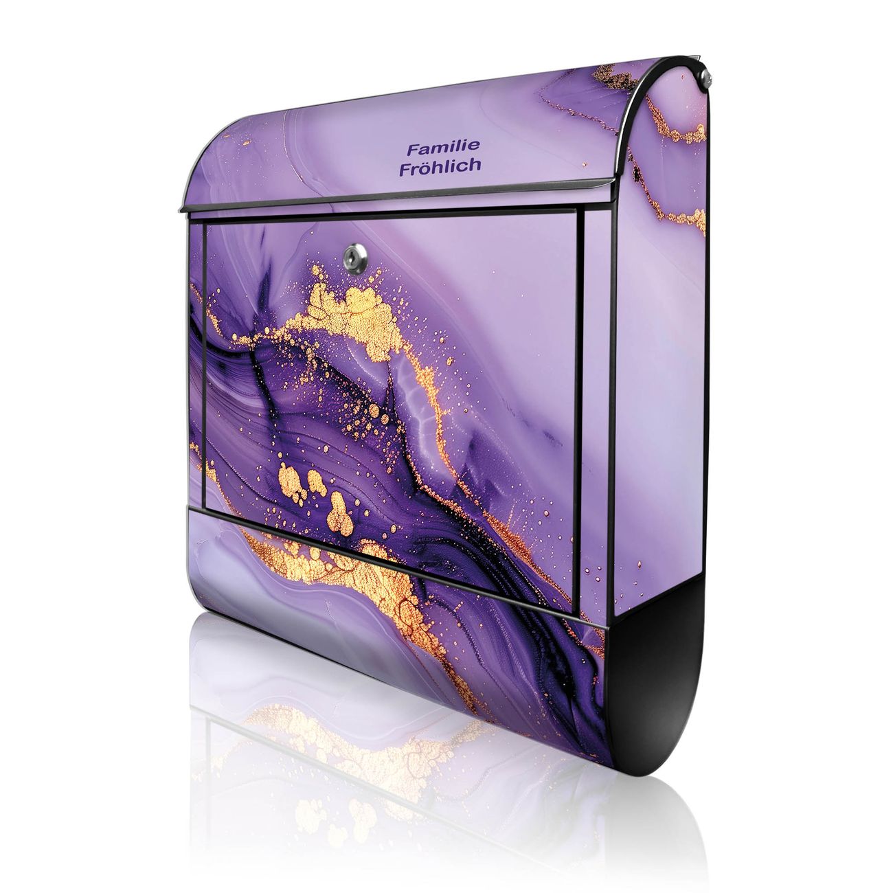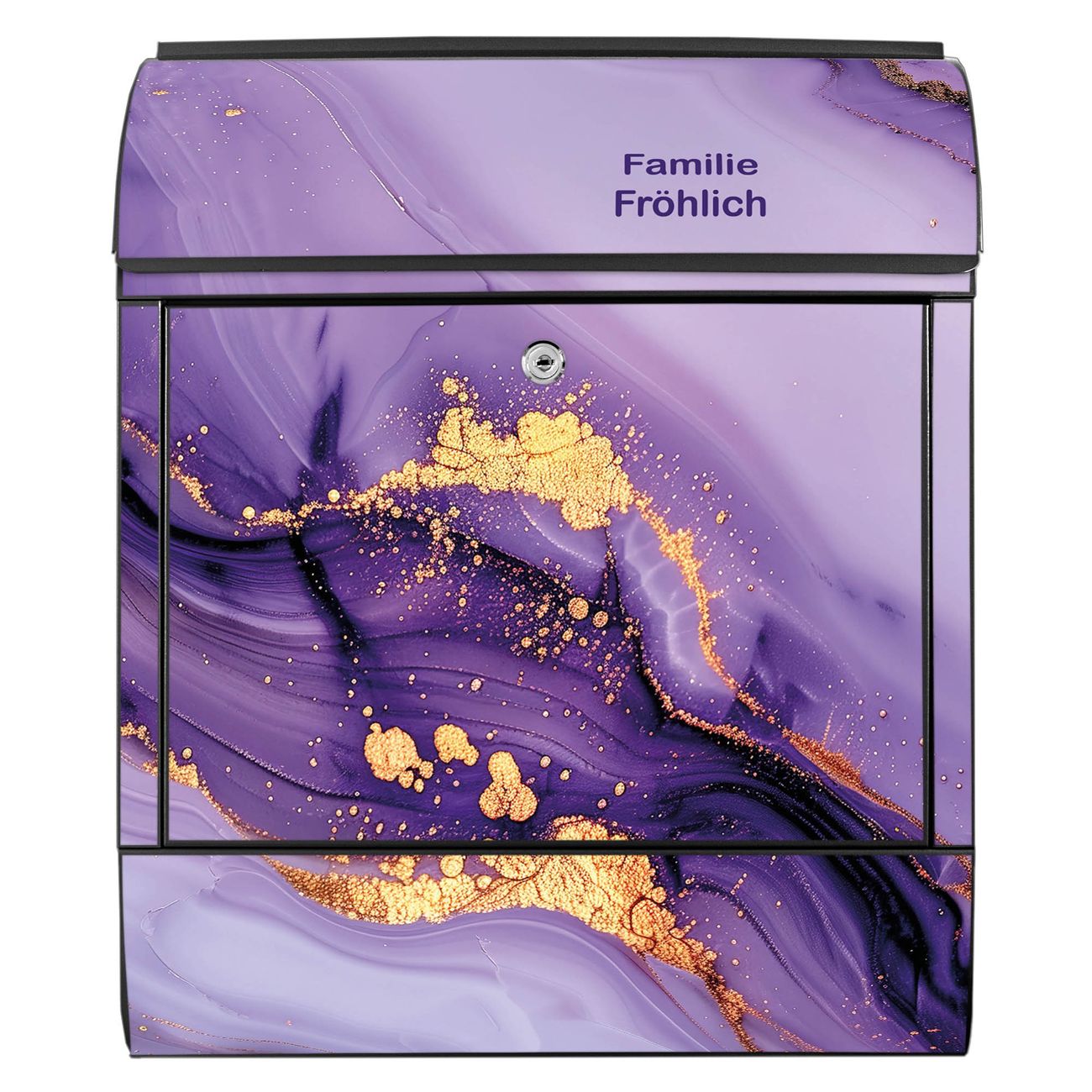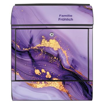 Großer Stahl Briefkasten Motiv Lila Marmor mit Gold 3