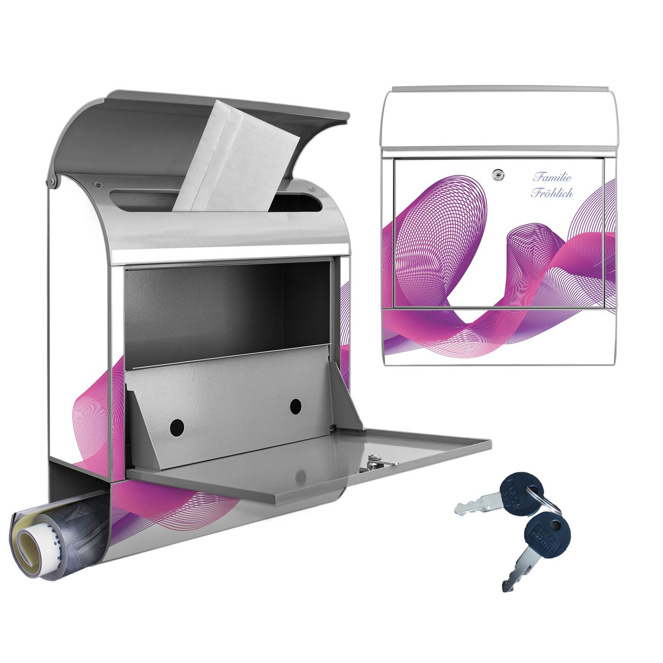 Großer Stahl Briefkasten Motiv Lila Schleier