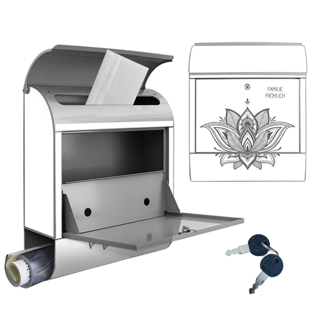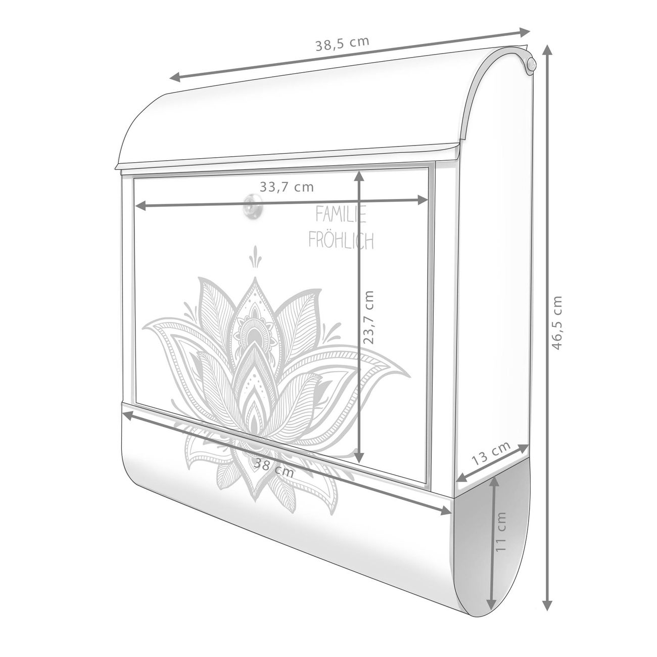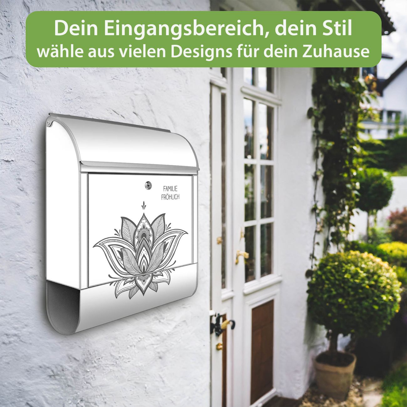 Großer Stahl Briefkasten Motiv Lotusblüte 9