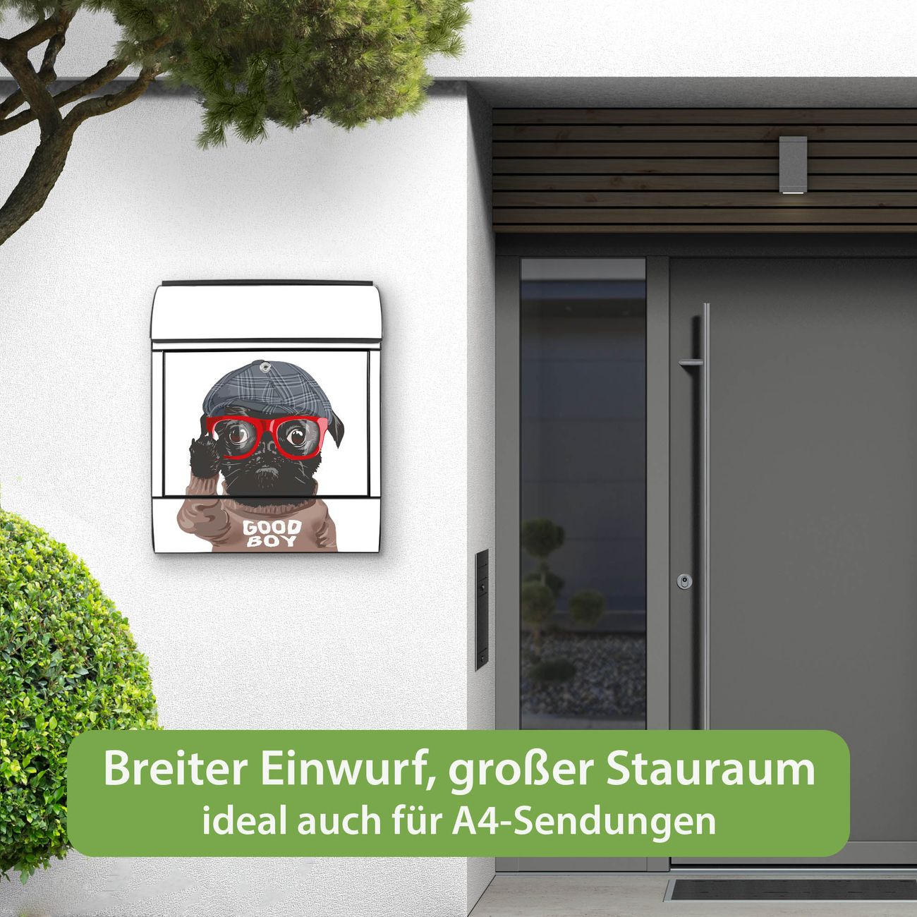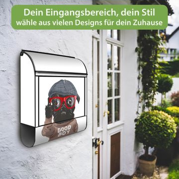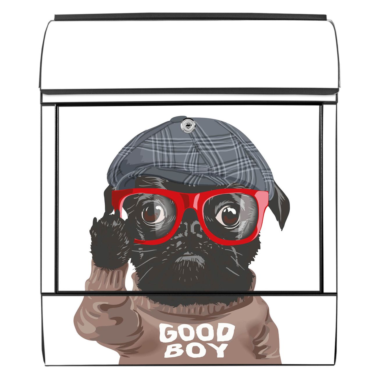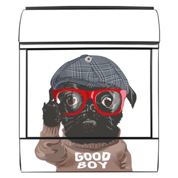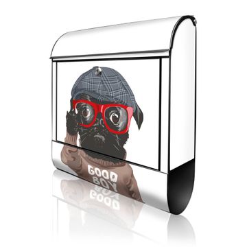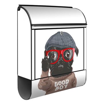 Großer Stahl Briefkasten Motiv Lustiger Mops mit Brille
