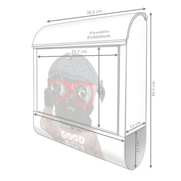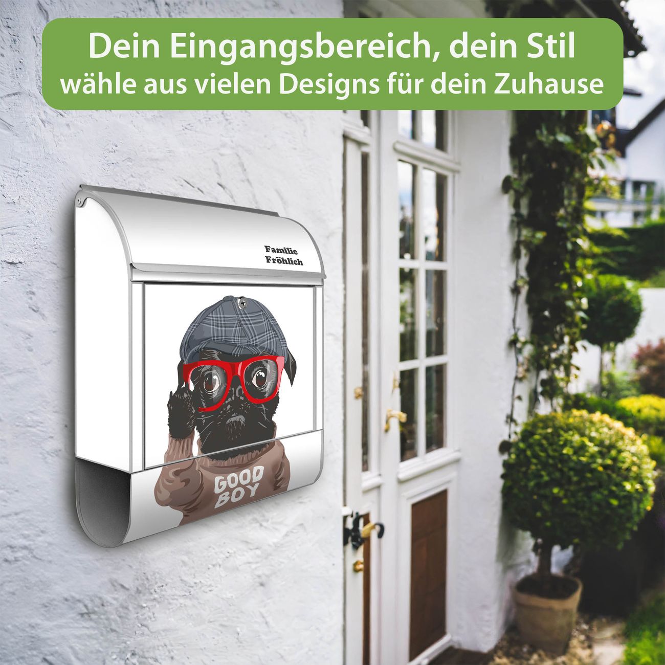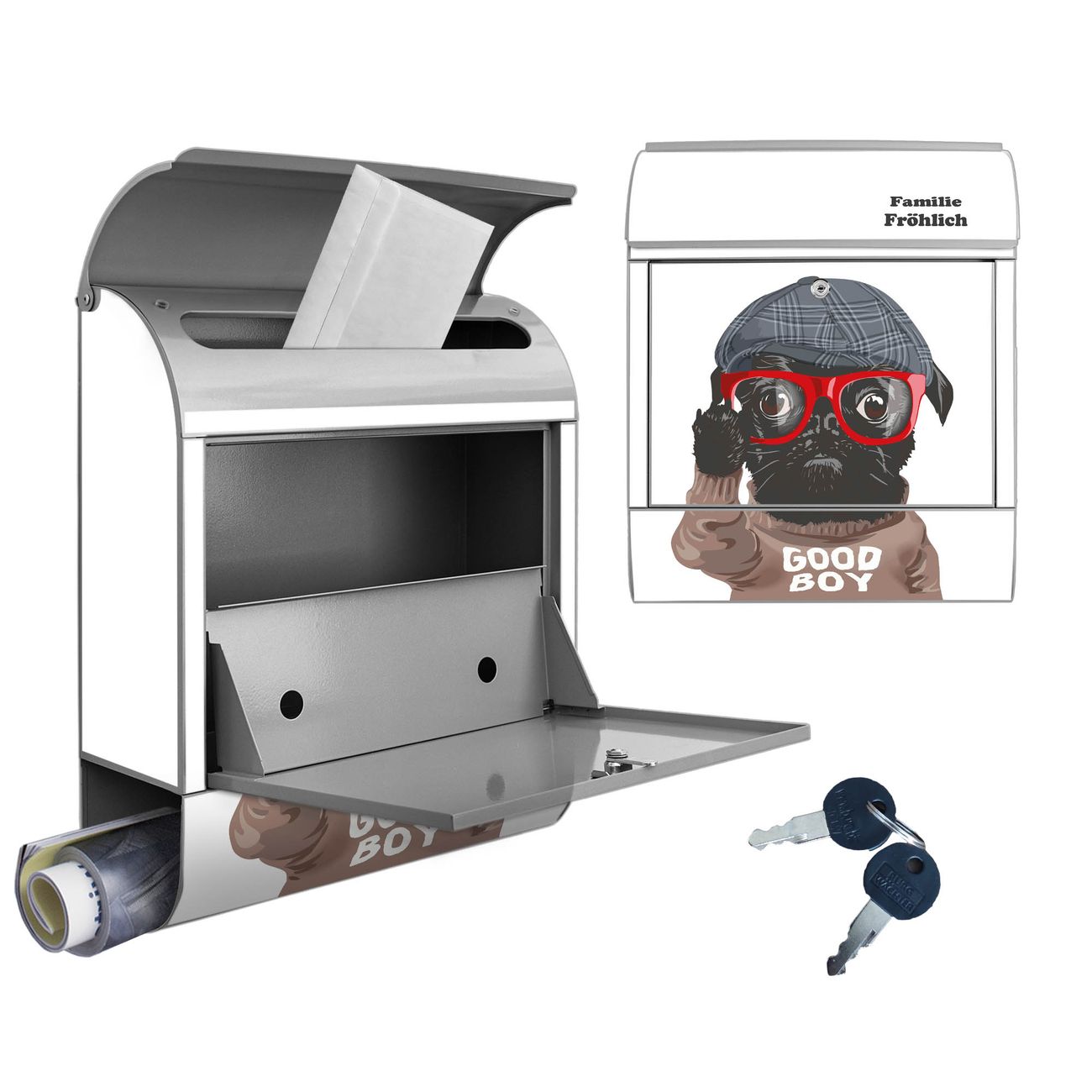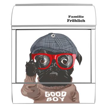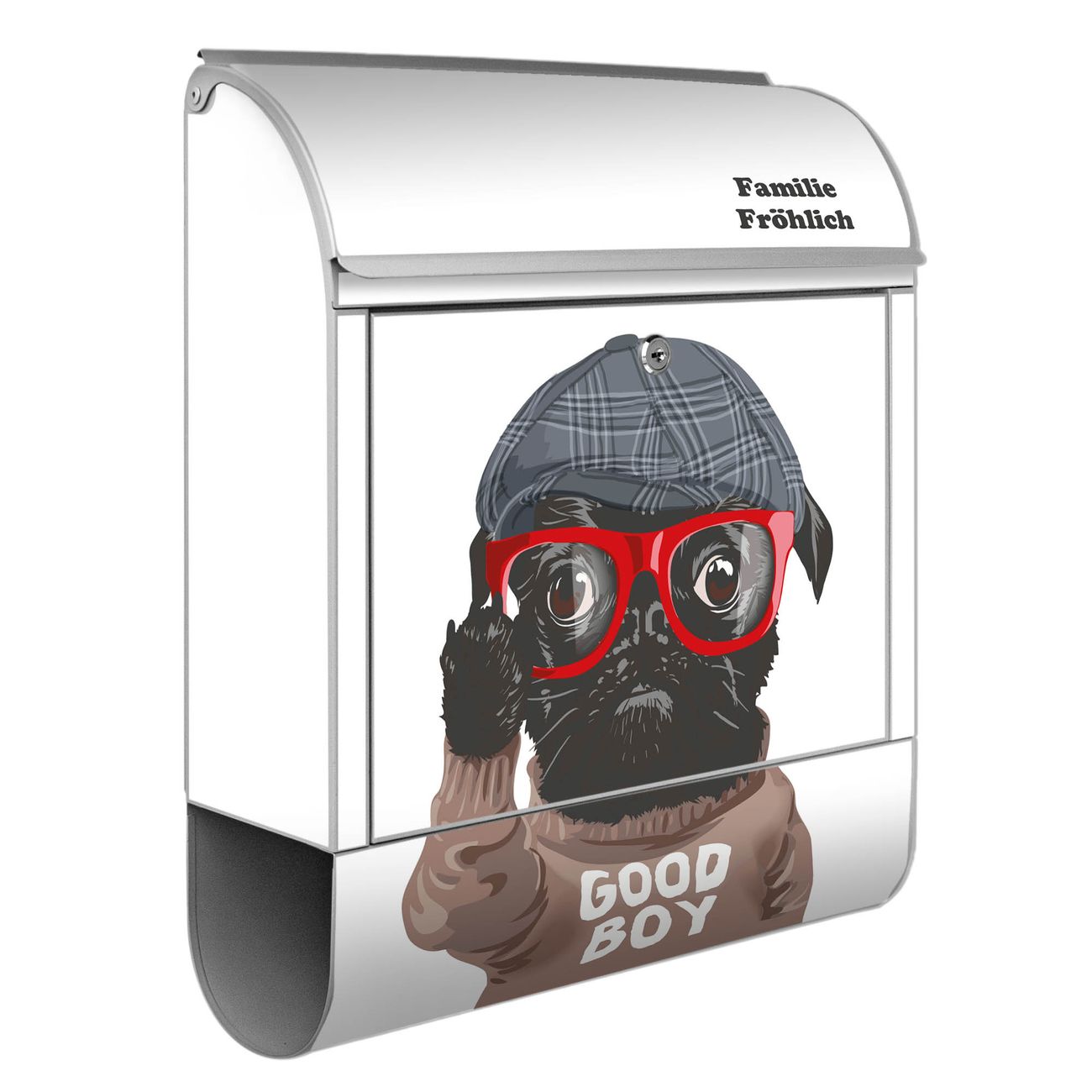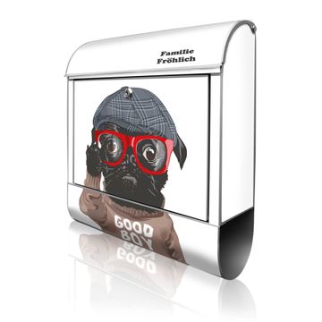 Großer Stahl Briefkasten Motiv Lustiger Mops mit Brille