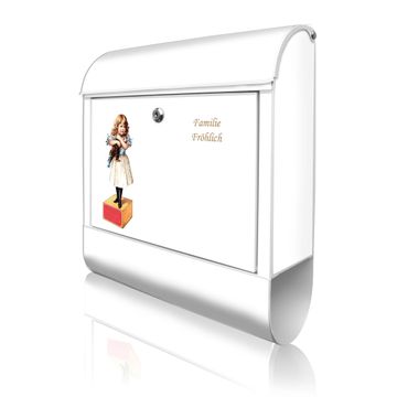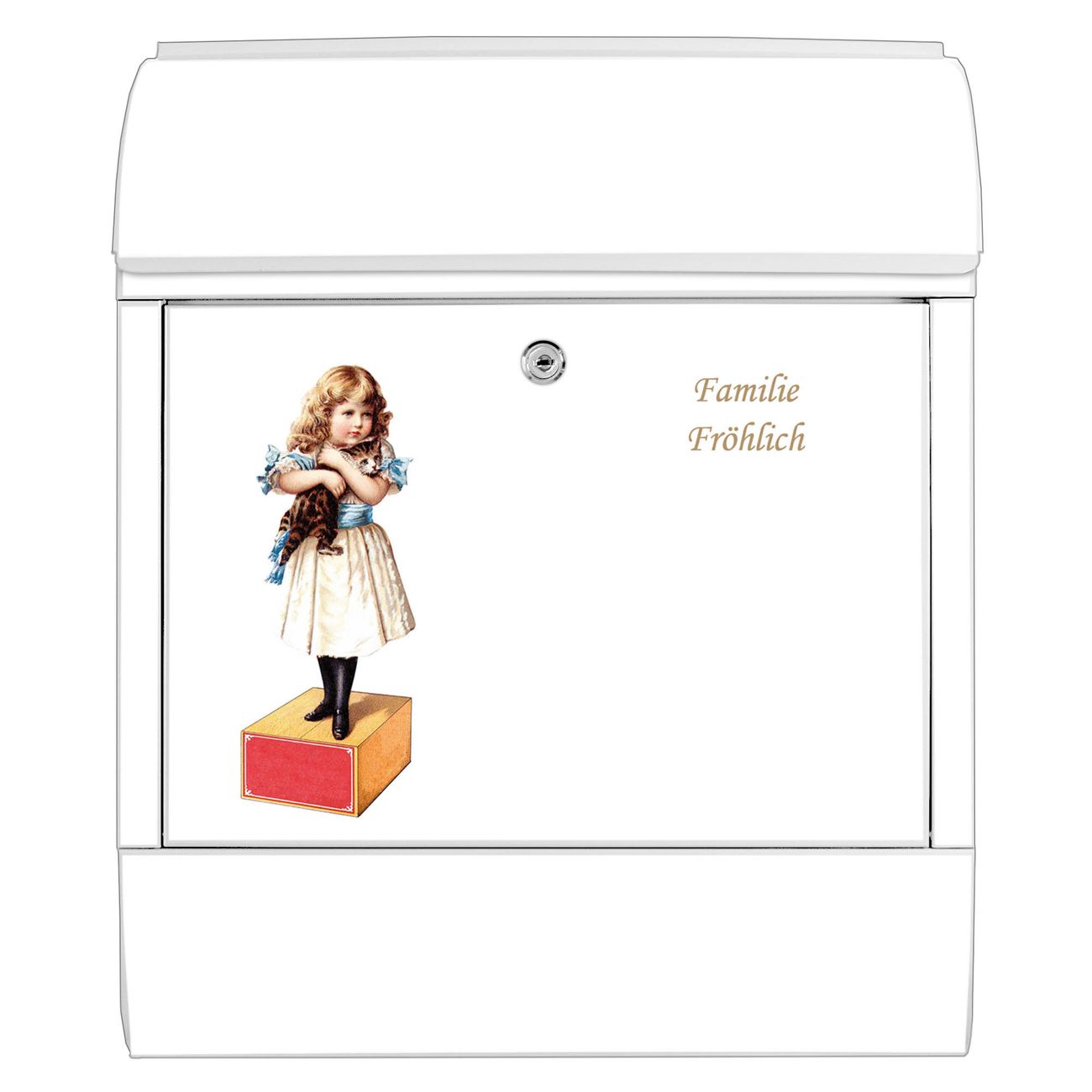 Großer Stahl Briefkasten Motiv Mädchen mit Katze Vintage