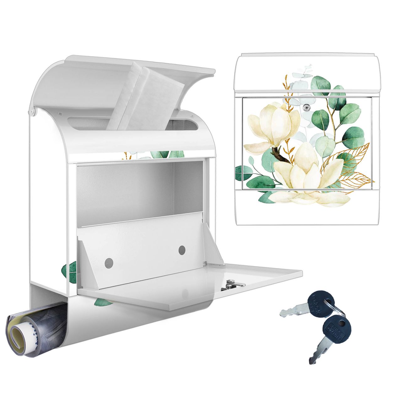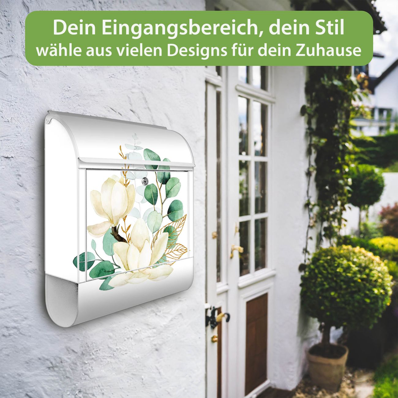 Großer Stahl Briefkasten Motiv Magnolienkomposition