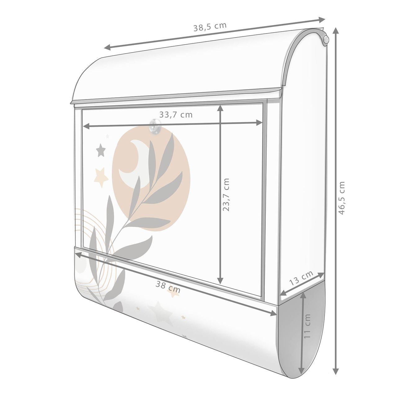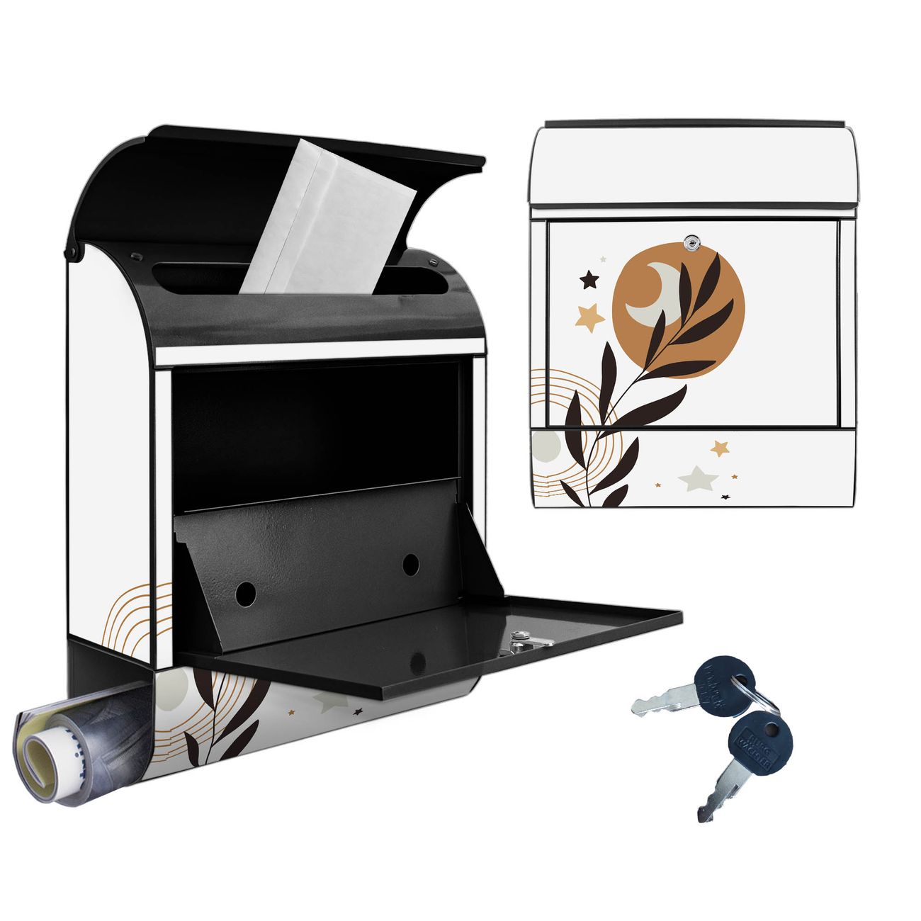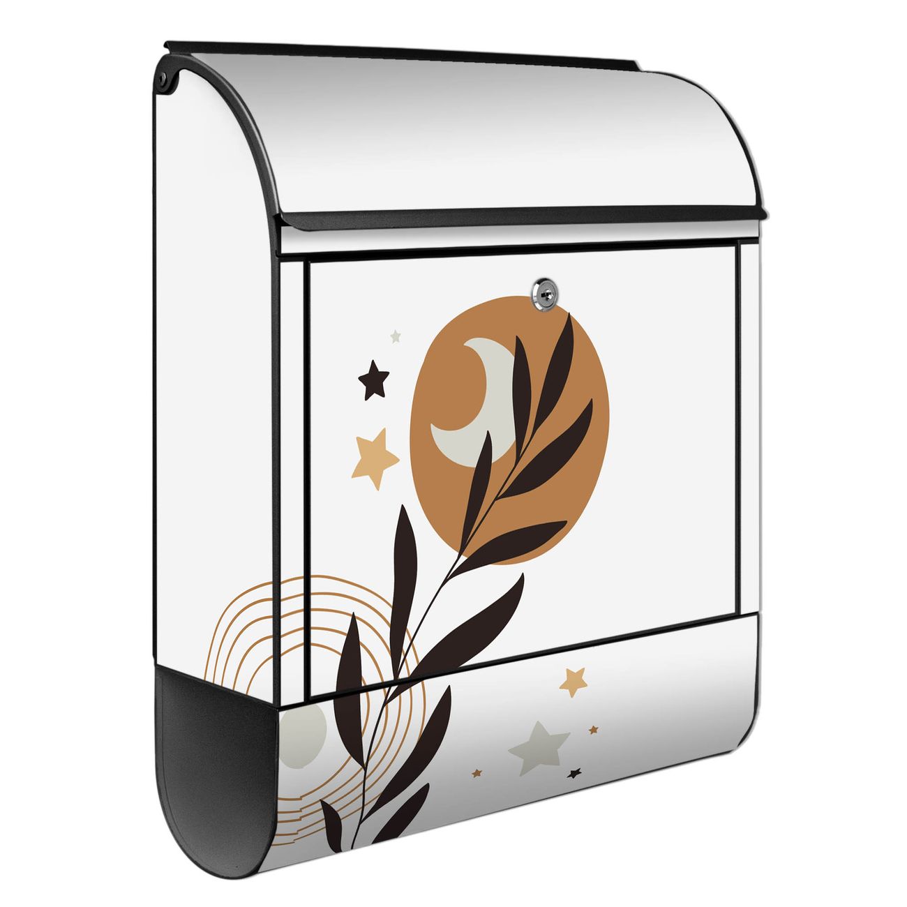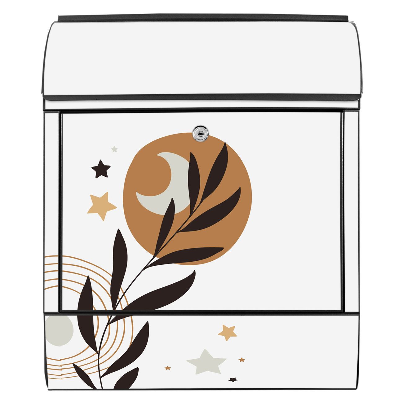 Großer Stahl Briefkasten Motiv Mond und Blätter Komposition