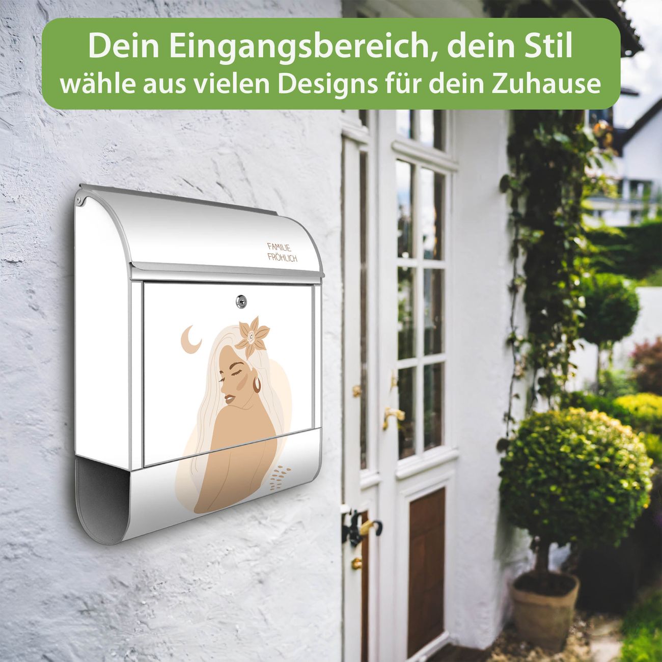 Großer Stahl Briefkasten Motiv Mondblumenfrau