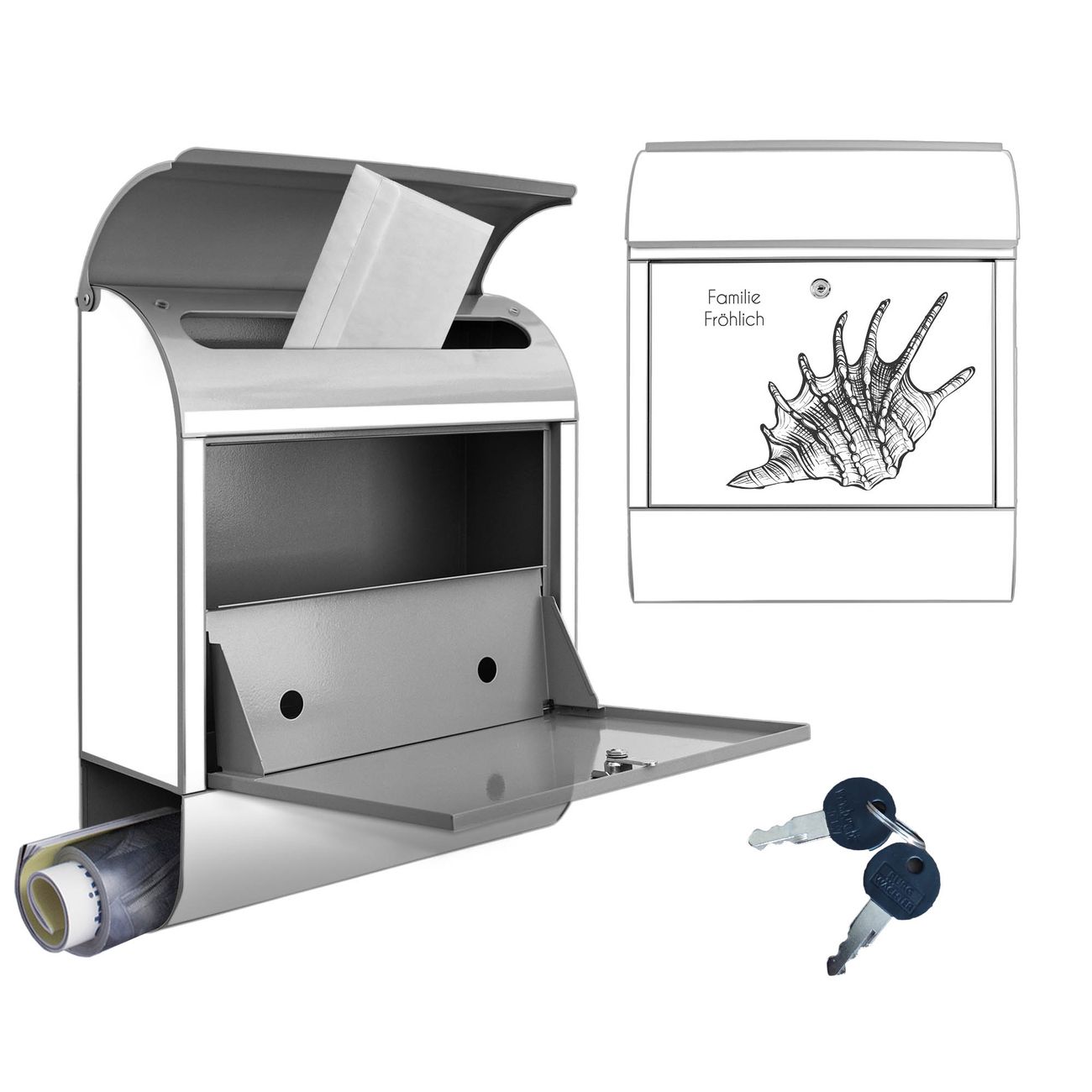 Großer Stahl Briefkasten Motiv Muschel 9