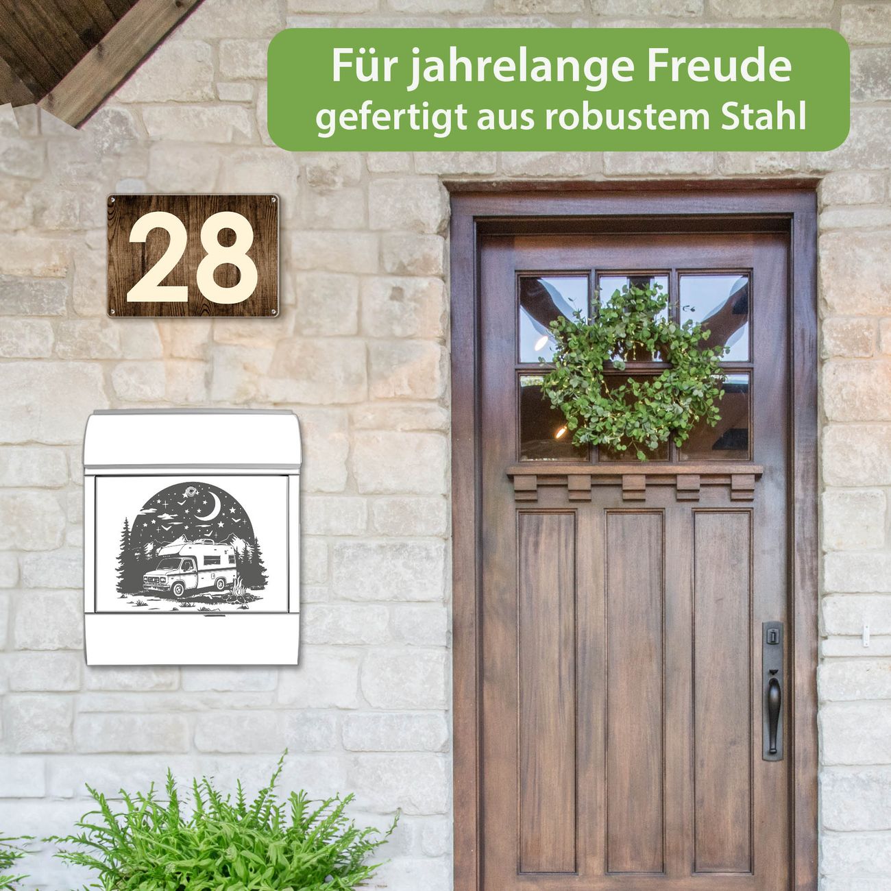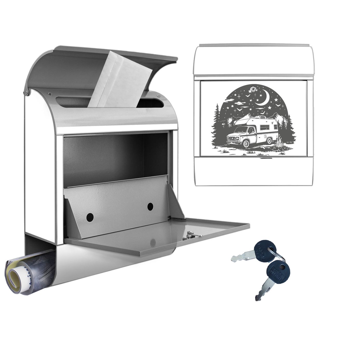 Großer Stahl Briefkasten Motiv Nächtliches Campingabenteuer