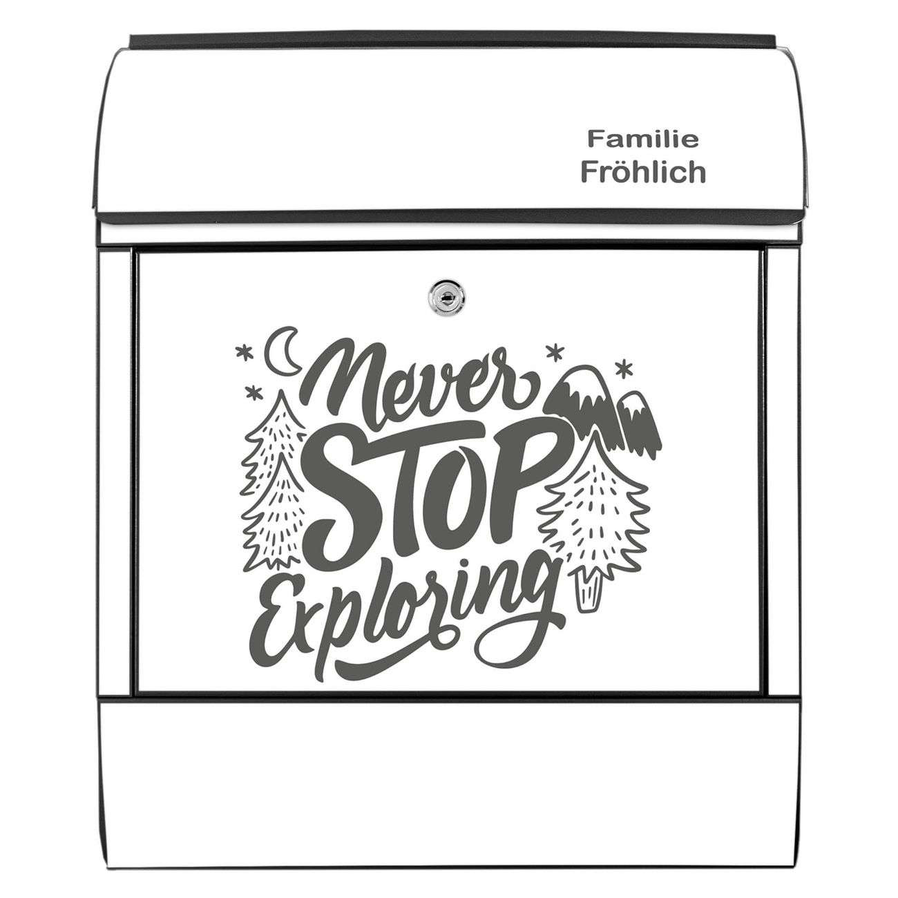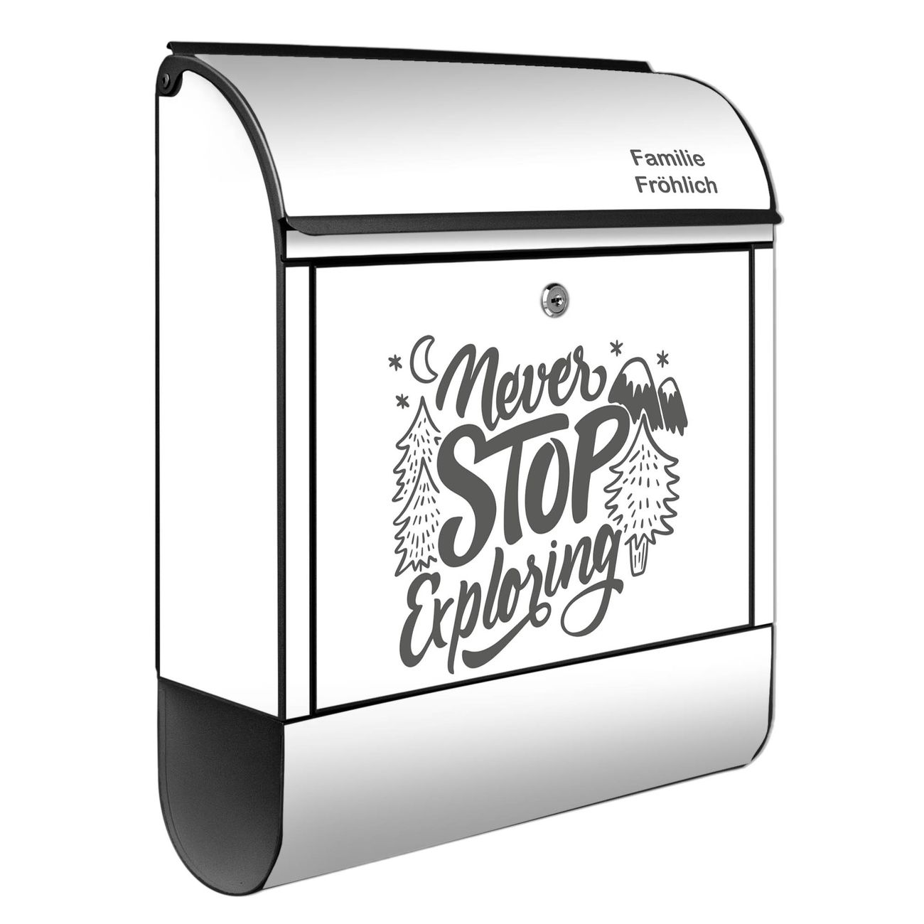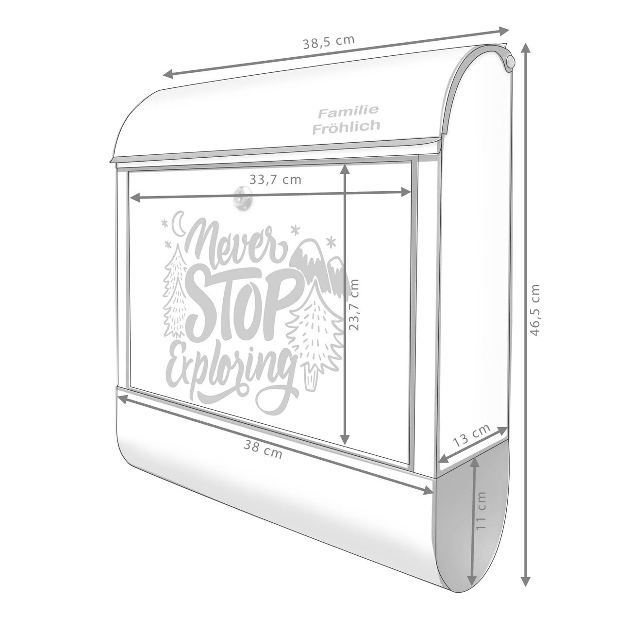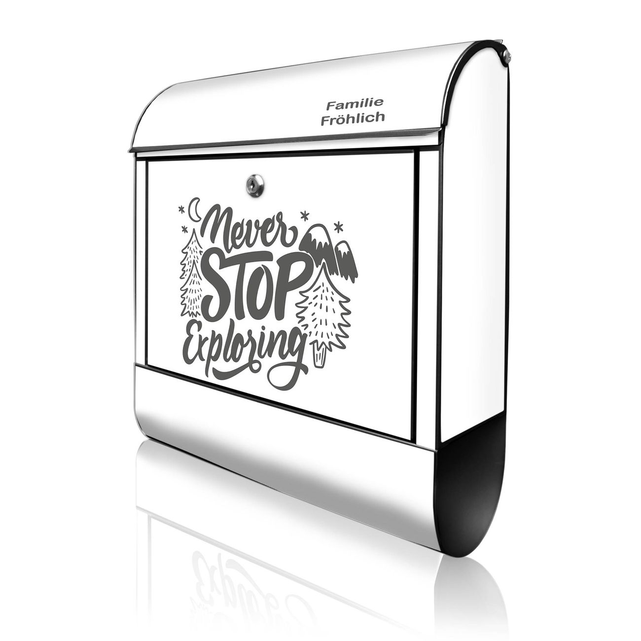 Großer Stahl Briefkasten Motiv Never stop Exploring