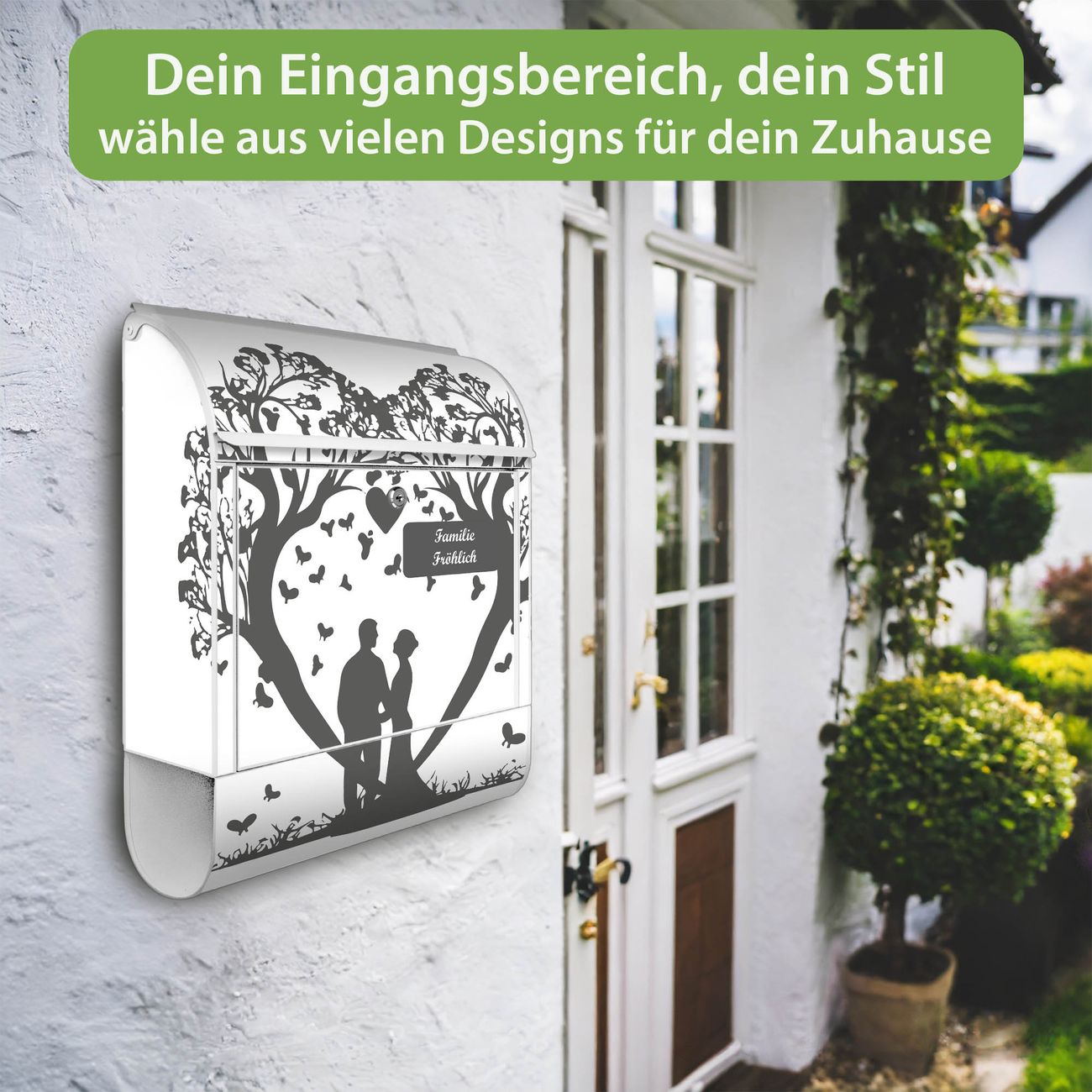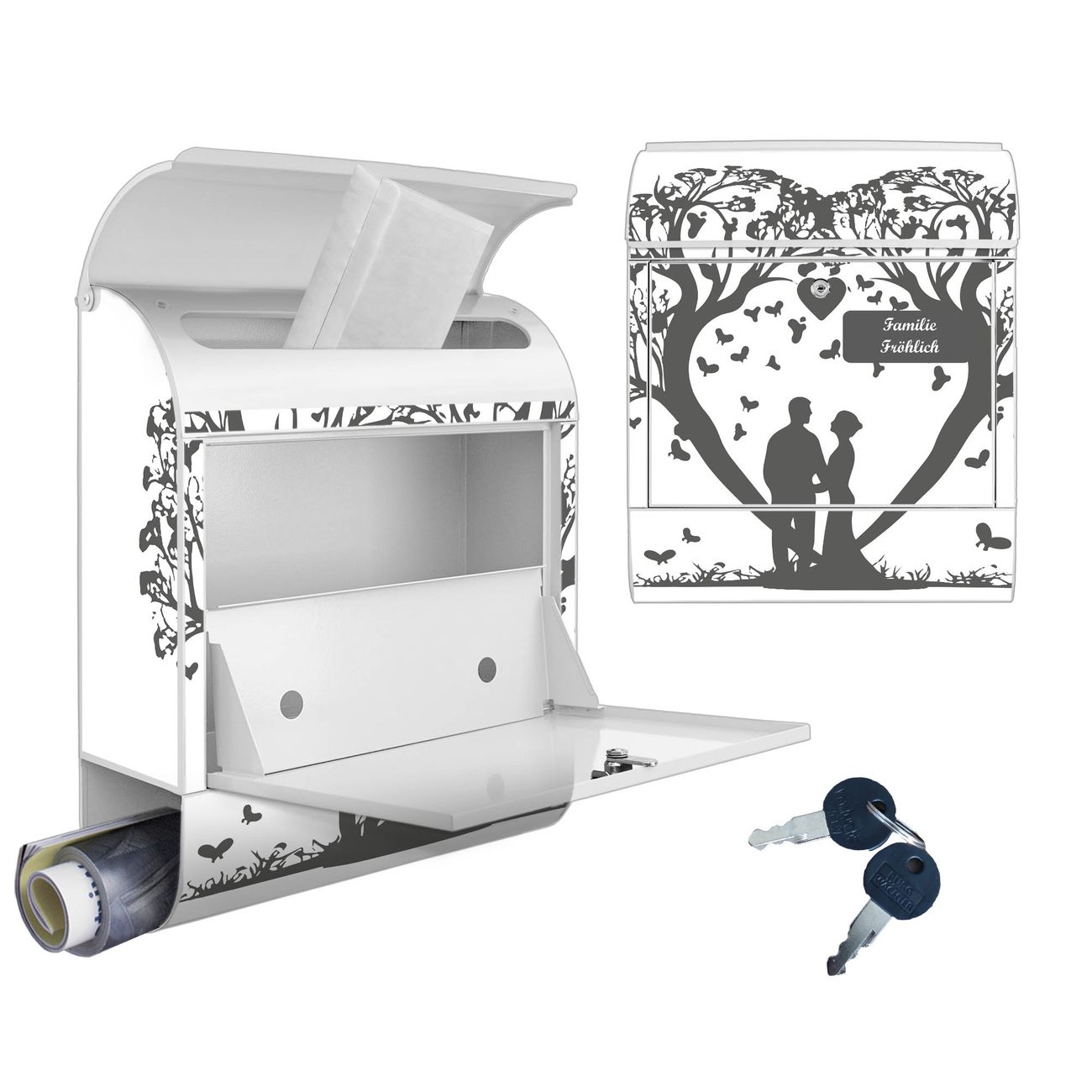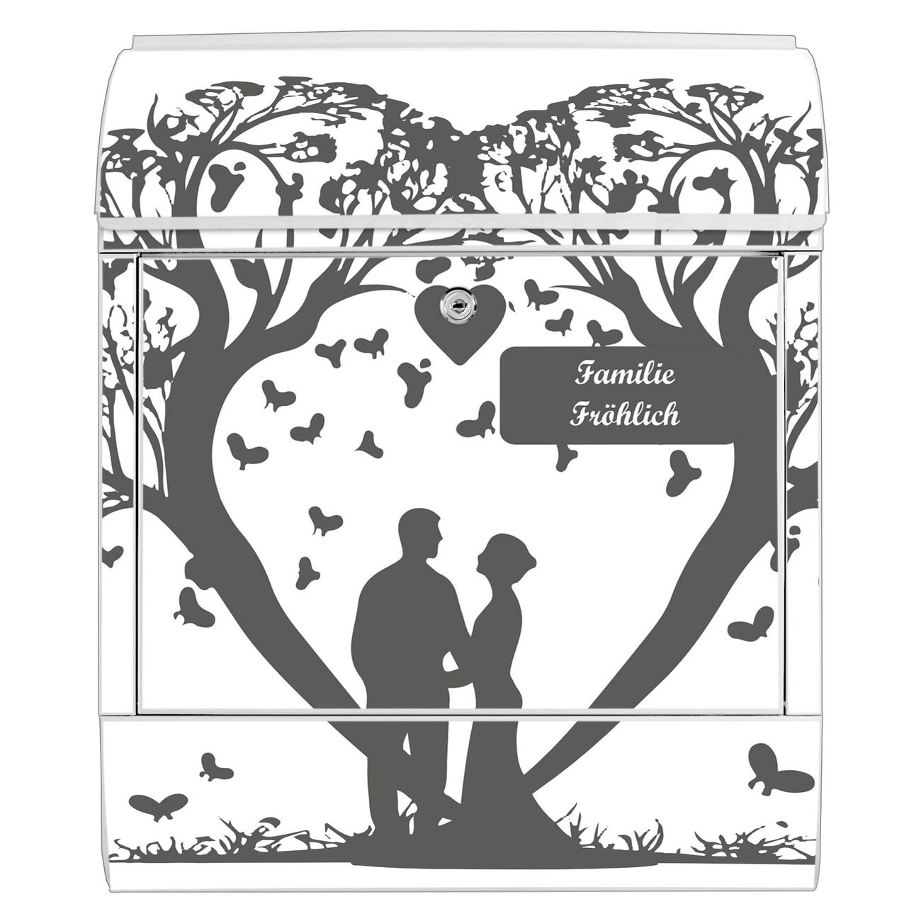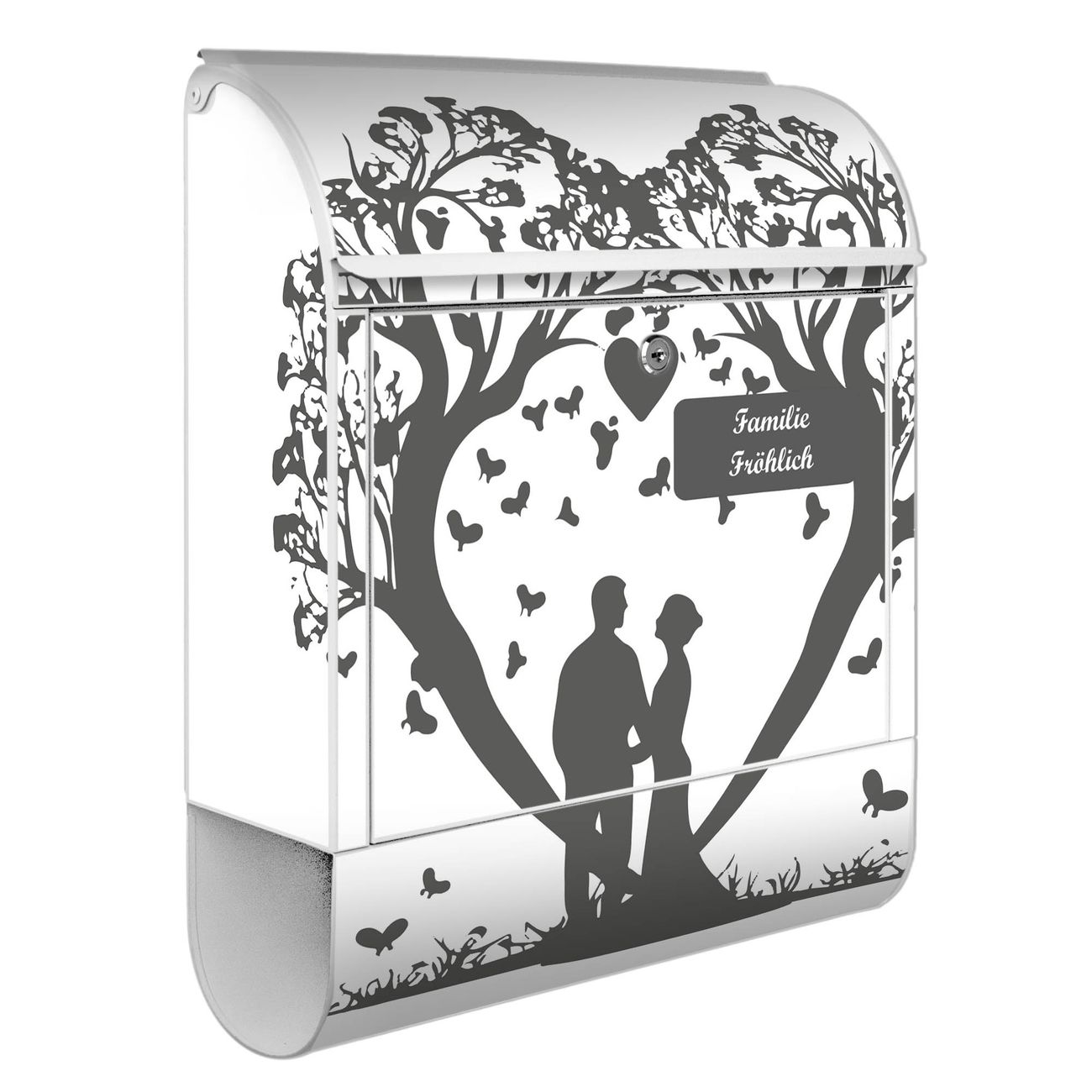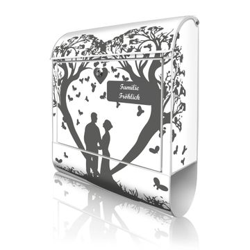 Großer Stahl Briefkasten Motiv Romantisches Baumherz Silhouette