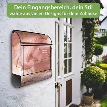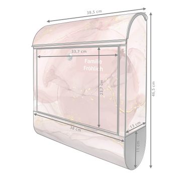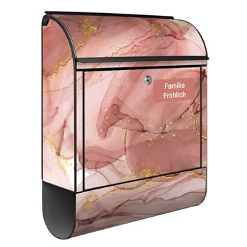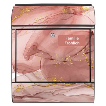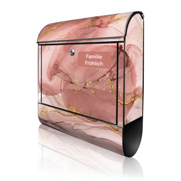 Großer Stahl Briefkasten Motiv Rosa Marmor mit Gold 1