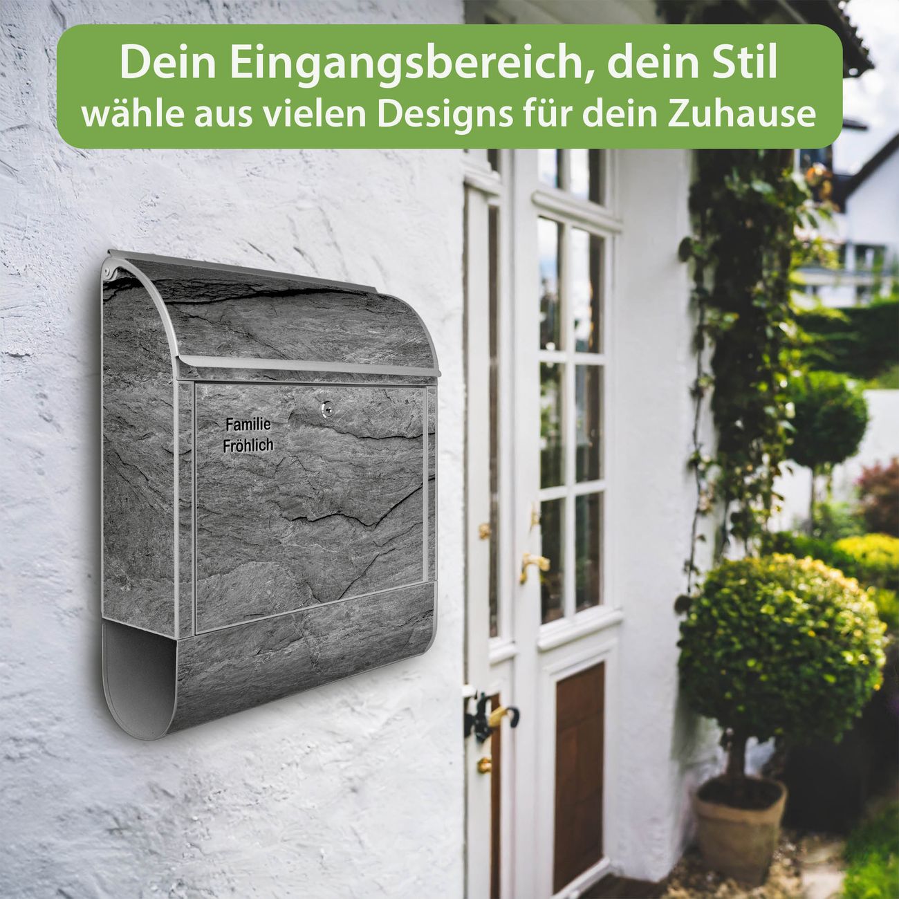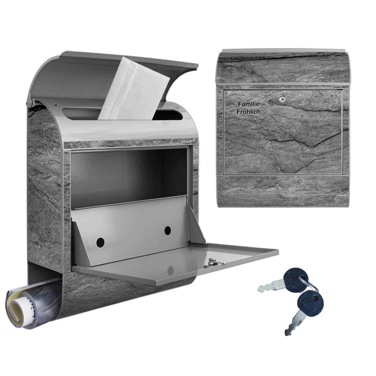 Großer Stahl Briefkasten Motiv Schiefer Platte 1