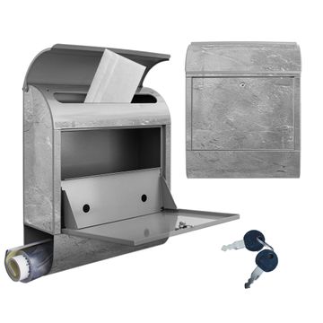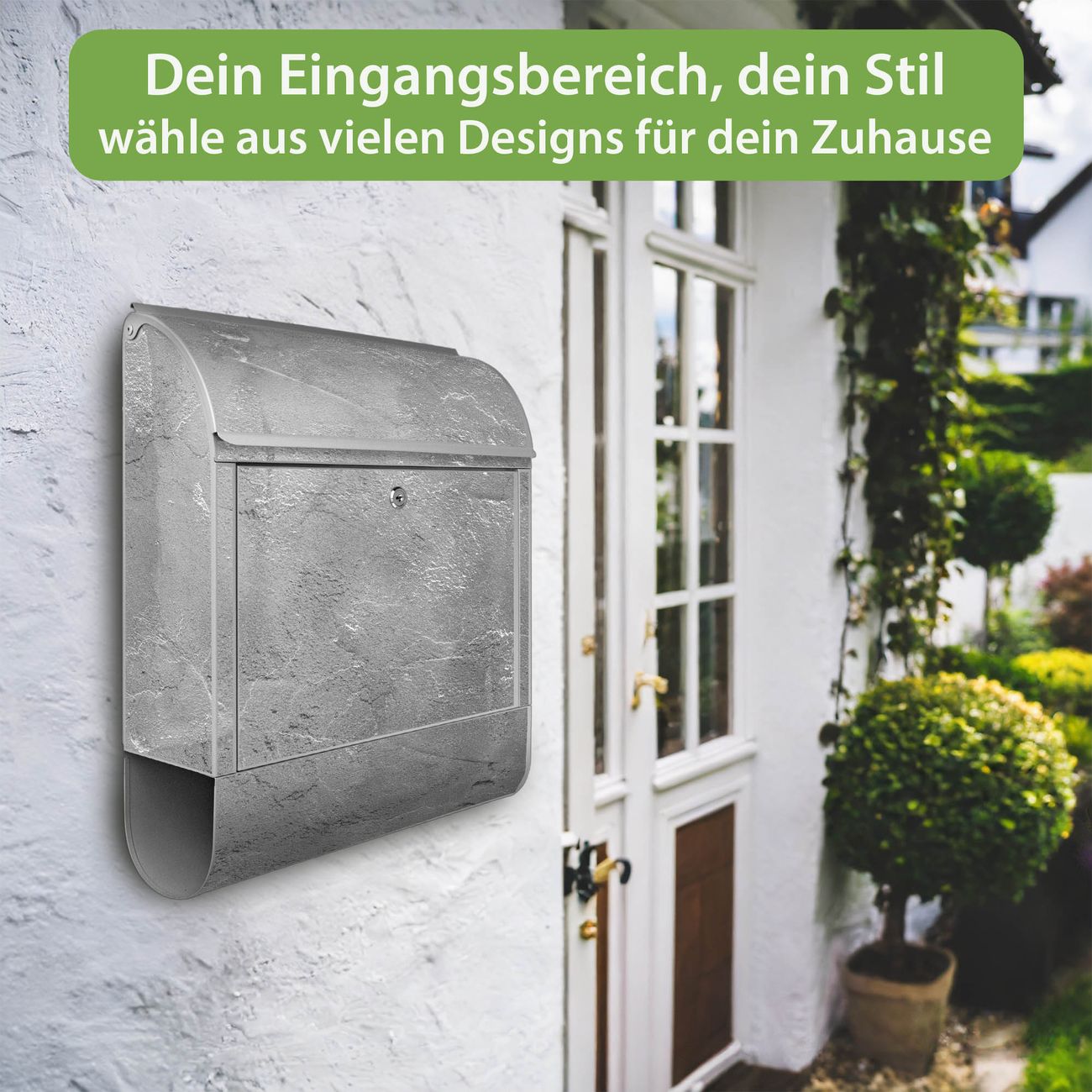 DESIGN: Der Postkasten mit Motiv Motiv Schiefer Platte 3 hat ein sehr ansprechendes und ausgefallenes Design, damit entlocken Sie Ihren Nachbarn und dem Postboten ein Lächeln. Heben Sie Sich von der tristen grauen Masse ab, ohne auf Funktionalität zu verzichten. DETAILS: Der Postkasten besteht aus pulverbeschichtetem Stahl. Er ist 38x46x12,5cm groß. Das Motiv besteht aus einer wetter- und UV-resistenten Folie, die mit einem Schutzlaminat überzogen ist, sodass der Briefkasten zusätzlich vor Kratzern geschützt ist. Der Briefkasten wird mit Montagematerial, zusätzlich zwei Schlüssel sowie einer Bohrschablone geliefert. NUTZEN: Sie können diesen Briefkasten sowohl als Wandbriefkasten montieren oder einen passenden Ständer kaufen und als Standbriefkasten einbetonieren. Die Größe bietet genügend Platz für Sendungen aller Art, der Einwurf fasst auch größere A4 Sendungen. BANJADO: Ihr Briefkasten wird in Sachsen in einer kleinen Manufaktur von Hand veredelt. Die Motivfolie ist lösungsmittelfrei und schutzlaminiert für einen langen Halt. Wir legen großen Wert auf die Verbindung von Funktionalität und Design. Sie erhalten Handarbeit aus Sachsen.