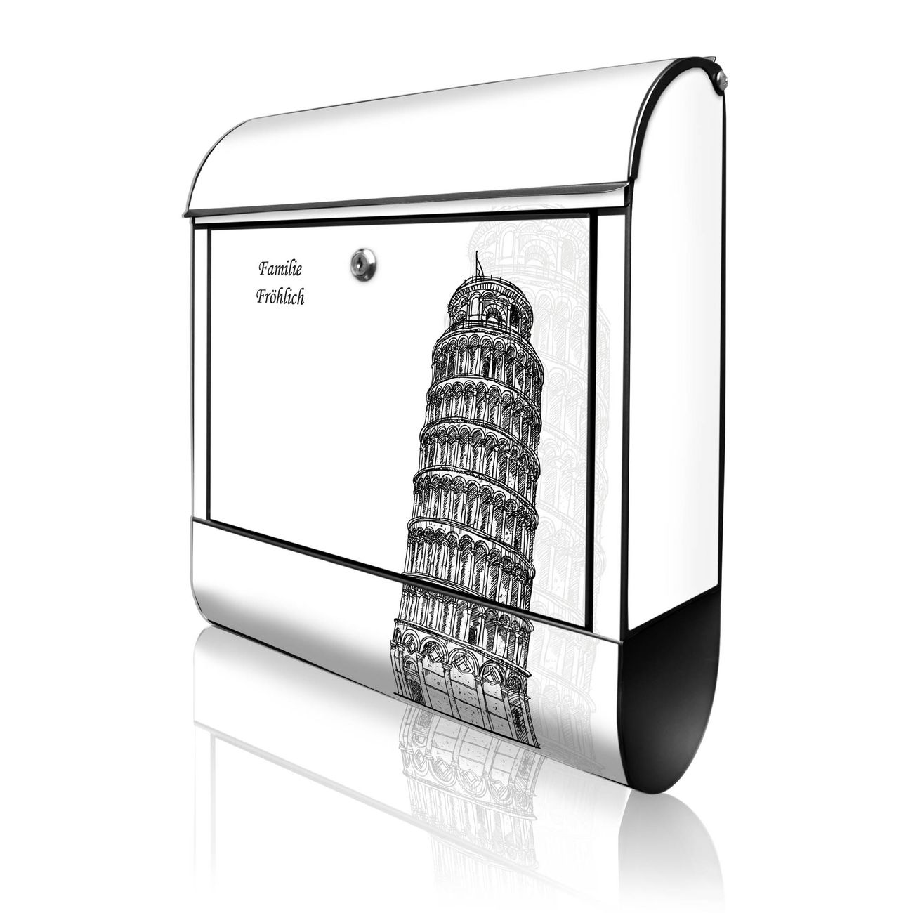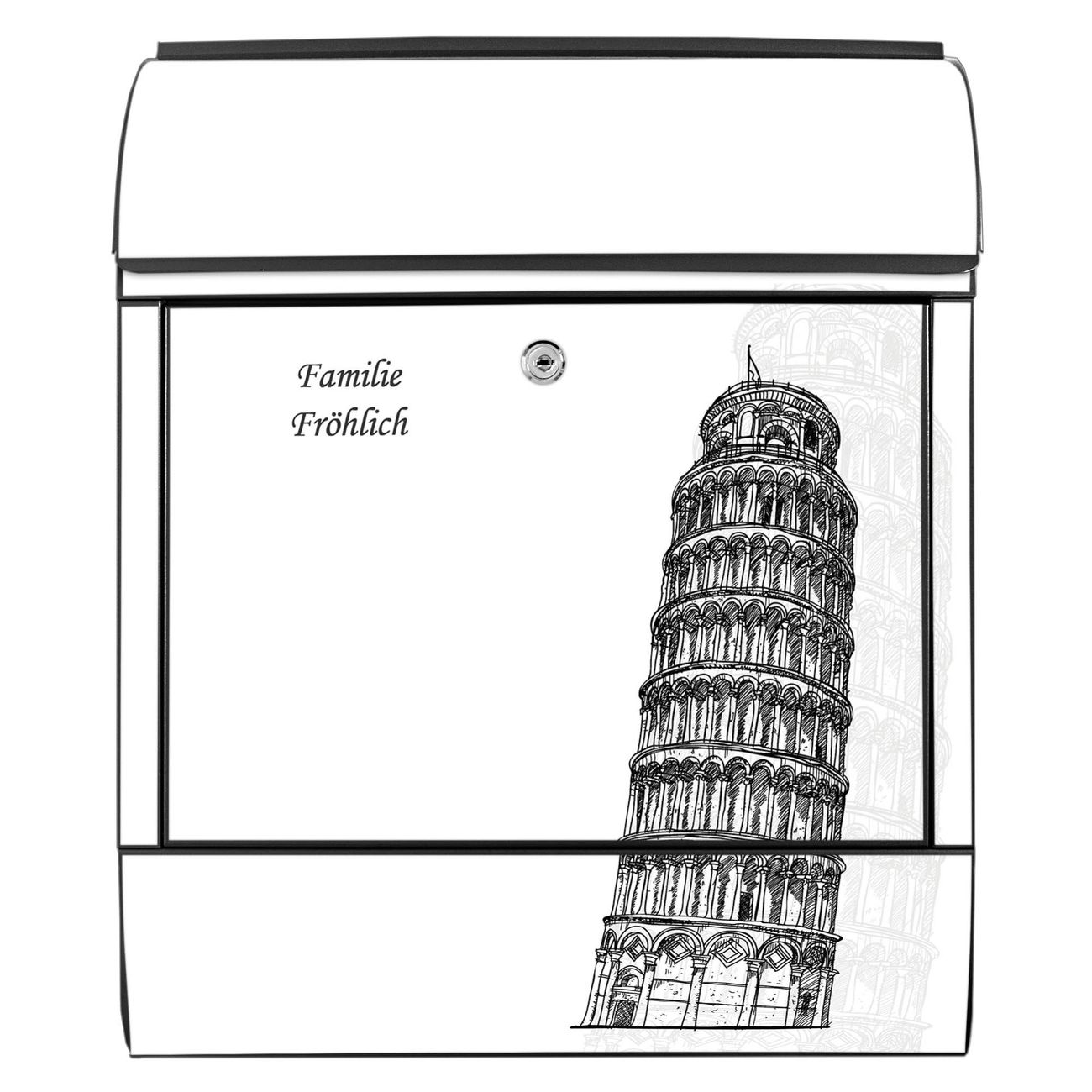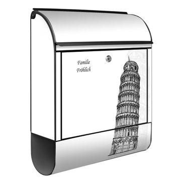 Großer Stahl Briefkasten Motiv Schiefer Turm von Pisa Skizze