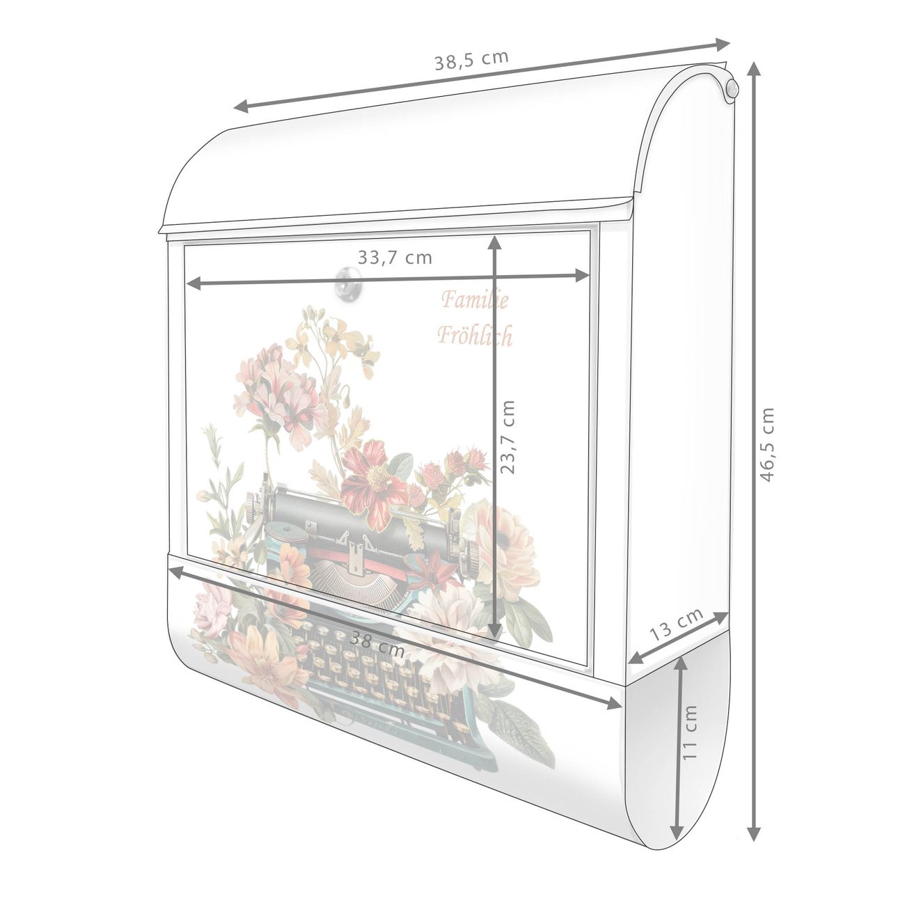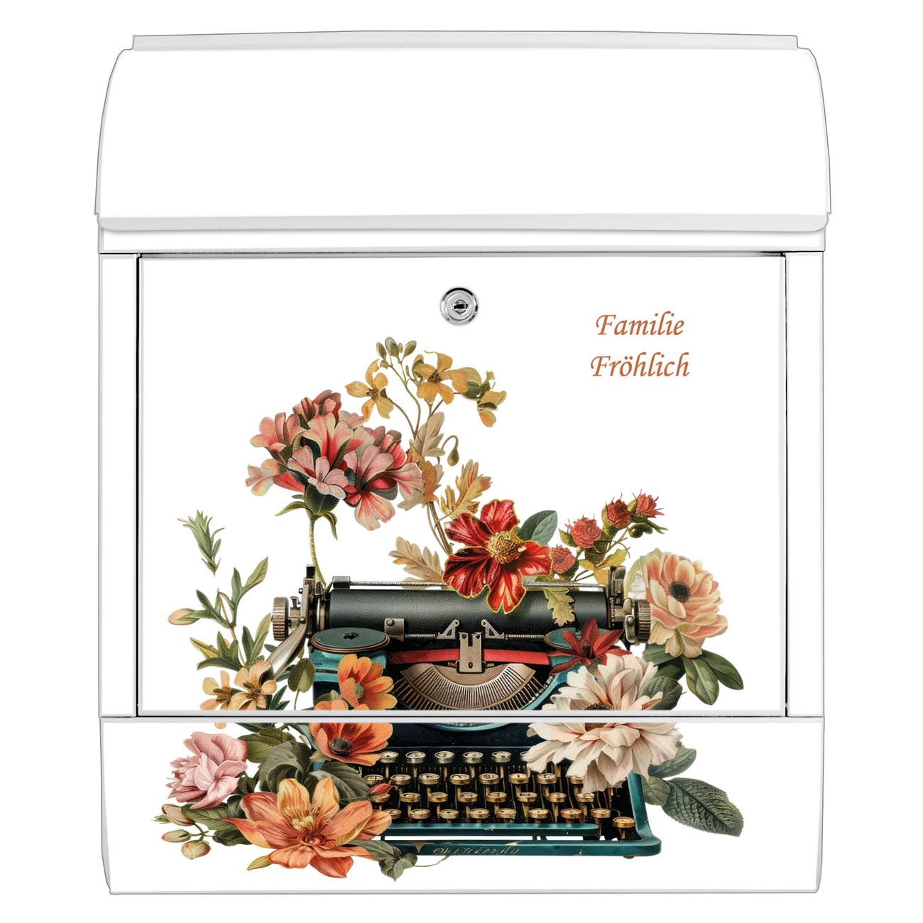 Großer Stahl Briefkasten Motiv Schreibmaschine Vintage