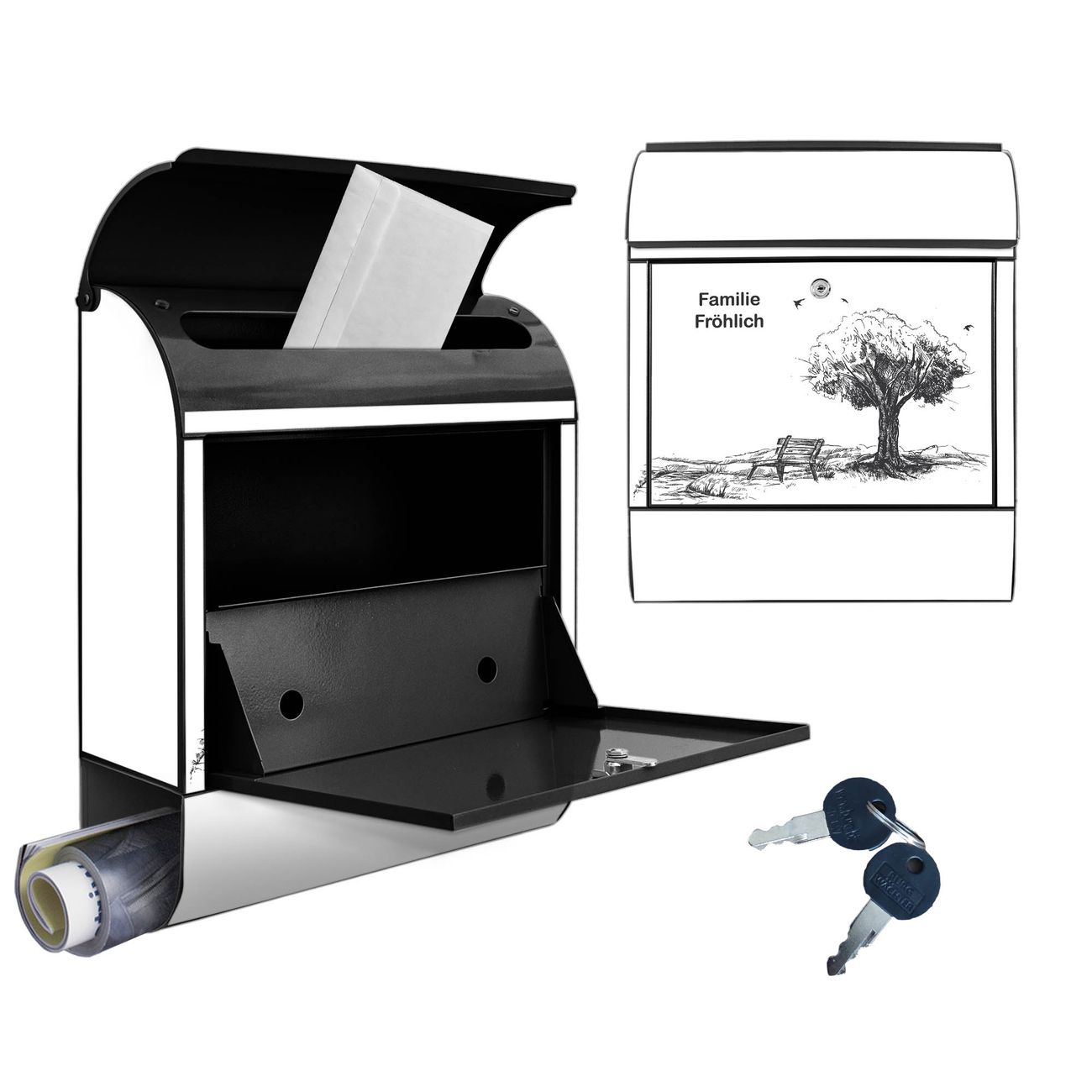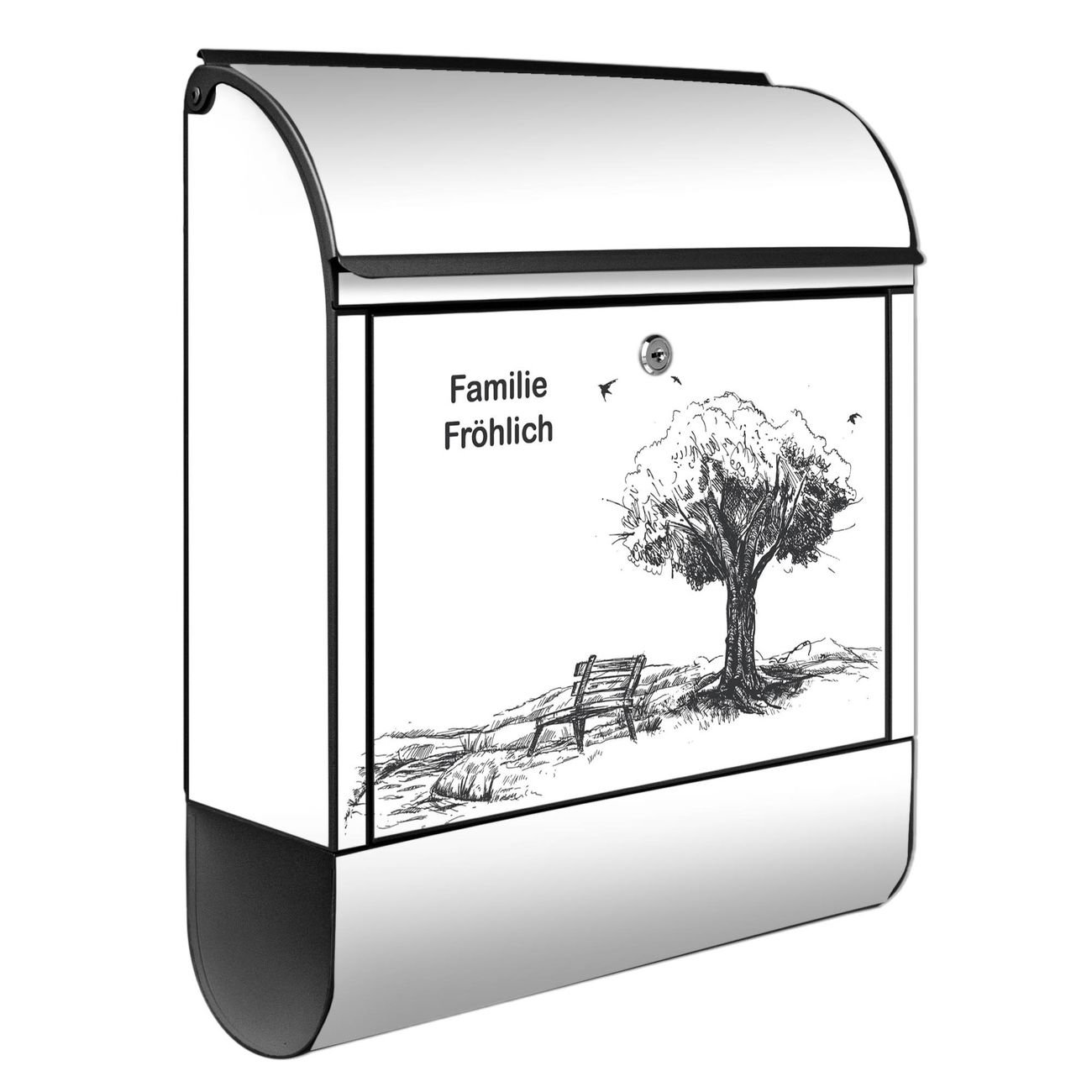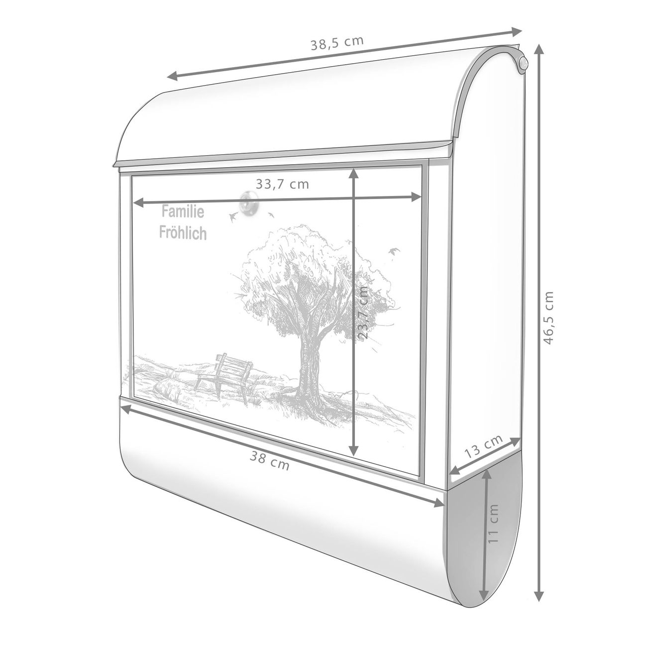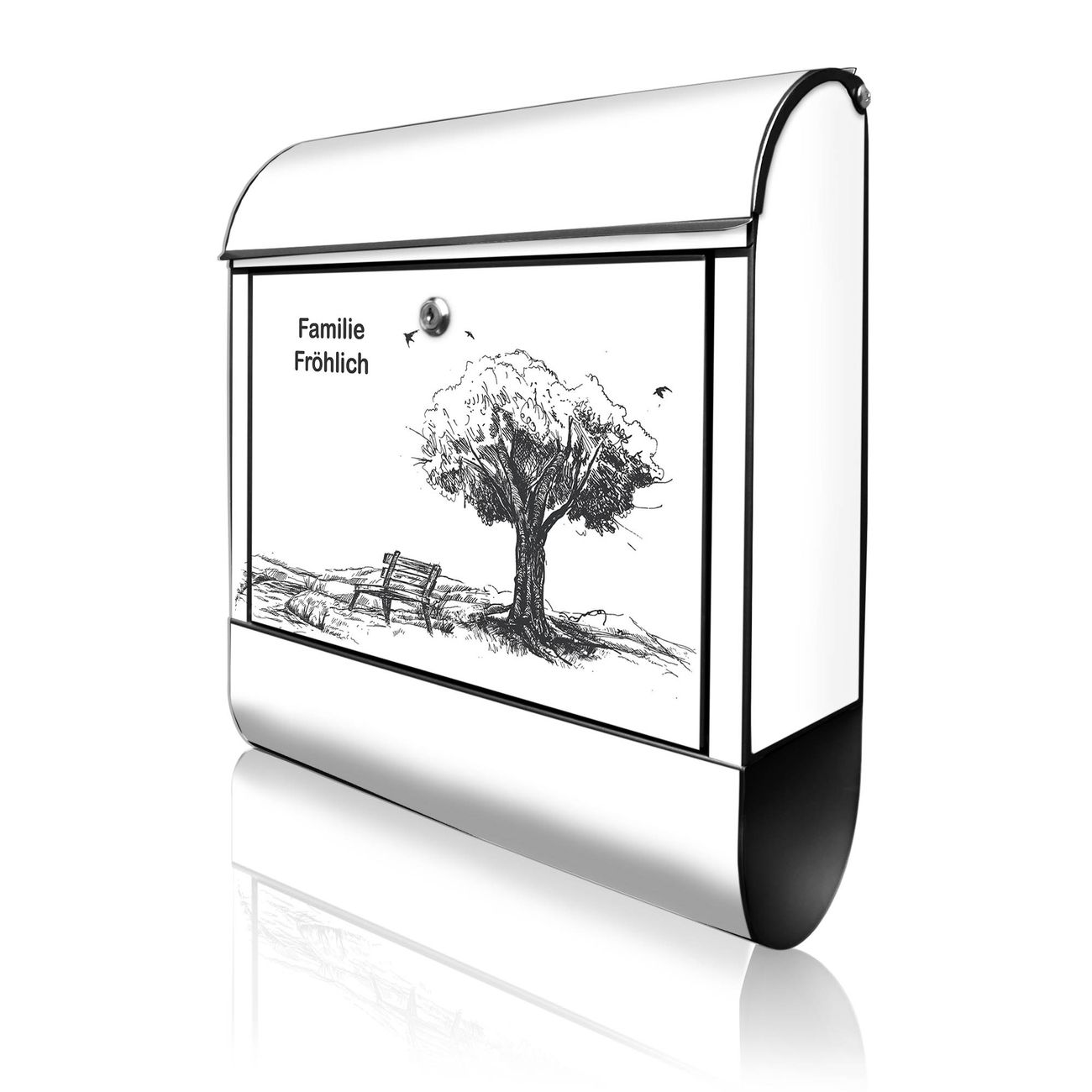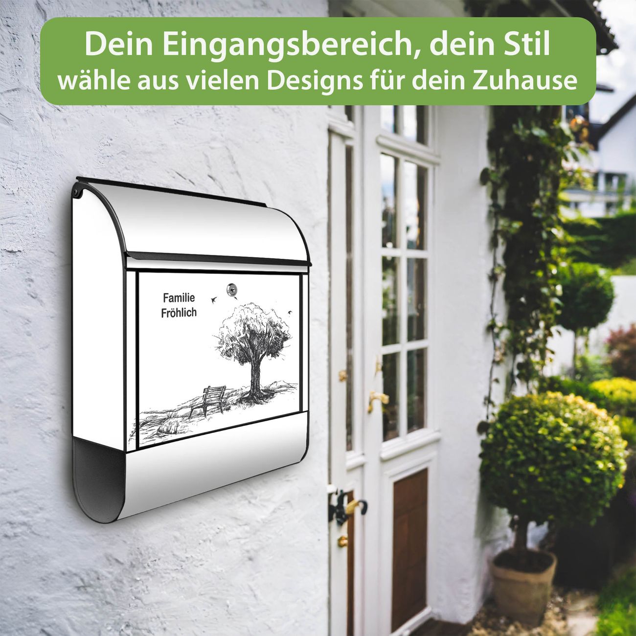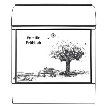 DESIGN: Der Postkasten mit Motiv Motiv Sommerliche Parkszene hat ein sehr ansprechendes und ausgefallenes Design, damit entlocken Sie Ihren Nachbarn und dem Postboten ein Lächeln. Heben Sie Sich von der tristen grauen Masse ab, ohne auf Funktionalität zu verzichten. DETAILS: Der Postkasten besteht aus pulverbeschichtetem Stahl. Er ist 38x46x12,5cm groß. Das Motiv besteht aus einer wetter- und UV-resistenten Folie, die mit einem Schutzlaminat überzogen ist, sodass der Briefkasten zusätzlich vor Kratzern geschützt ist. Der Briefkasten wird mit Montagematerial, zusätzlich zwei Schlüssel sowie einer Bohrschablone geliefert. NUTZEN: Sie können diesen Briefkasten sowohl als Wandbriefkasten montieren oder einen passenden Ständer kaufen und als Standbriefkasten einbetonieren. Die Größe bietet genügend Platz für Sendungen aller Art, der Einwurf fasst auch größere A4 Sendungen. BANJADO: Ihr Briefkasten wird in Sachsen in einer kleinen Manufaktur von Hand veredelt. Die Motivfolie ist lösungsmittelfrei und schutzlaminiert für einen langen Halt. Wir legen großen Wert auf die Verbindung von Funktionalität und Design. Sie erhalten Handarbeit aus Sachsen.