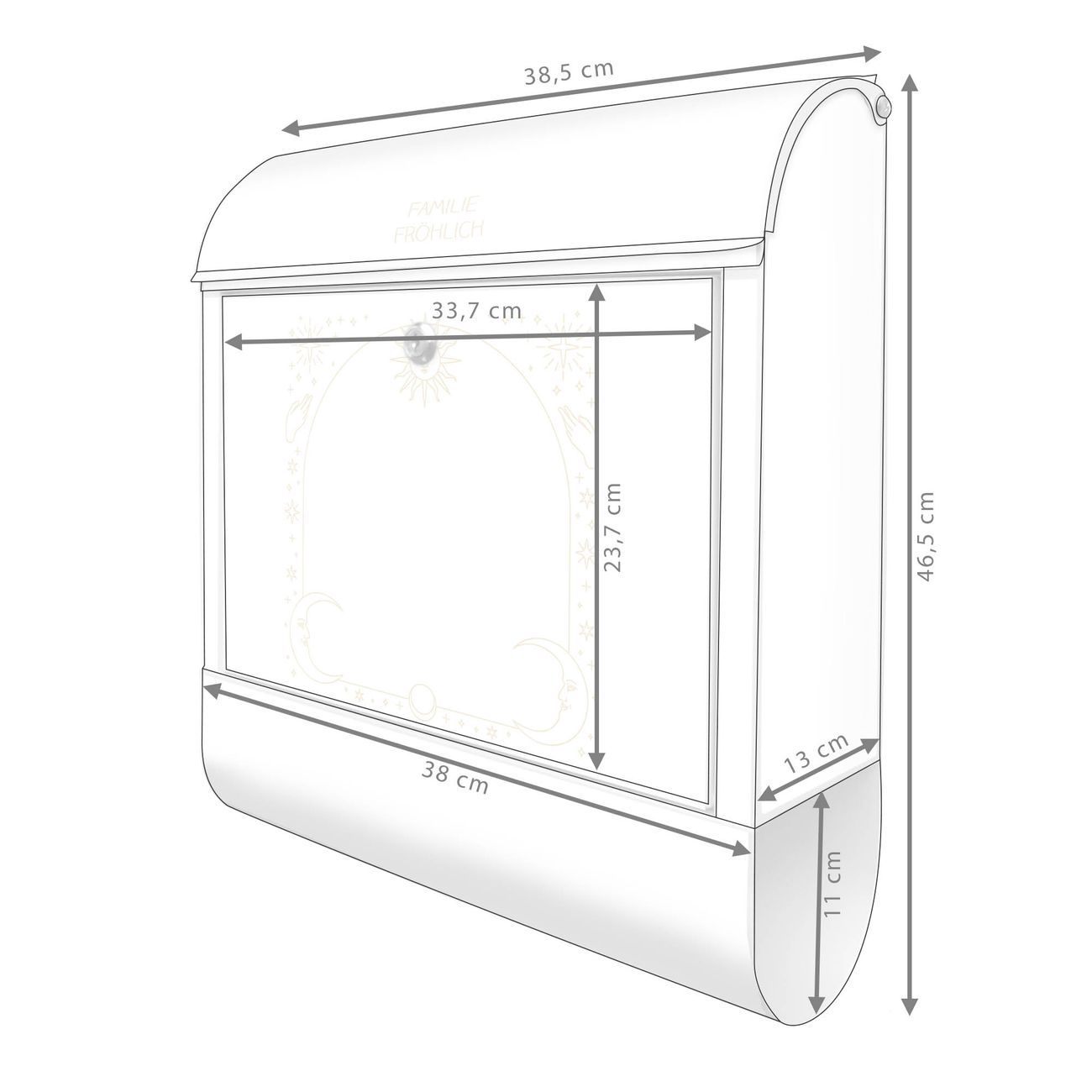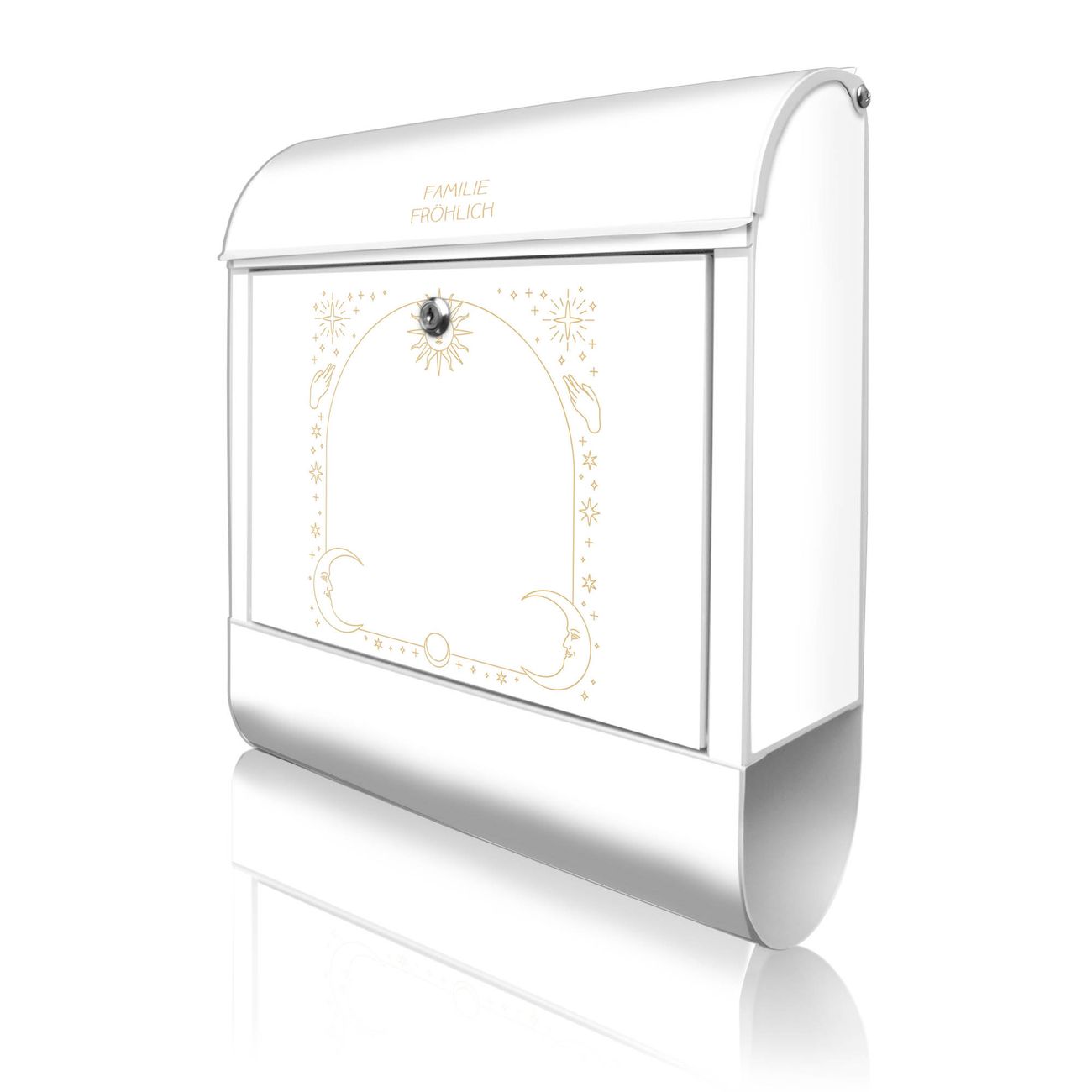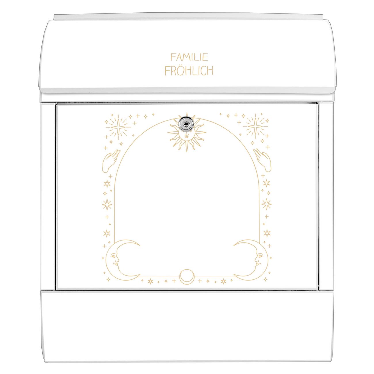 Großer Stahl Briefkasten Motiv Sonne und Mond Symbole