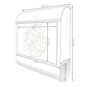 DESIGN: Der Postkasten mit Motiv Motiv Sternzeichen Fische hat ein sehr ansprechendes und ausgefallenes Design, damit entlocken Sie Ihren Nachbarn und dem Postboten ein Lächeln. Heben Sie Sich von der tristen grauen Masse ab, ohne auf Funktionalität zu verzichten. DETAILS: Der Postkasten besteht aus pulverbeschichtetem Stahl. Er ist 38x46x12,5cm groß. Das Motiv besteht aus einer wetter- und UV-resistenten Folie, die mit einem Schutzlaminat überzogen ist, sodass der Briefkasten zusätzlich vor Kratzern geschützt ist. Der Briefkasten wird mit Montagematerial, zusätzlich zwei Schlüssel sowie einer Bohrschablone geliefert. NUTZEN: Sie können diesen Briefkasten sowohl als Wandbriefkasten montieren oder einen passenden Ständer kaufen und als Standbriefkasten einbetonieren. Die Größe bietet genügend Platz für Sendungen aller Art, der Einwurf fasst auch größere A4 Sendungen. BANJADO: Ihr Briefkasten wird in Sachsen in einer kleinen Manufaktur von Hand veredelt. Die Motivfolie ist lösungsmittelfrei und schutzlaminiert für einen langen Halt. Wir legen großen Wert auf die Verbindung von Funktionalität und Design. Sie erhalten Handarbeit aus Sachsen.