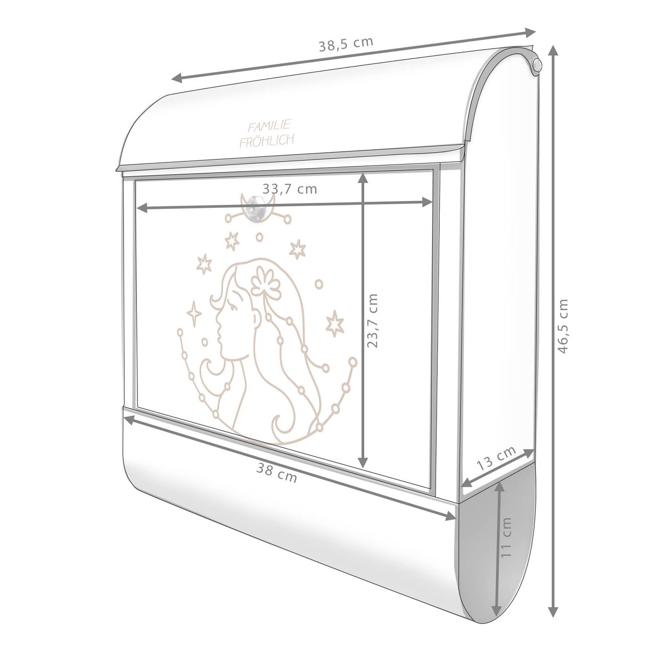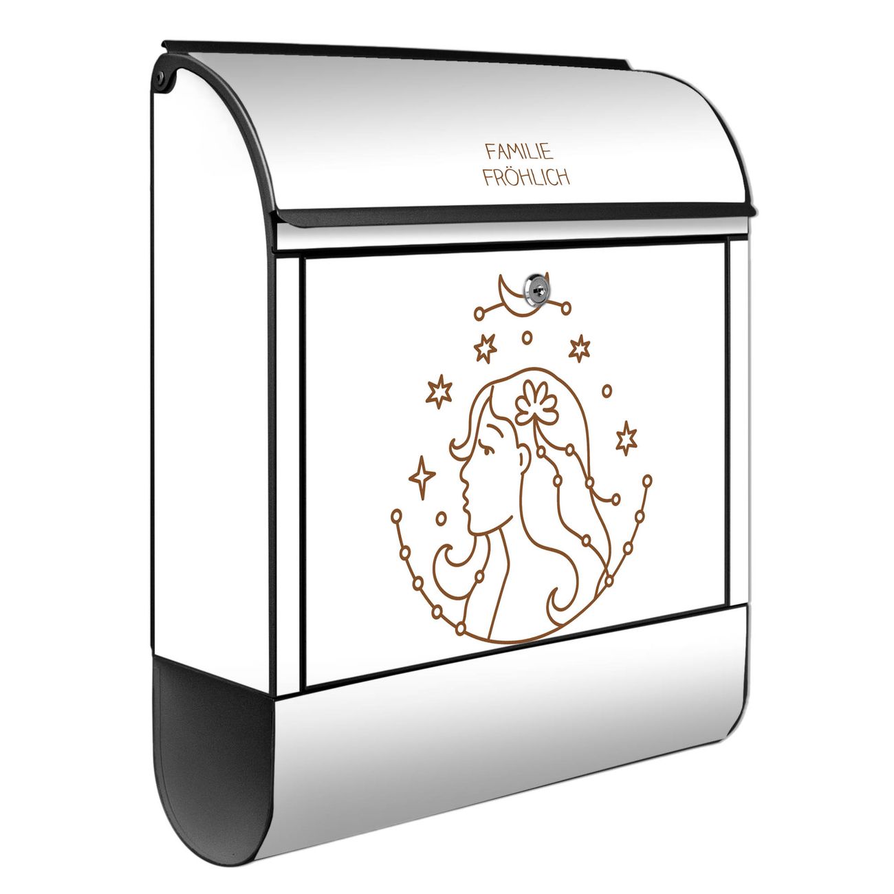 Großer Stahl Briefkasten Motiv Sternzeichen Jungfrau