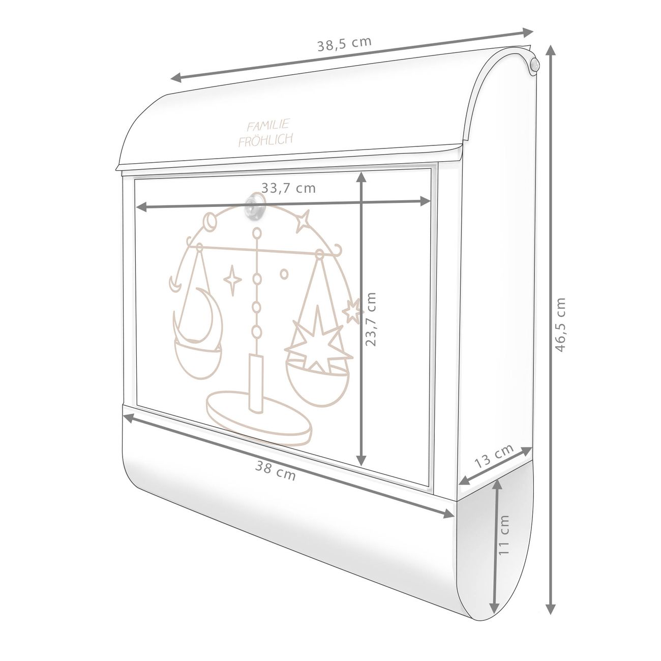 Großer Stahl Briefkasten Motiv Sternzeichen Waage