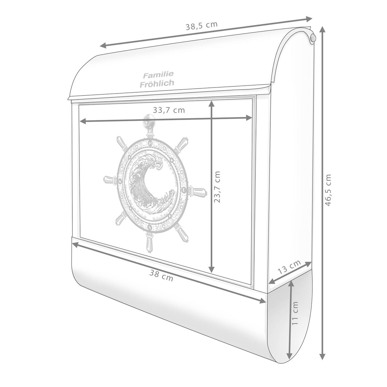 Großer Stahl Briefkasten Motiv Steuerrad 2
