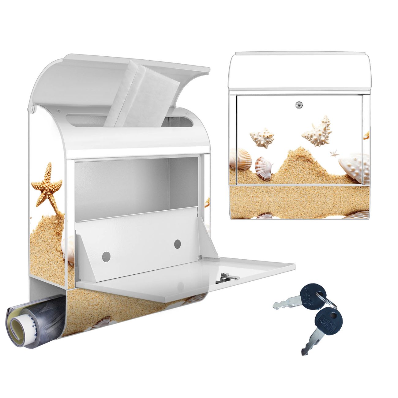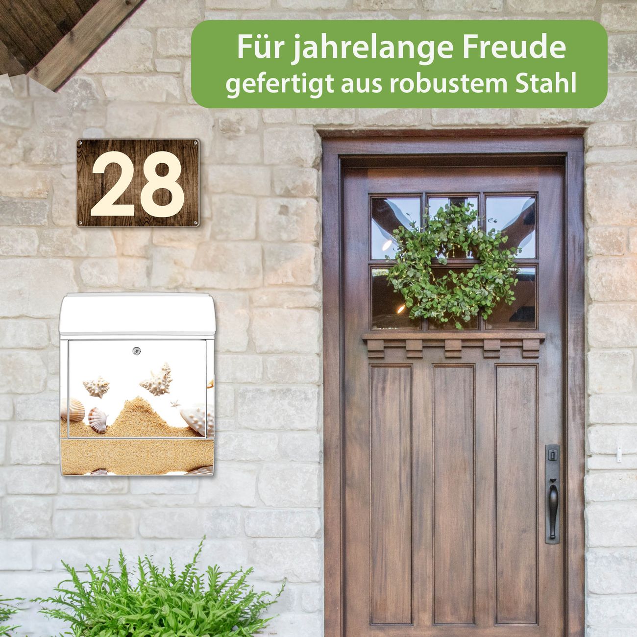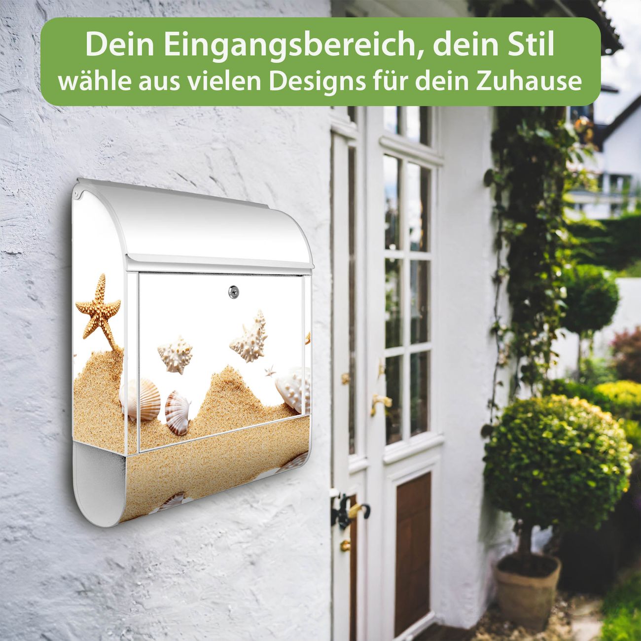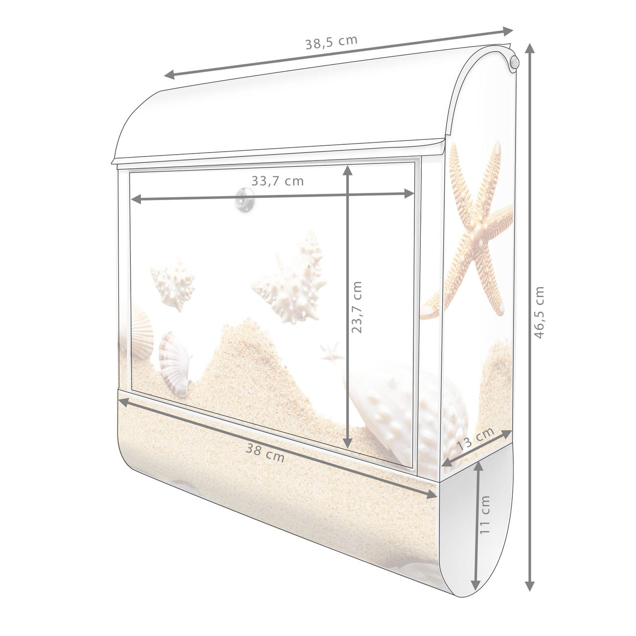 DESIGN: Der Postkasten mit Motiv Motiv Strandzauber hat ein sehr ansprechendes und ausgefallenes Design, damit entlocken Sie Ihren Nachbarn und dem Postboten ein Lächeln. Heben Sie Sich von der tristen grauen Masse ab, ohne auf Funktionalität zu verzichten. DETAILS: Der Postkasten besteht aus pulverbeschichtetem Stahl. Er ist 38x46x12,5cm groß. Das Motiv besteht aus einer wetter- und UV-resistenten Folie, die mit einem Schutzlaminat überzogen ist, sodass der Briefkasten zusätzlich vor Kratzern geschützt ist. Der Briefkasten wird mit Montagematerial, zusätzlich zwei Schlüssel sowie einer Bohrschablone geliefert. NUTZEN: Sie können diesen Briefkasten sowohl als Wandbriefkasten montieren oder einen passenden Ständer kaufen und als Standbriefkasten einbetonieren. Die Größe bietet genügend Platz für Sendungen aller Art, der Einwurf fasst auch größere A4 Sendungen. BANJADO: Ihr Briefkasten wird in Sachsen in einer kleinen Manufaktur von Hand veredelt. Die Motivfolie ist lösungsmittelfrei und schutzlaminiert für einen langen Halt. Wir legen großen Wert auf die Verbindung von Funktionalität und Design. Sie erhalten Handarbeit aus Sachsen.