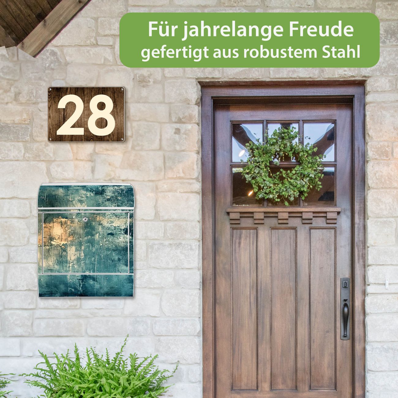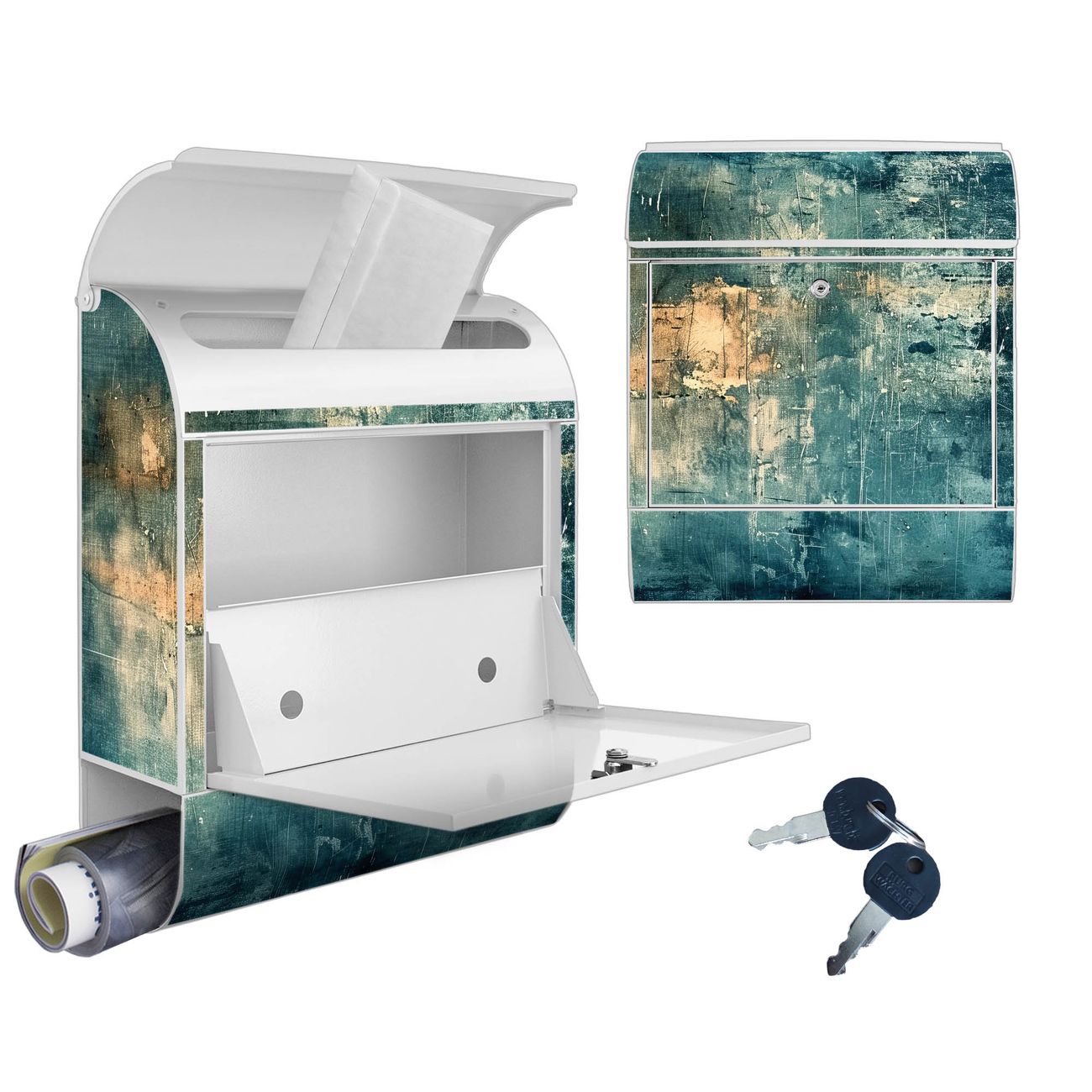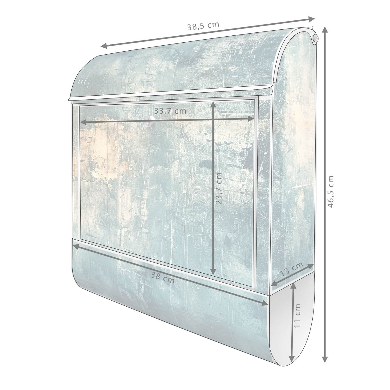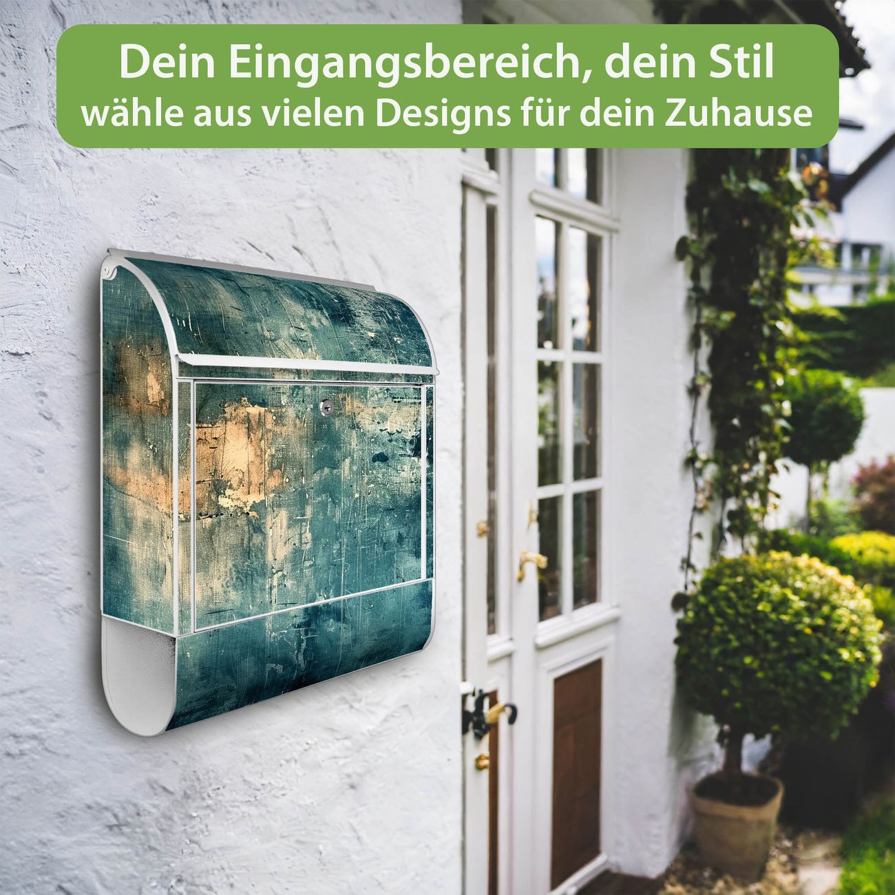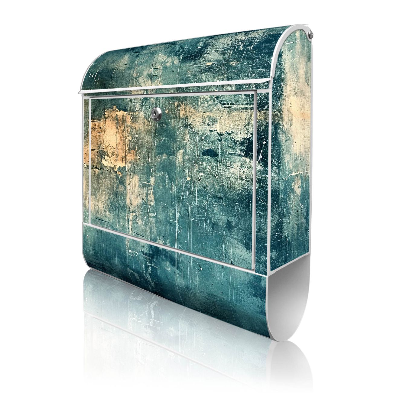 DESIGN: Der Postkasten mit Motiv Motiv Verwitterte Oberfläche hat ein sehr ansprechendes und ausgefallenes Design, damit entlocken Sie Ihren Nachbarn und dem Postboten ein Lächeln. Heben Sie Sich von der tristen grauen Masse ab, ohne auf Funktionalität zu verzichten. DETAILS: Der Postkasten besteht aus pulverbeschichtetem Stahl. Er ist 38x46x12,5cm groß. Das Motiv besteht aus einer wetter- und UV-resistenten Folie, die mit einem Schutzlaminat überzogen ist, sodass der Briefkasten zusätzlich vor Kratzern geschützt ist. Der Briefkasten wird mit Montagematerial, zusätzlich zwei Schlüssel sowie einer Bohrschablone geliefert. NUTZEN: Sie können diesen Briefkasten sowohl als Wandbriefkasten montieren oder einen passenden Ständer kaufen und als Standbriefkasten einbetonieren. Die Größe bietet genügend Platz für Sendungen aller Art, der Einwurf fasst auch größere A4 Sendungen. BANJADO: Ihr Briefkasten wird in Sachsen in einer kleinen Manufaktur von Hand veredelt. Die Motivfolie ist lösungsmittelfrei und schutzlaminiert für einen langen Halt. Wir legen großen Wert auf die Verbindung von Funktionalität und Design. Sie erhalten Handarbeit aus Sachsen.