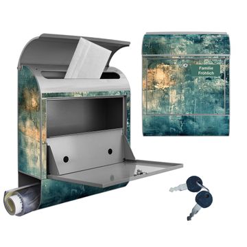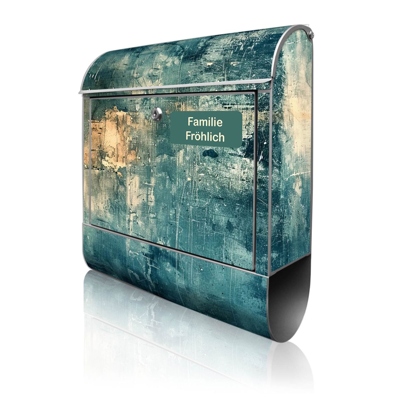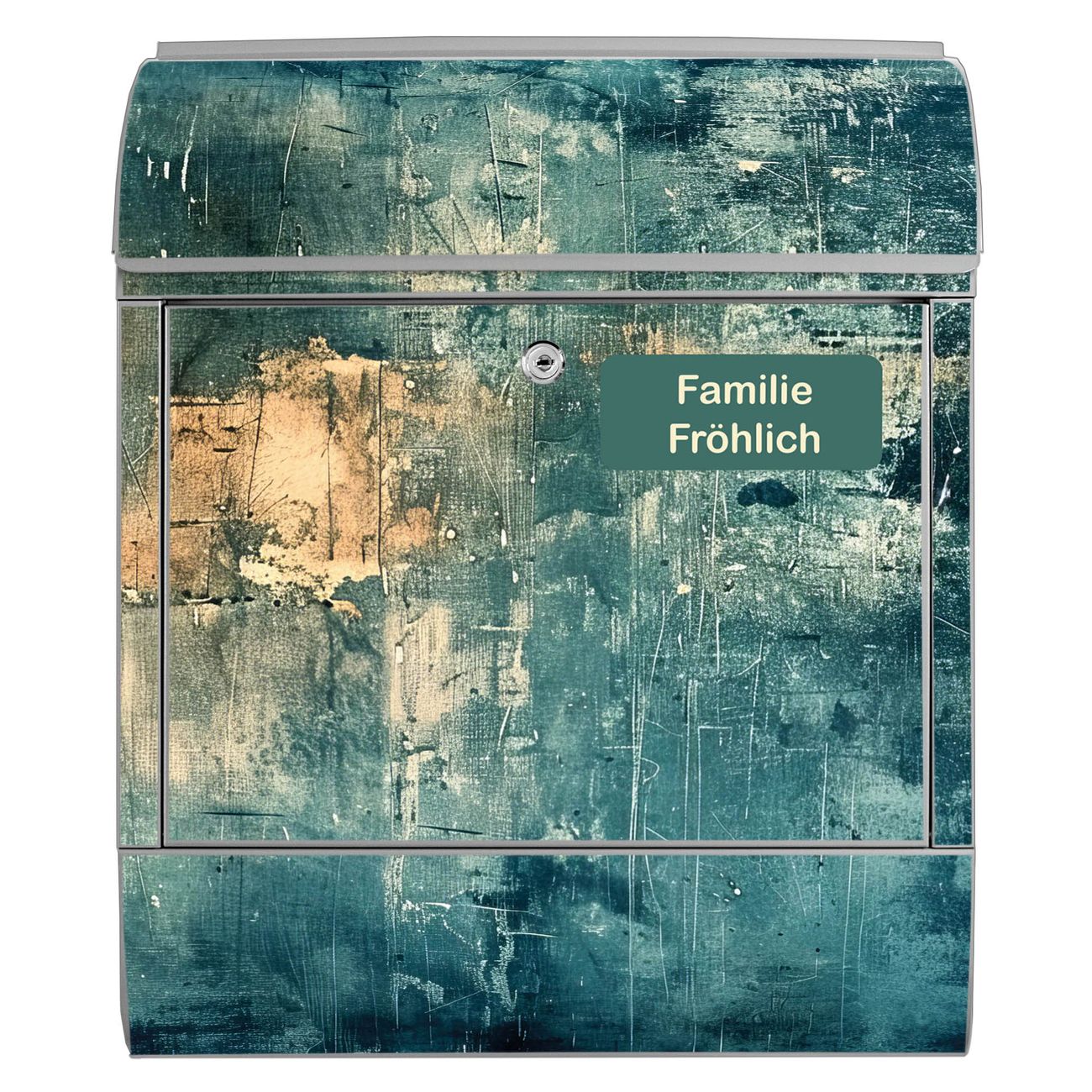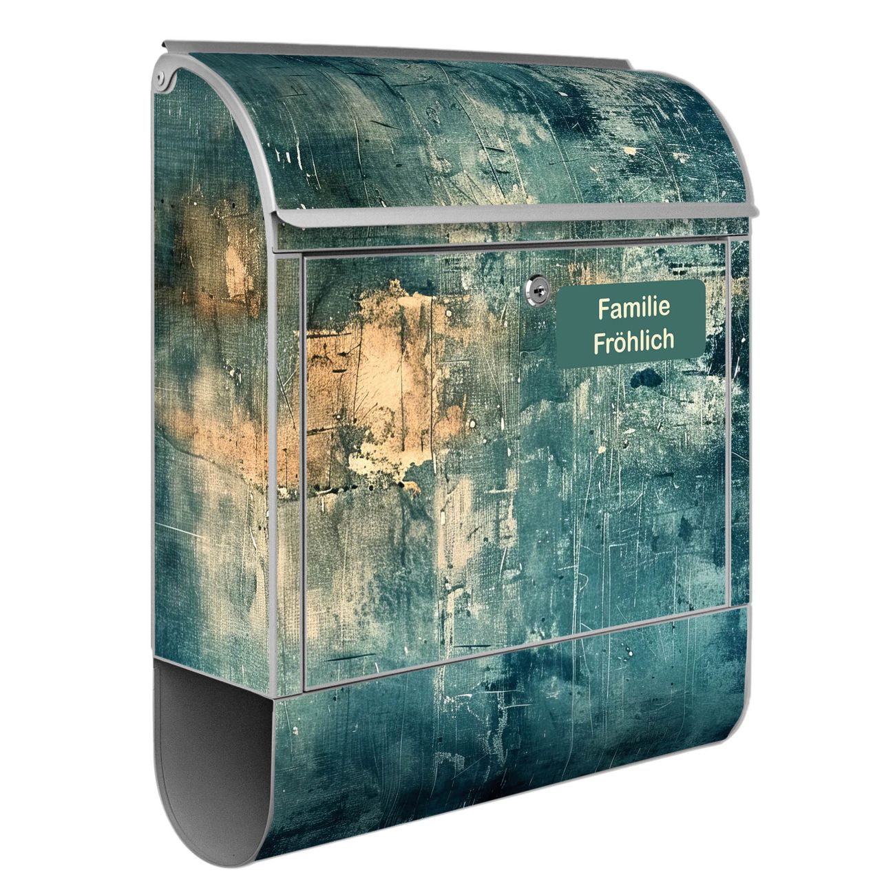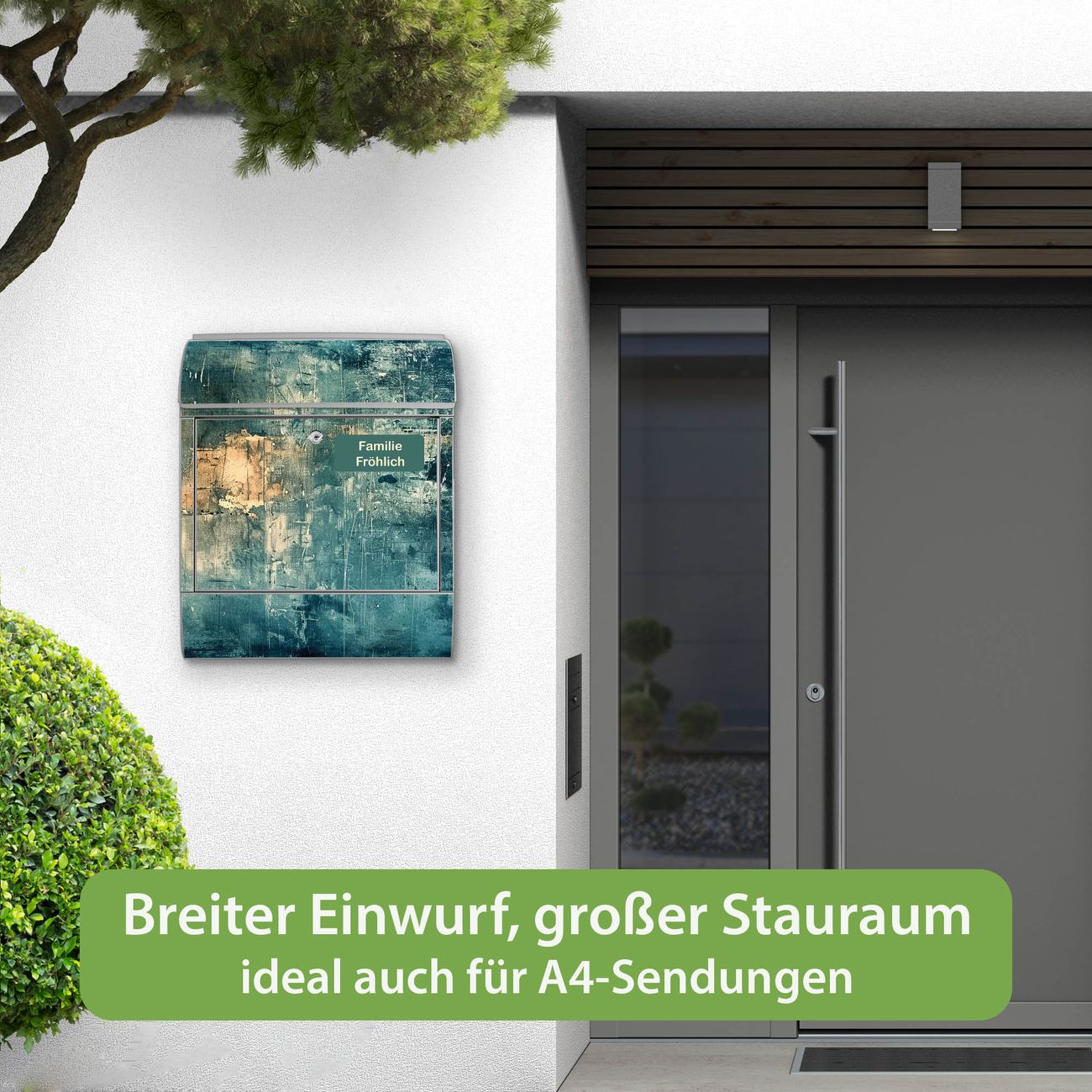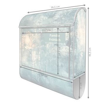 DESIGN: Der Postkasten mit Motiv Motiv Verwitterte Oberfläche hat ein sehr ansprechendes und ausgefallenes Design, damit entlocken Sie Ihren Nachbarn und dem Postboten ein Lächeln. Heben Sie Sich von der tristen grauen Masse ab, ohne auf Funktionalität zu verzichten. DETAILS: Der Postkasten besteht aus pulverbeschichtetem Stahl. Er ist 38x46x12,5cm groß. Das Motiv besteht aus einer wetter- und UV-resistenten Folie, die mit einem Schutzlaminat überzogen ist, sodass der Briefkasten zusätzlich vor Kratzern geschützt ist. Der Briefkasten wird mit Montagematerial, zusätzlich zwei Schlüssel sowie einer Bohrschablone geliefert. NUTZEN: Sie können diesen Briefkasten sowohl als Wandbriefkasten montieren oder einen passenden Ständer kaufen und als Standbriefkasten einbetonieren. Die Größe bietet genügend Platz für Sendungen aller Art, der Einwurf fasst auch größere A4 Sendungen. BANJADO: Ihr Briefkasten wird in Sachsen in einer kleinen Manufaktur von Hand veredelt. Die Motivfolie ist lösungsmittelfrei und schutzlaminiert für einen langen Halt. Wir legen großen Wert auf die Verbindung von Funktionalität und Design. Sie erhalten Handarbeit aus Sachsen.