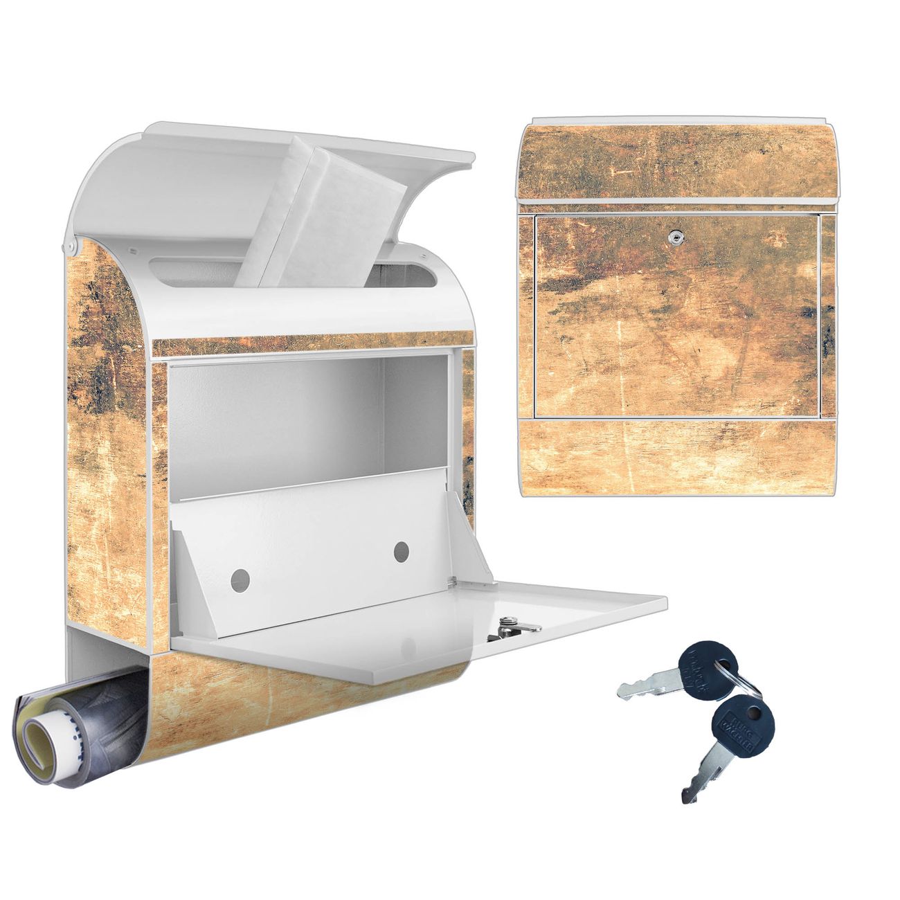 Großer Stahl Briefkasten Motiv Verwittertes Holz 2