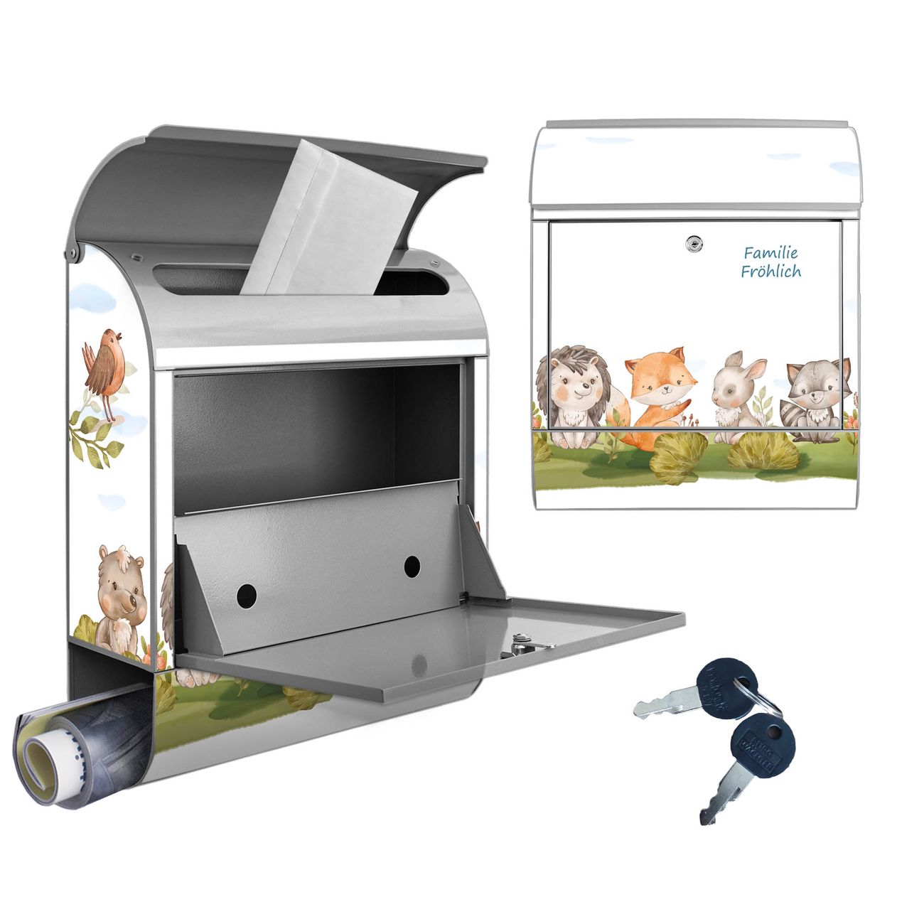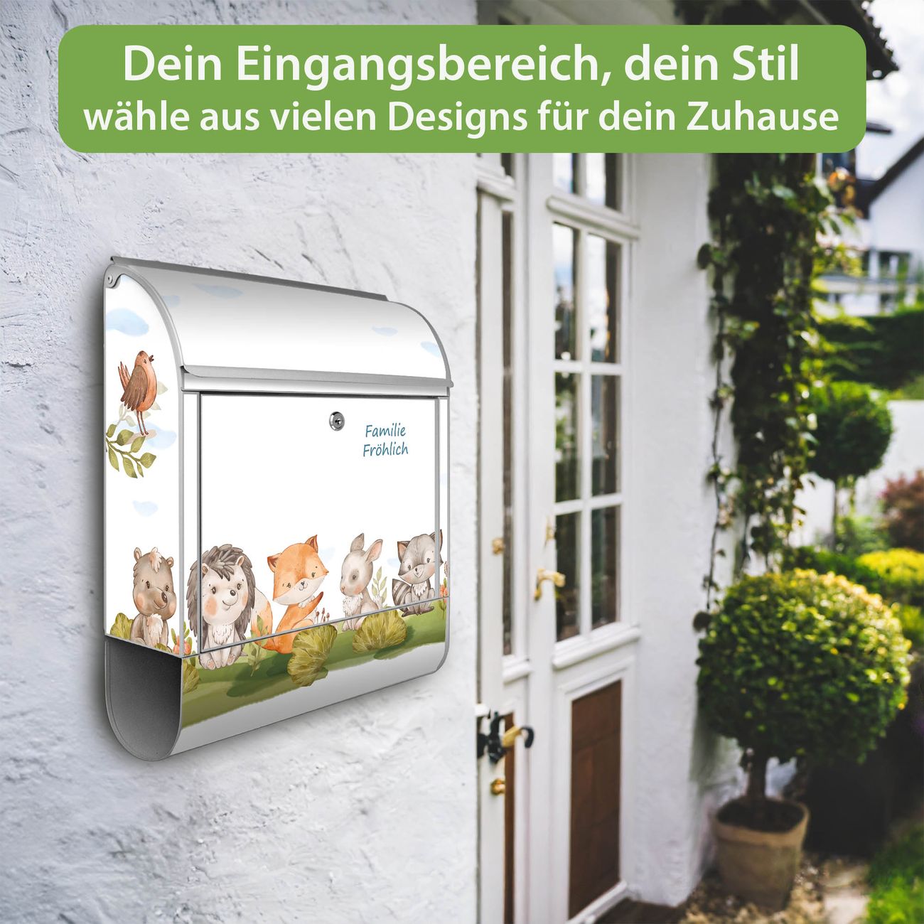 Großer Stahl Briefkasten Motiv Waldfreunde 2