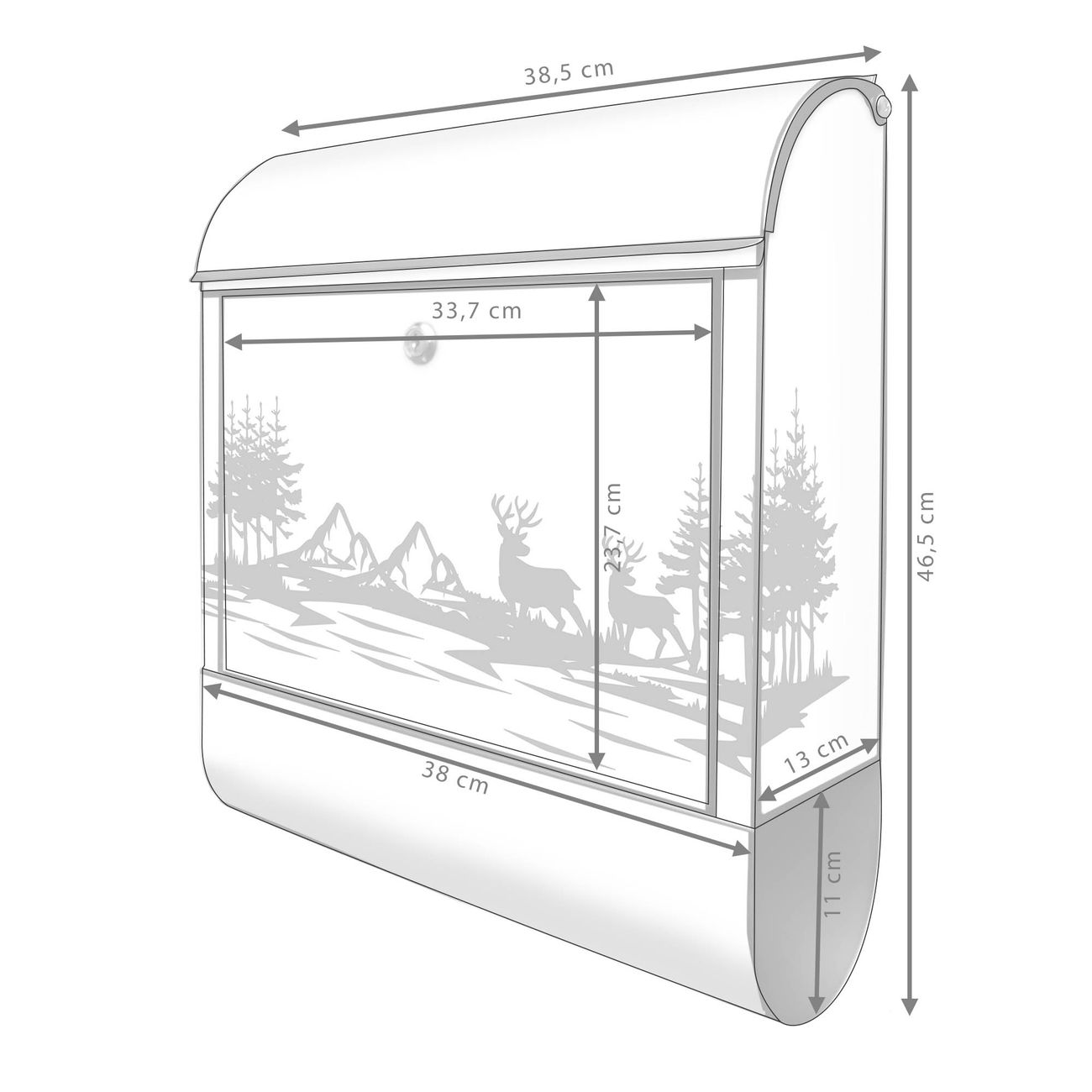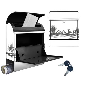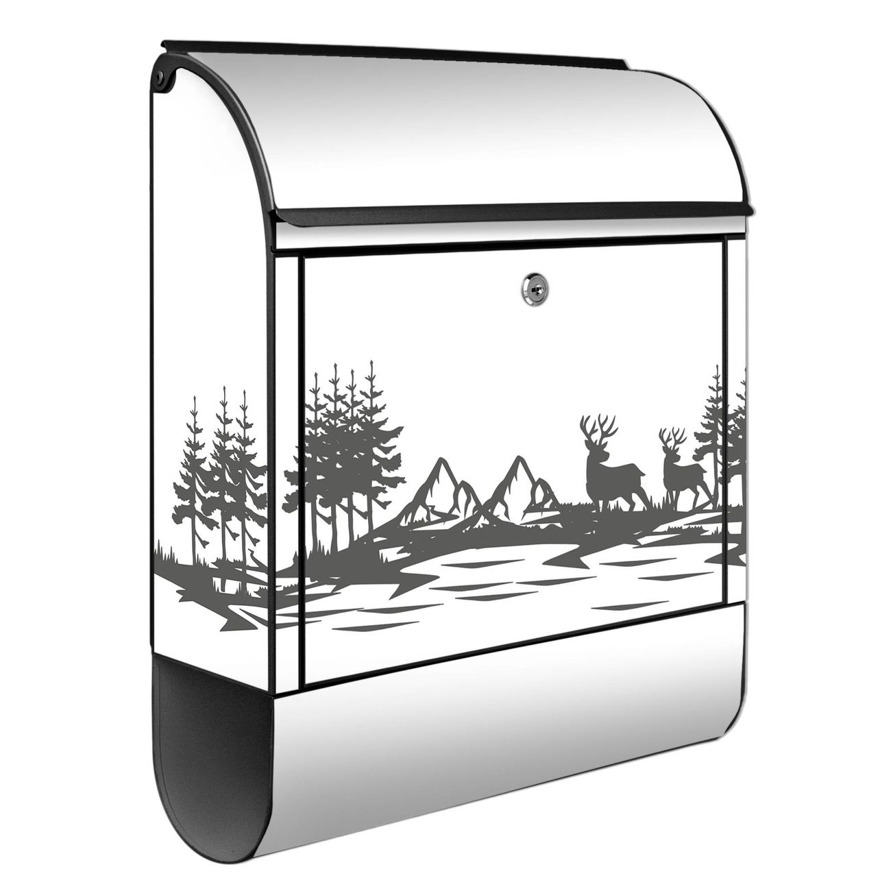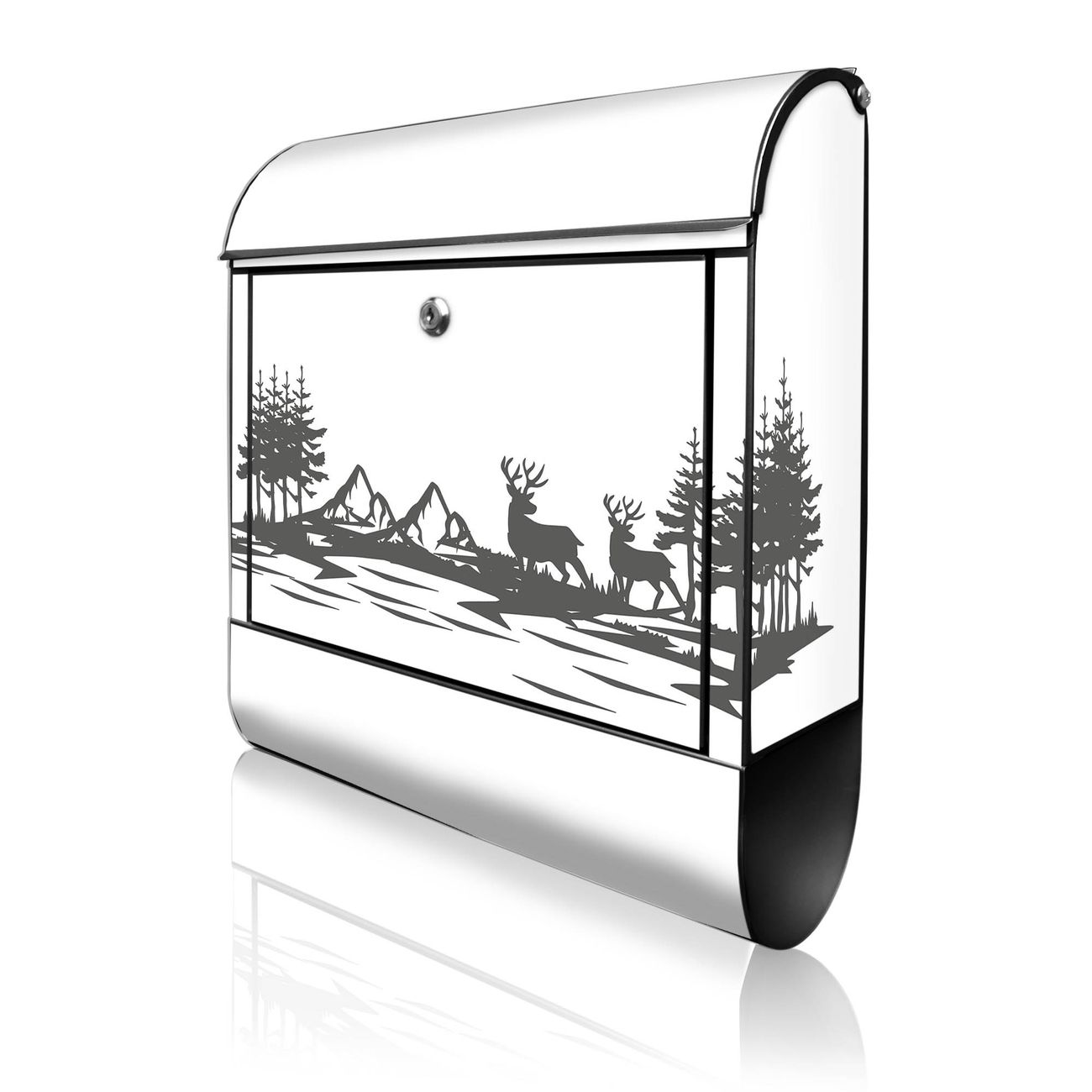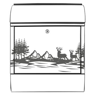 Großer Stahl Briefkasten Motiv Waldidylle mit Hirschen