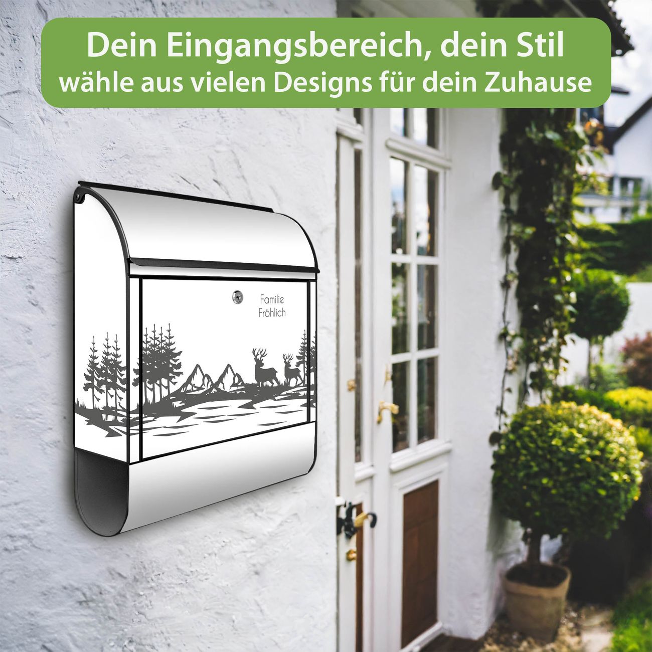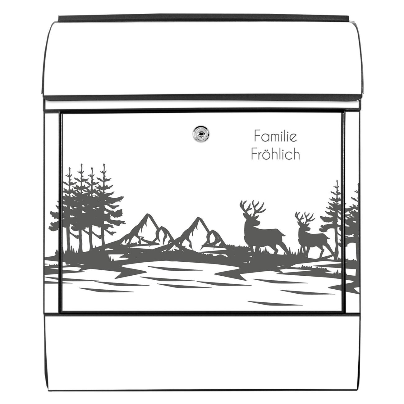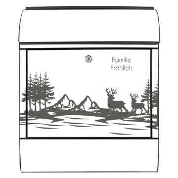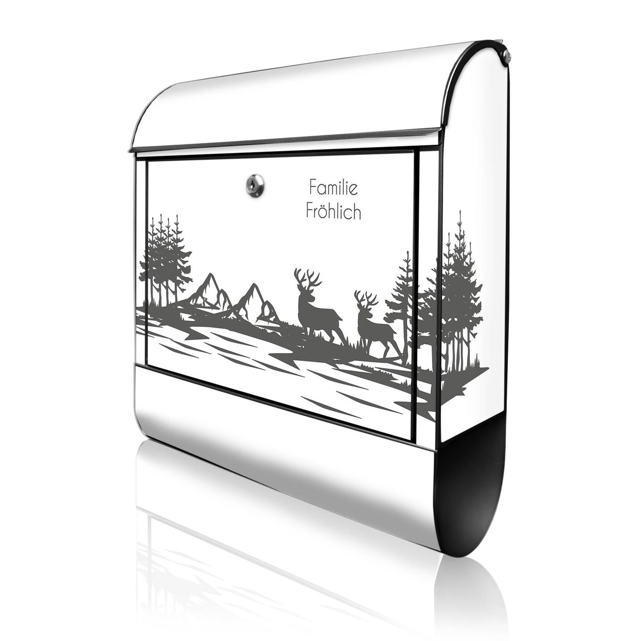 Großer Stahl Briefkasten Motiv Waldidylle mit Hirschen