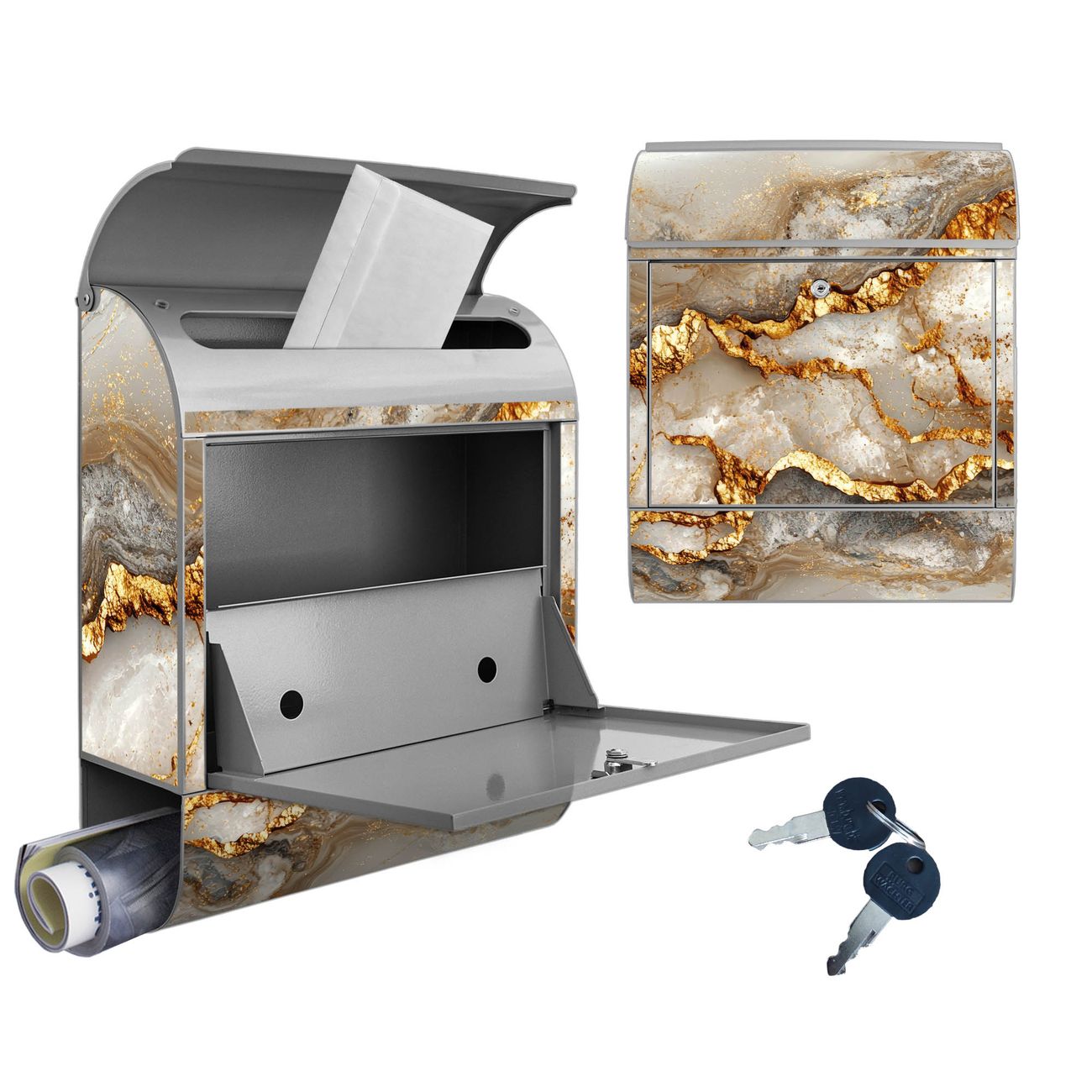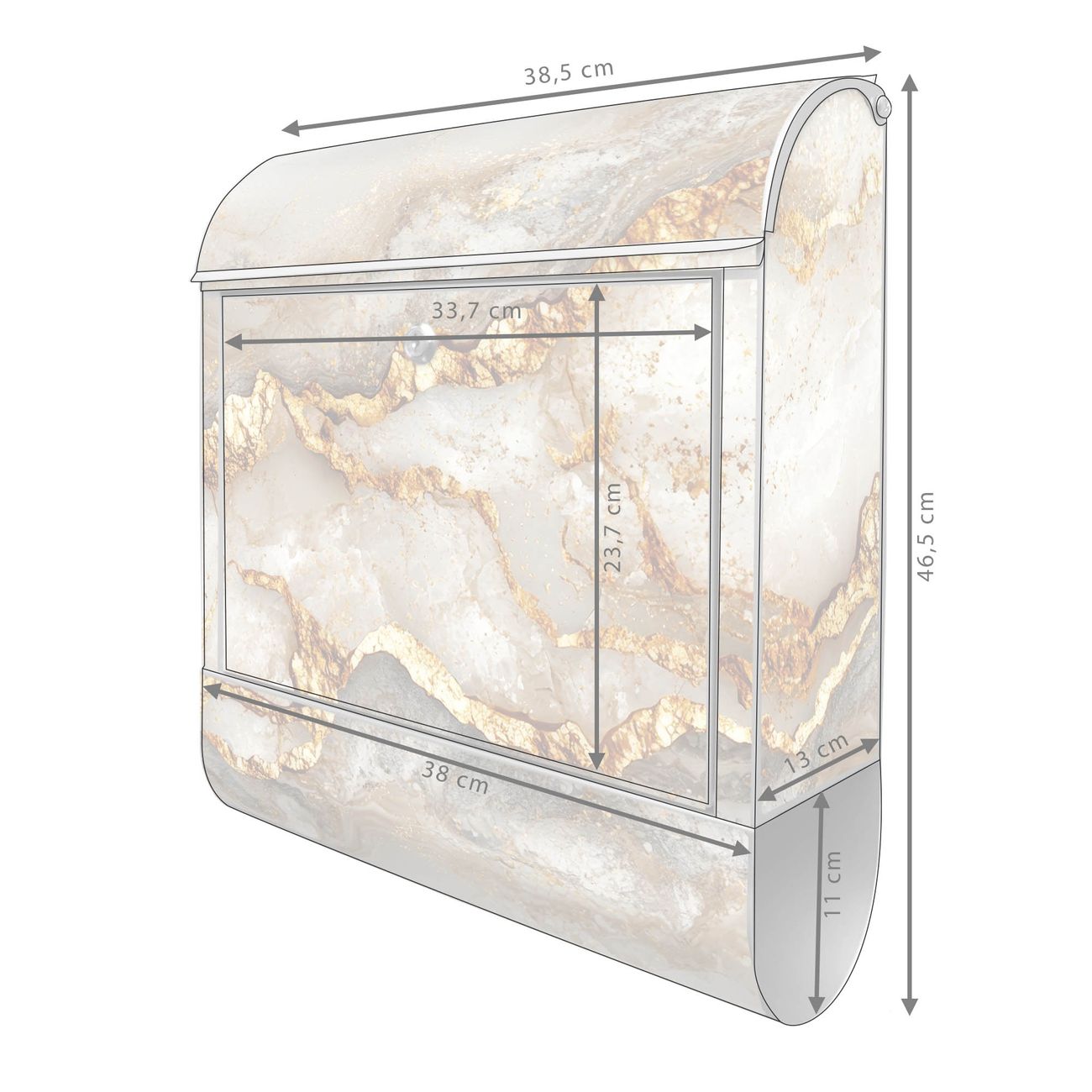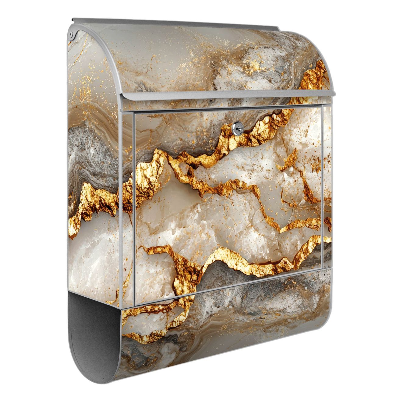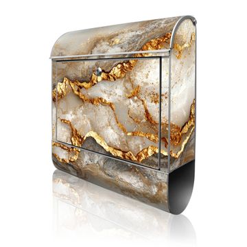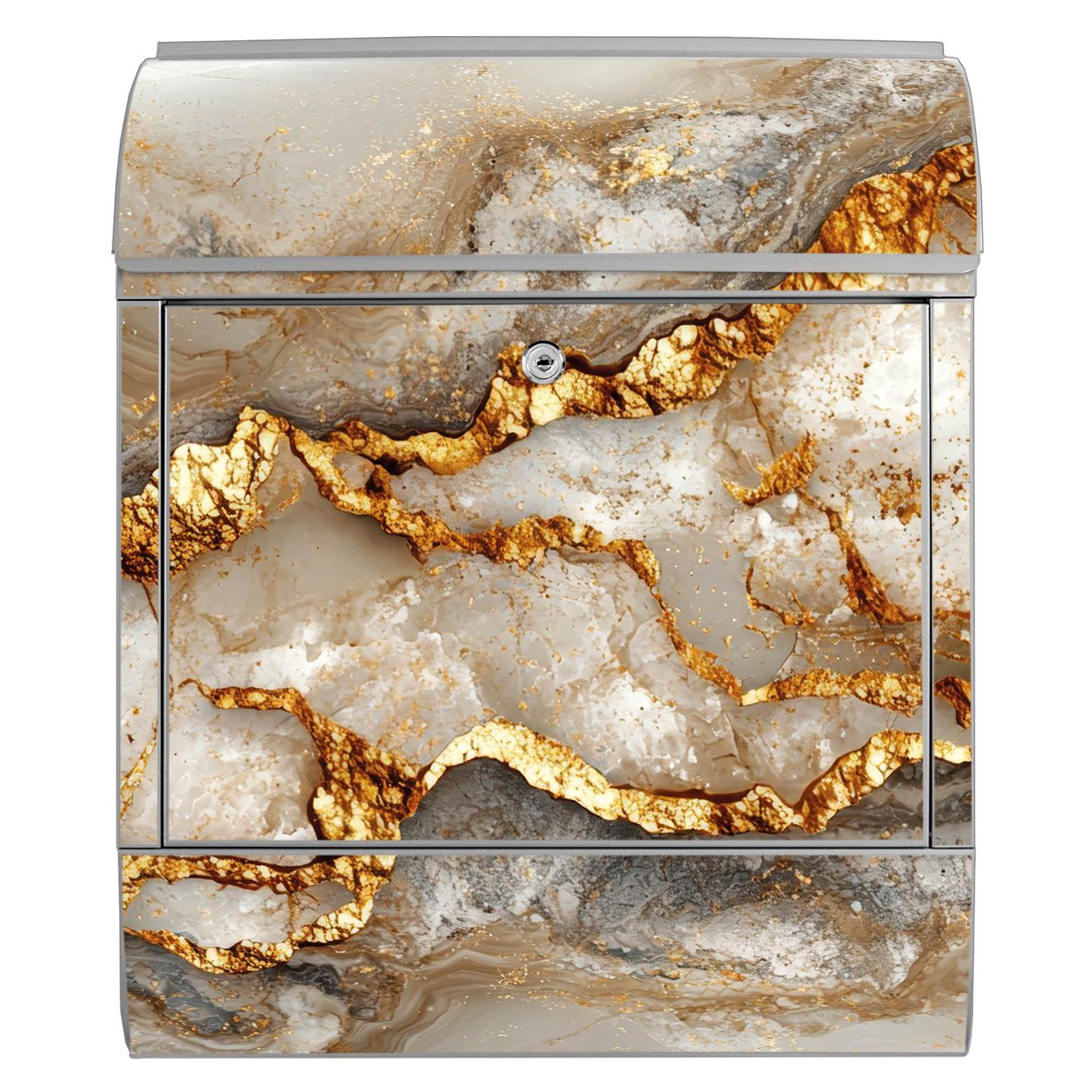 Großer Stahl Briefkasten Motiv Weißer Marmor mit Gold 2