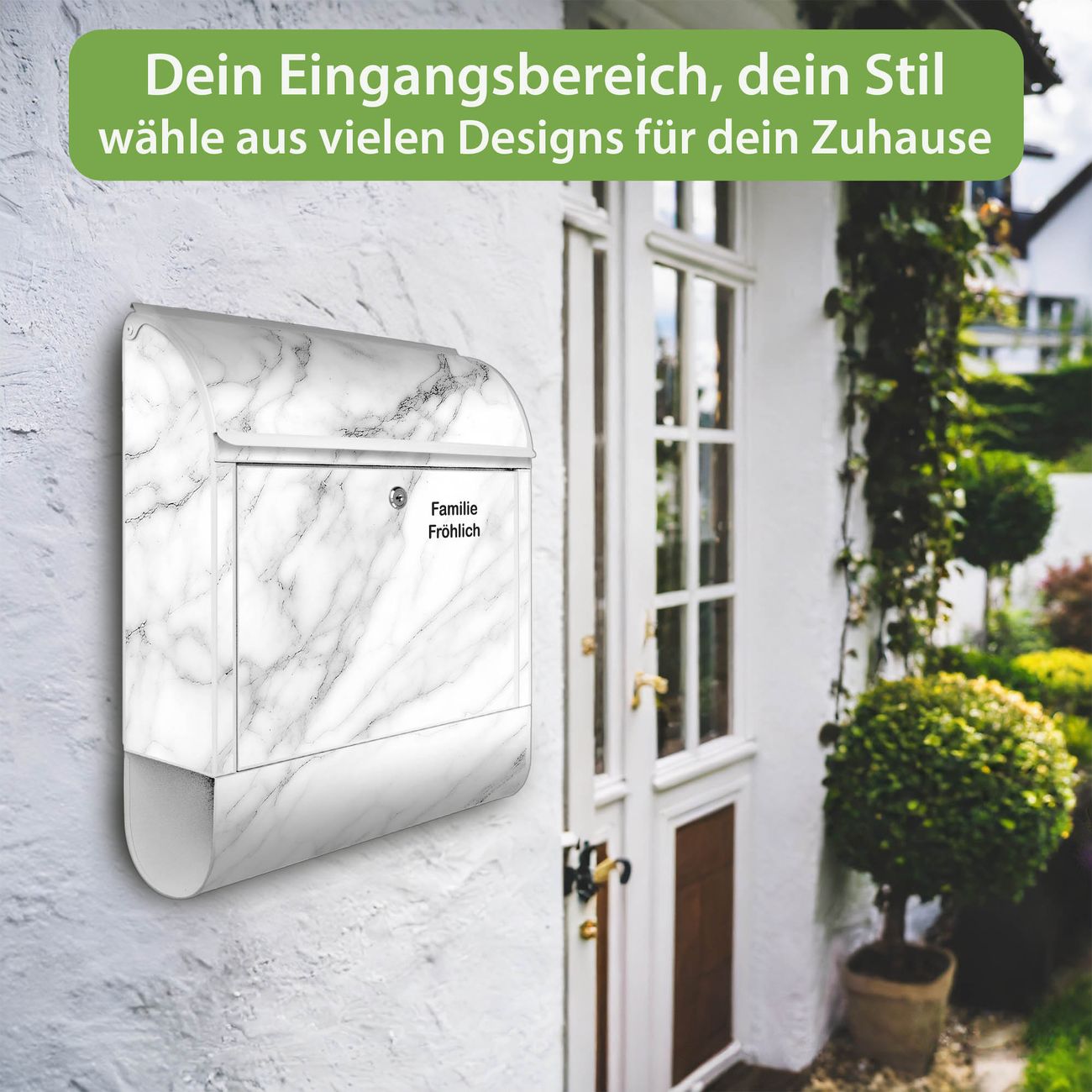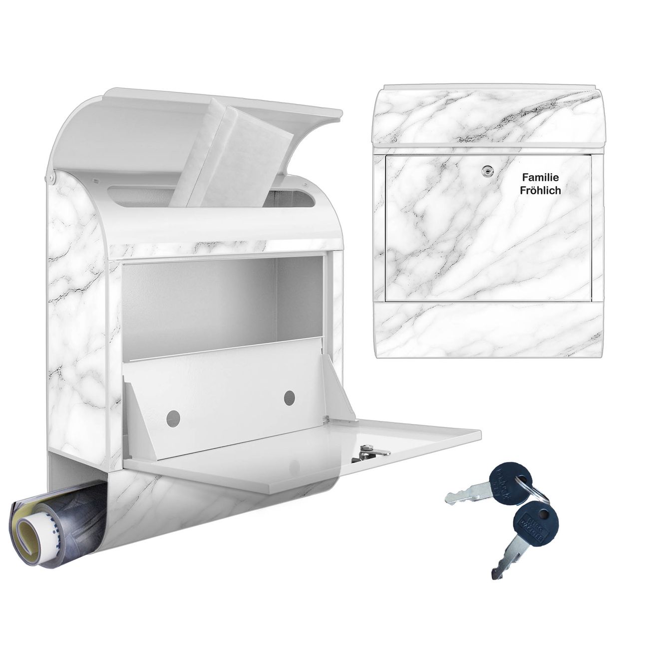 Großer Stahl Briefkasten Motiv Weißer Marmor