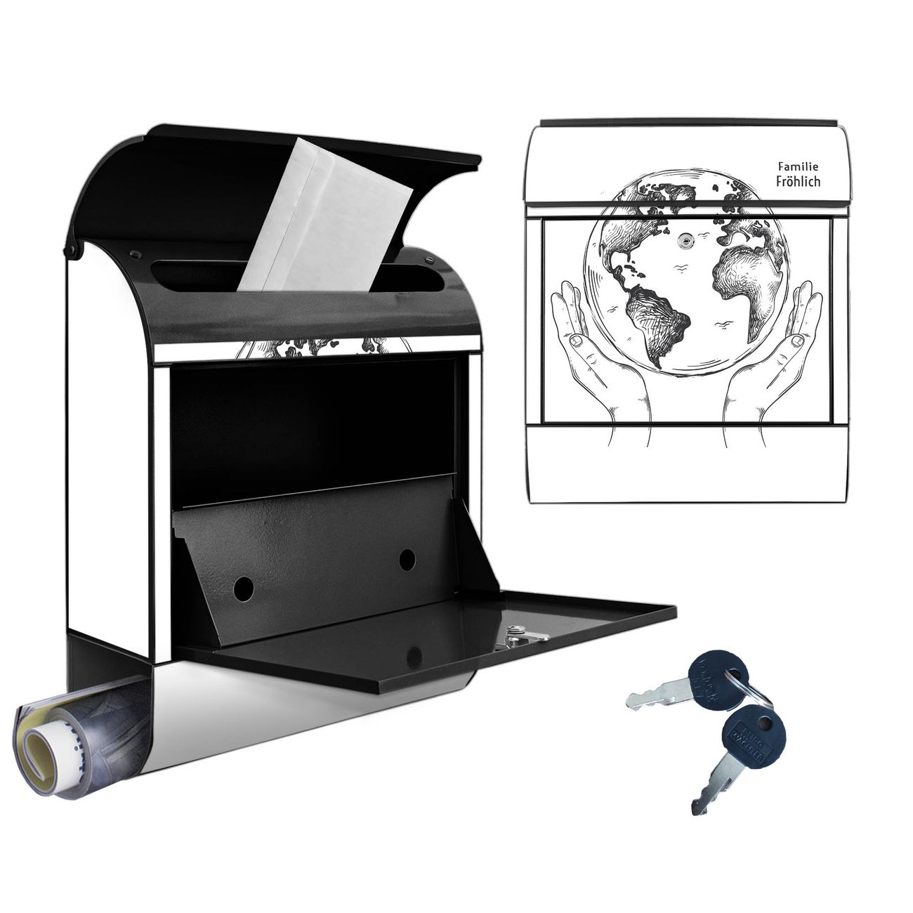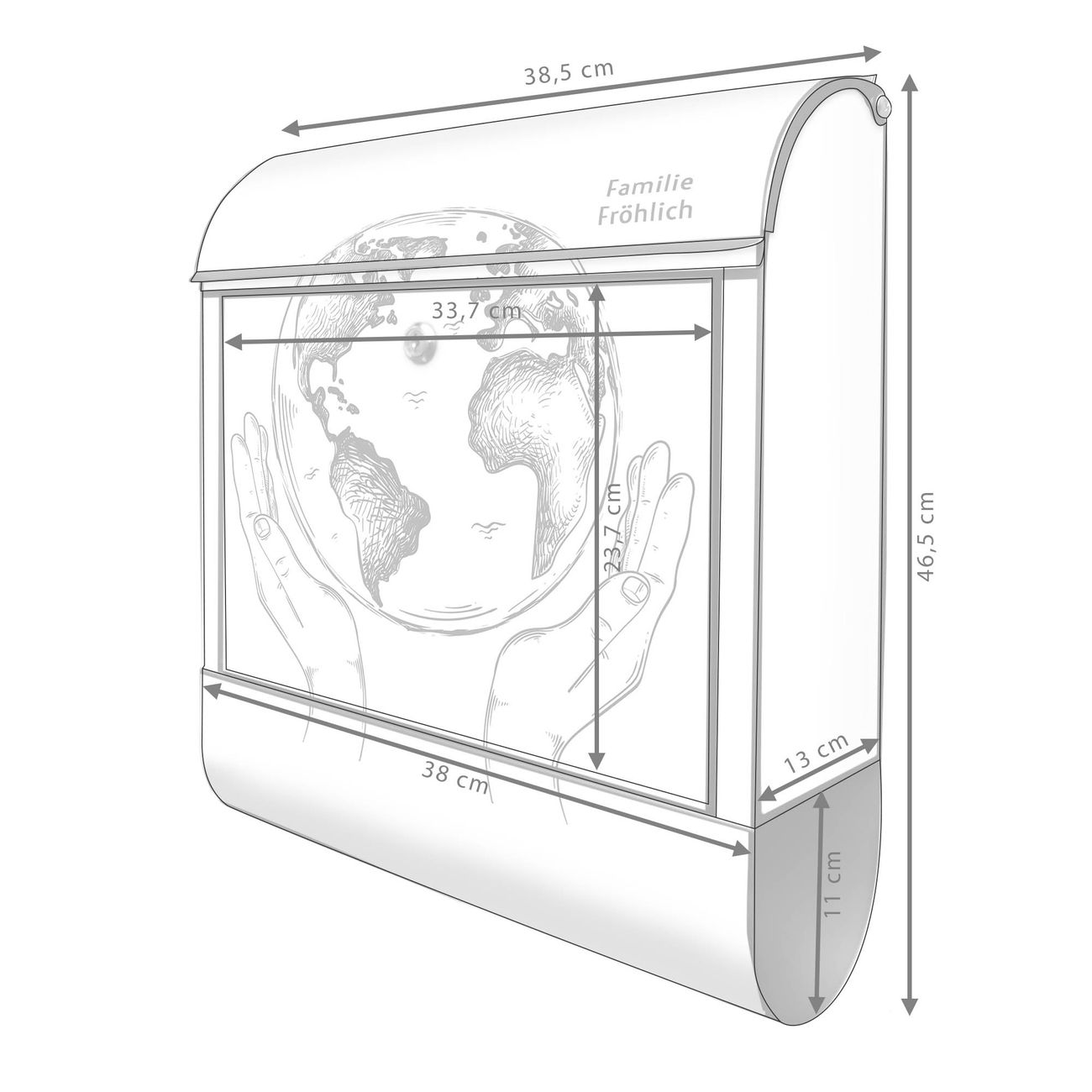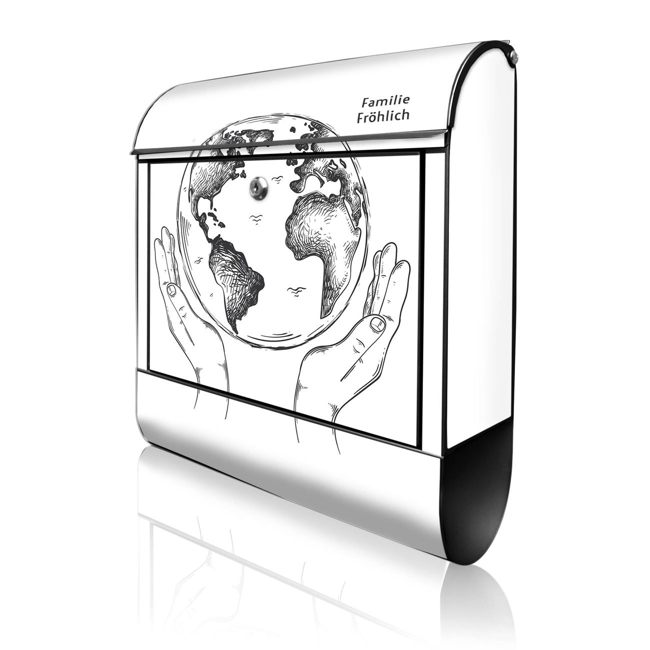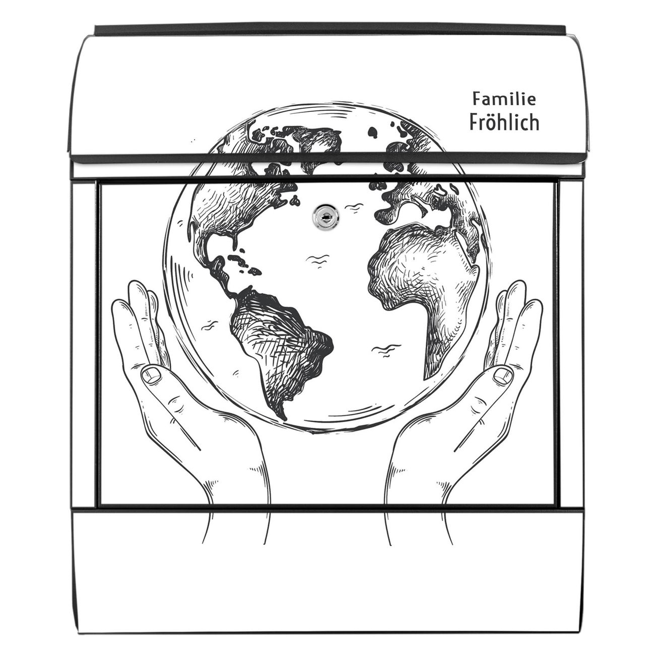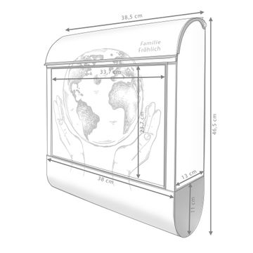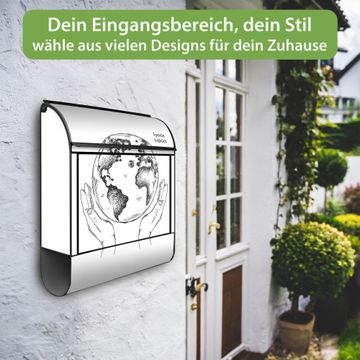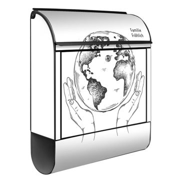Großer Stahl Briefkasten Motiv Welt in den Händen