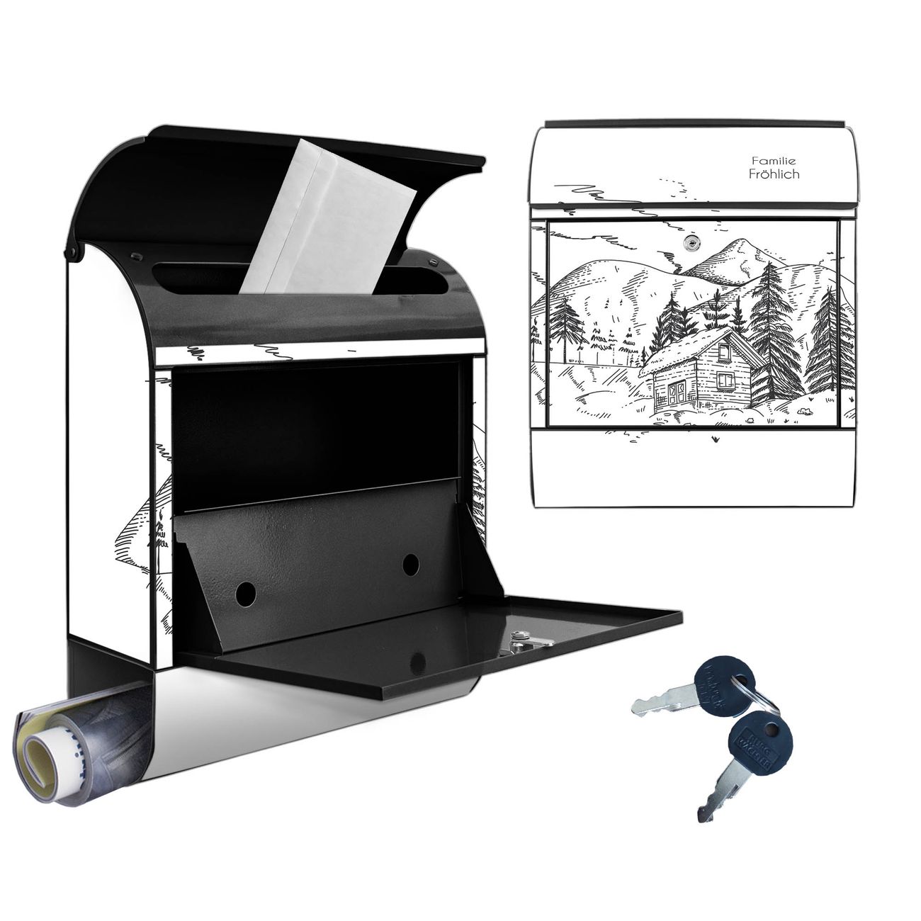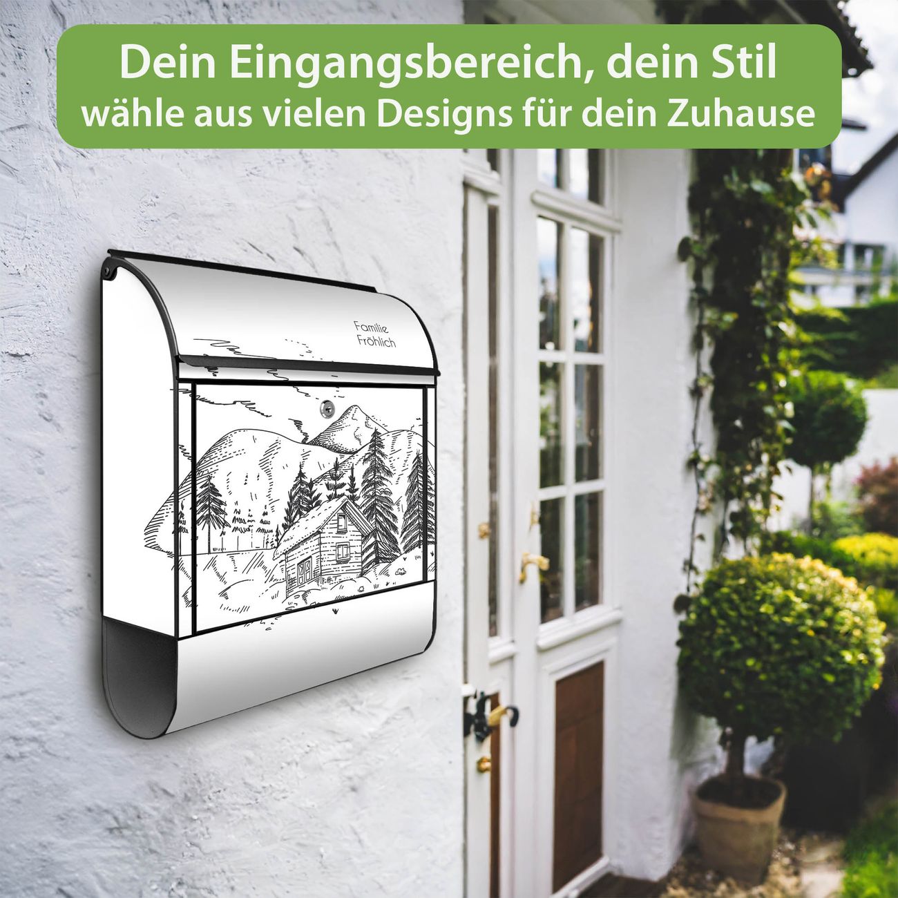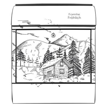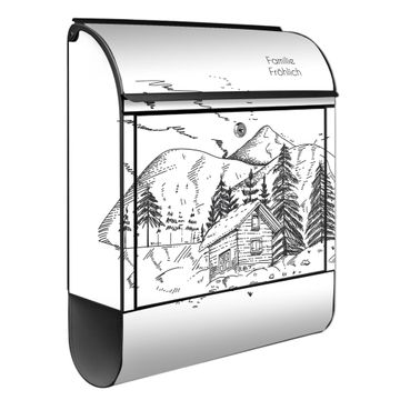 Großer Stahl Briefkasten Motiv Winterliche Berghüttenidylle