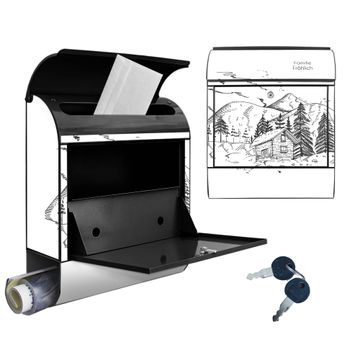 DESIGN: Der Postkasten mit Motiv Motiv Winterliche Berghüttenidylle hat ein sehr ansprechendes und ausgefallenes Design, damit entlocken Sie Ihren Nachbarn und dem Postboten ein Lächeln. Heben Sie Sich von der tristen grauen Masse ab, ohne auf Funktionalität zu verzichten. DETAILS: Der Postkasten besteht aus pulverbeschichtetem Stahl. Er ist 38x46x12,5cm groß. Das Motiv besteht aus einer wetter- und UV-resistenten Folie, die mit einem Schutzlaminat überzogen ist, sodass der Briefkasten zusätzlich vor Kratzern geschützt ist. Der Briefkasten wird mit Montagematerial, zusätzlich zwei Schlüssel sowie einer Bohrschablone geliefert. NUTZEN: Sie können diesen Briefkasten sowohl als Wandbriefkasten montieren oder einen passenden Ständer kaufen und als Standbriefkasten einbetonieren. Die Größe bietet genügend Platz für Sendungen aller Art, der Einwurf fasst auch größere A4 Sendungen. BANJADO: Ihr Briefkasten wird in Sachsen in einer kleinen Manufaktur von Hand veredelt. Die Motivfolie ist lösungsmittelfrei und schutzlaminiert für einen langen Halt. Wir legen großen Wert auf die Verbindung von Funktionalität und Design. Sie erhalten Handarbeit aus Sachsen.