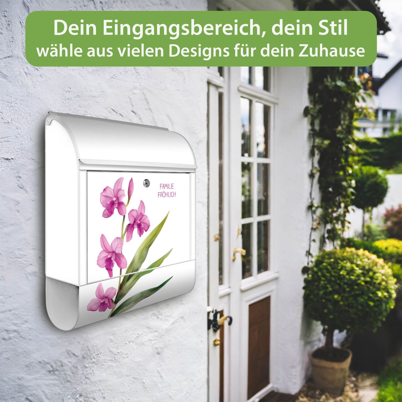 Großer Stahl Briefkasten Motiv Zarte Orchidee