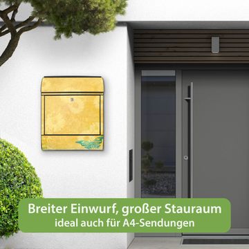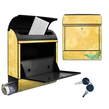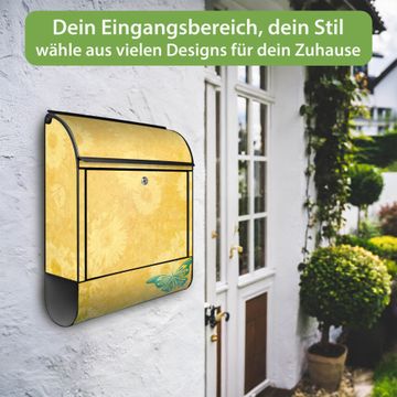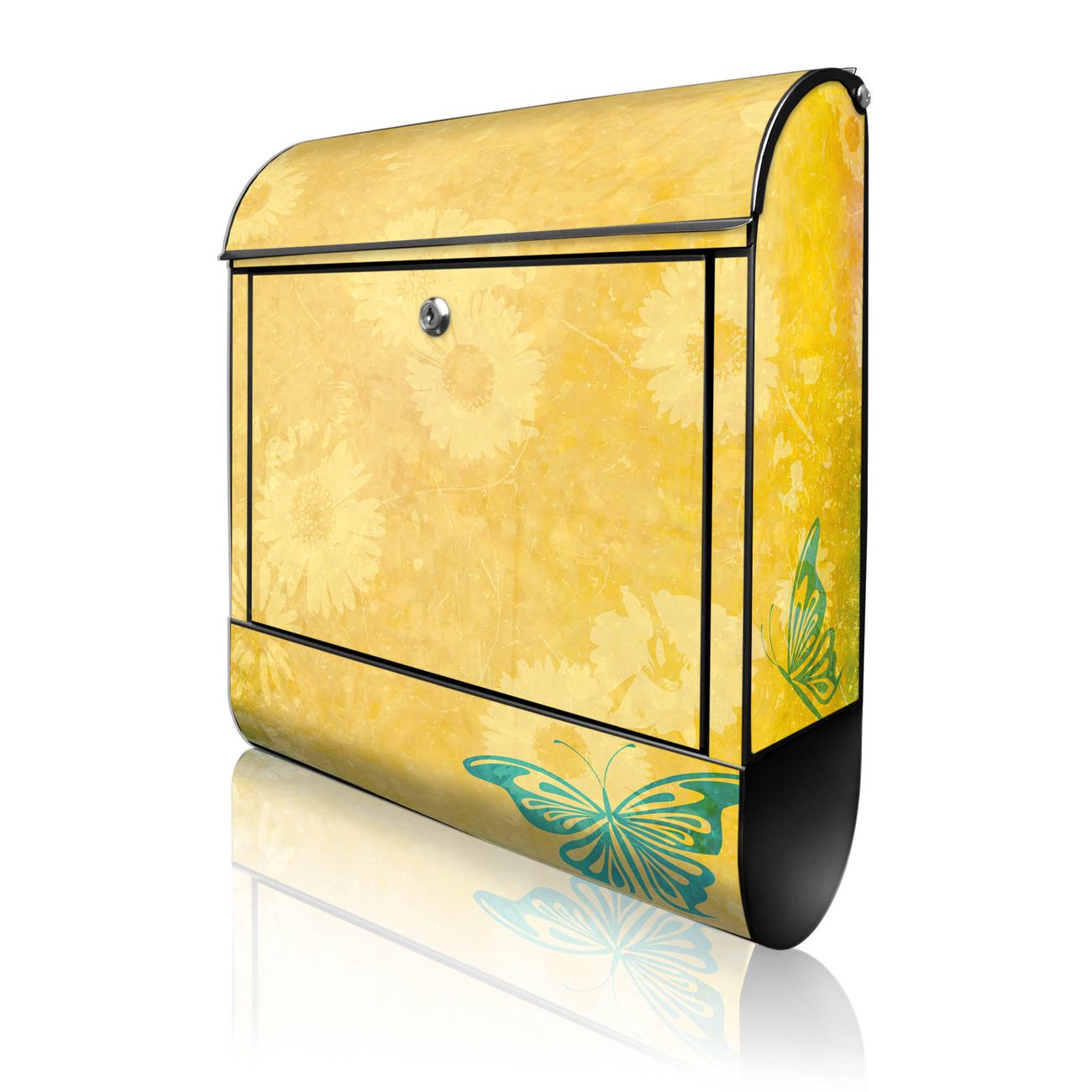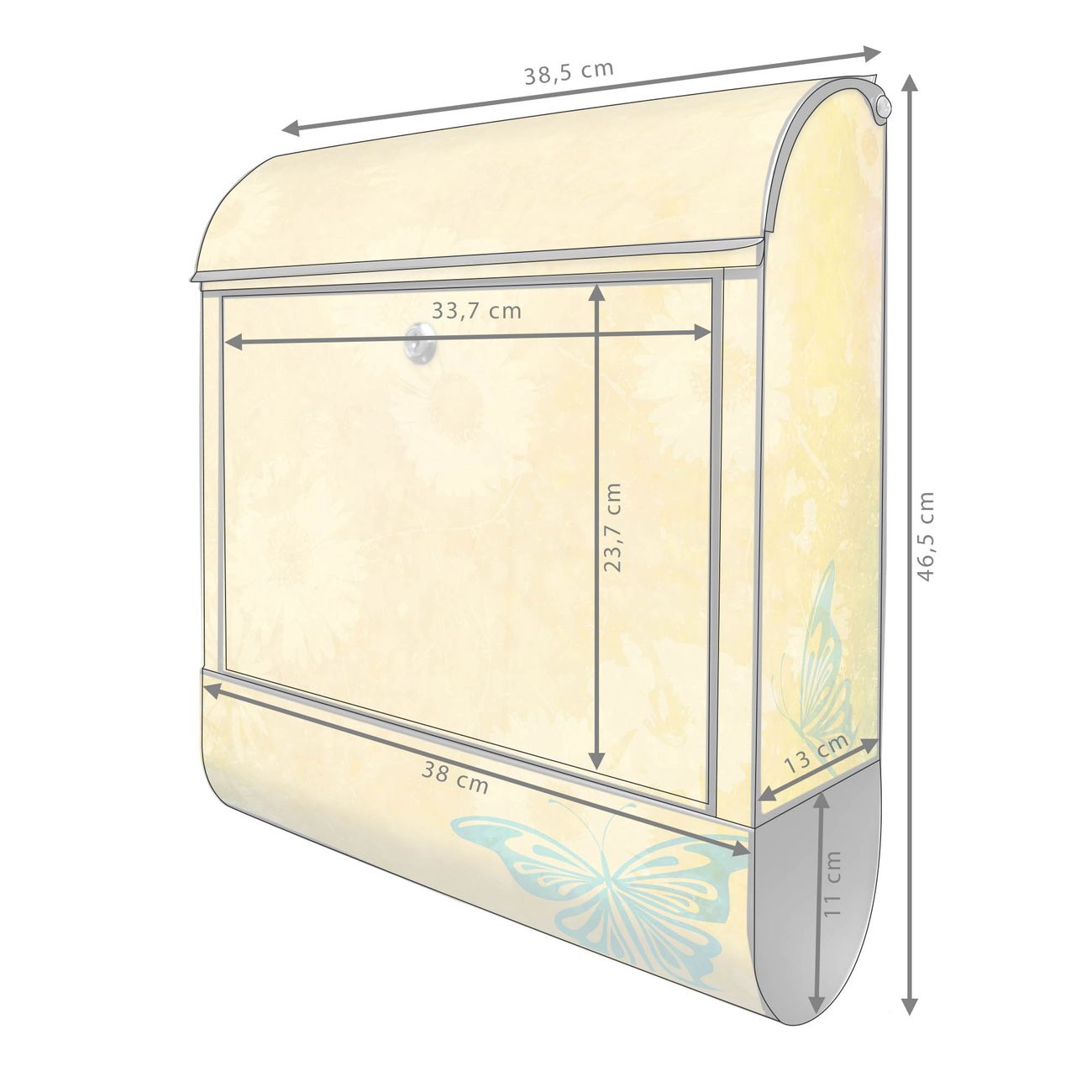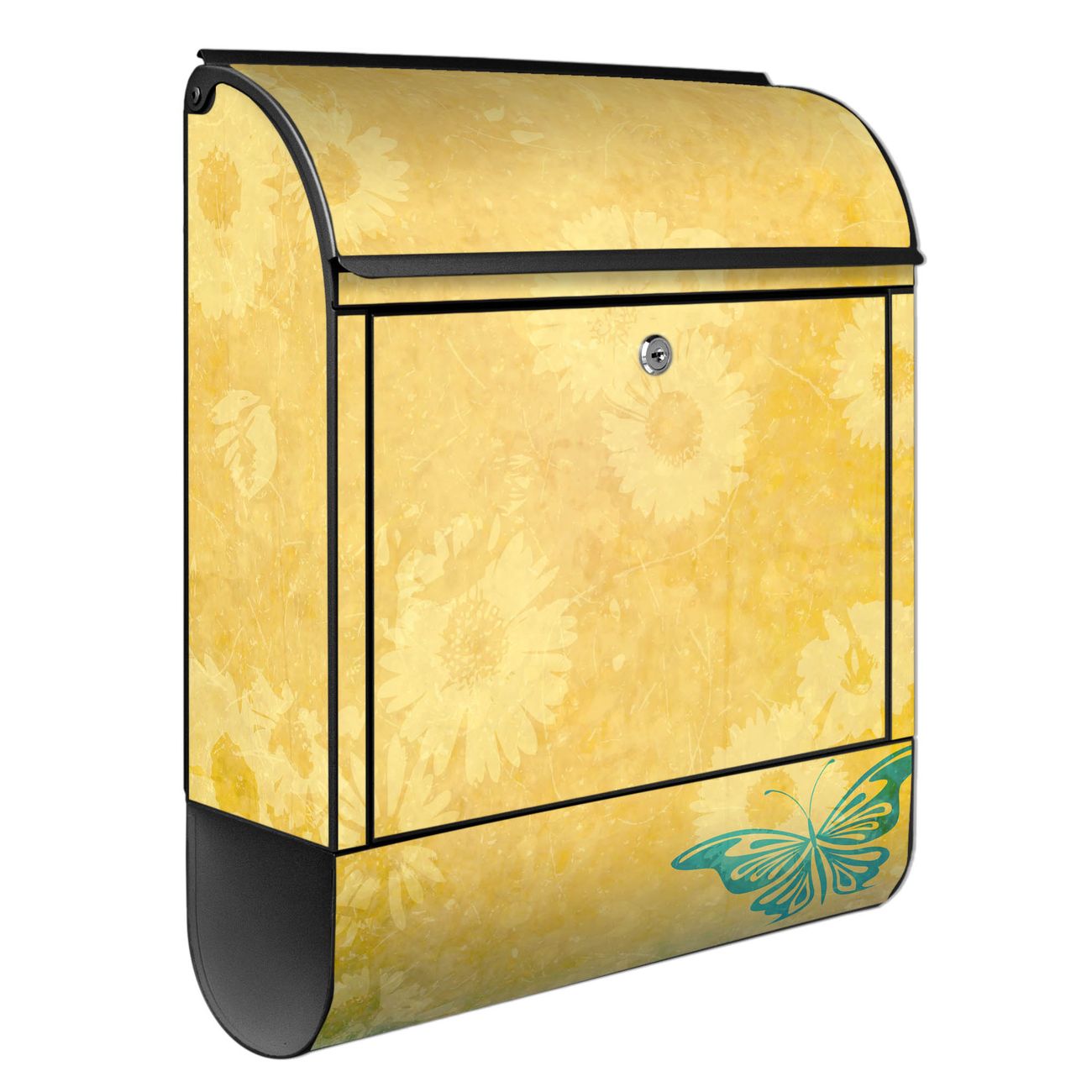 Motiv Muster Sommer Nr. 10365 Material schwarz pulverbeschichtetes Stahlblech Dekorfolie UV-beständig, wetterfest Gesamtgröße 38x47x13cm BxHxT Briefschlitz 33x3,5cm BxH Gewicht ca. 3,5 kg Zubehör Montagezubehör, 2 Schlüssel, Bohrschablone