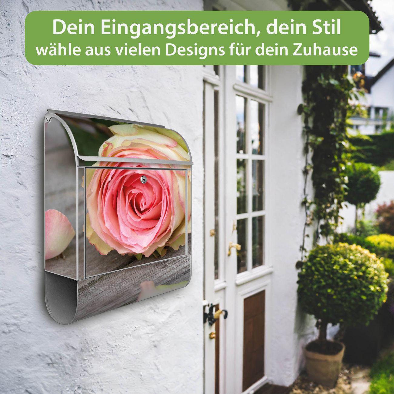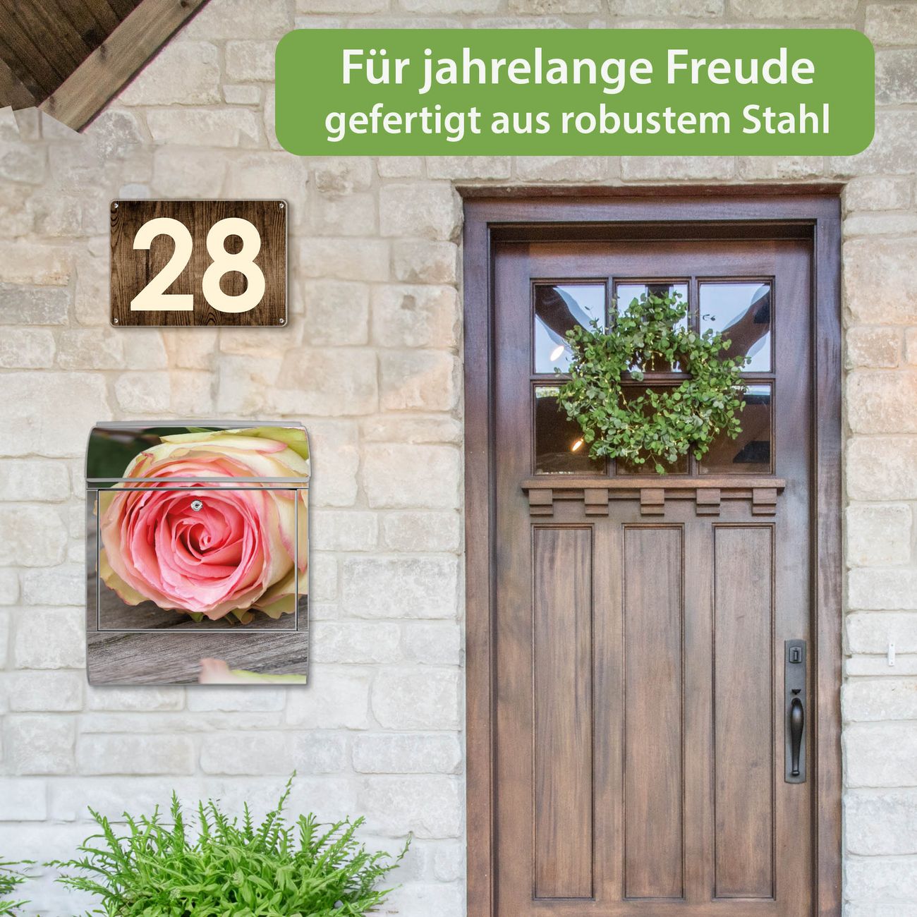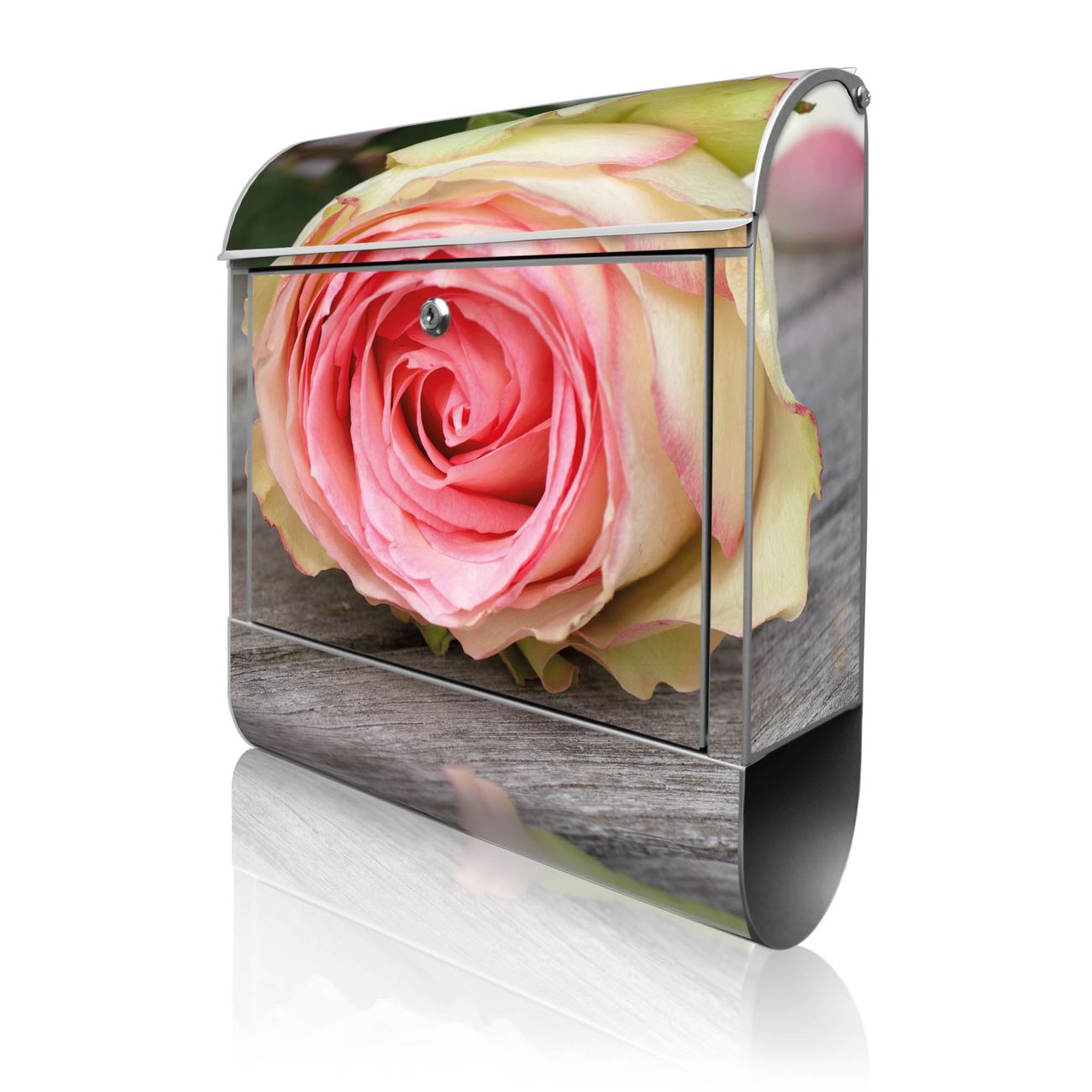 Großer Stahl Briefkasten Motiv Rosa Rose