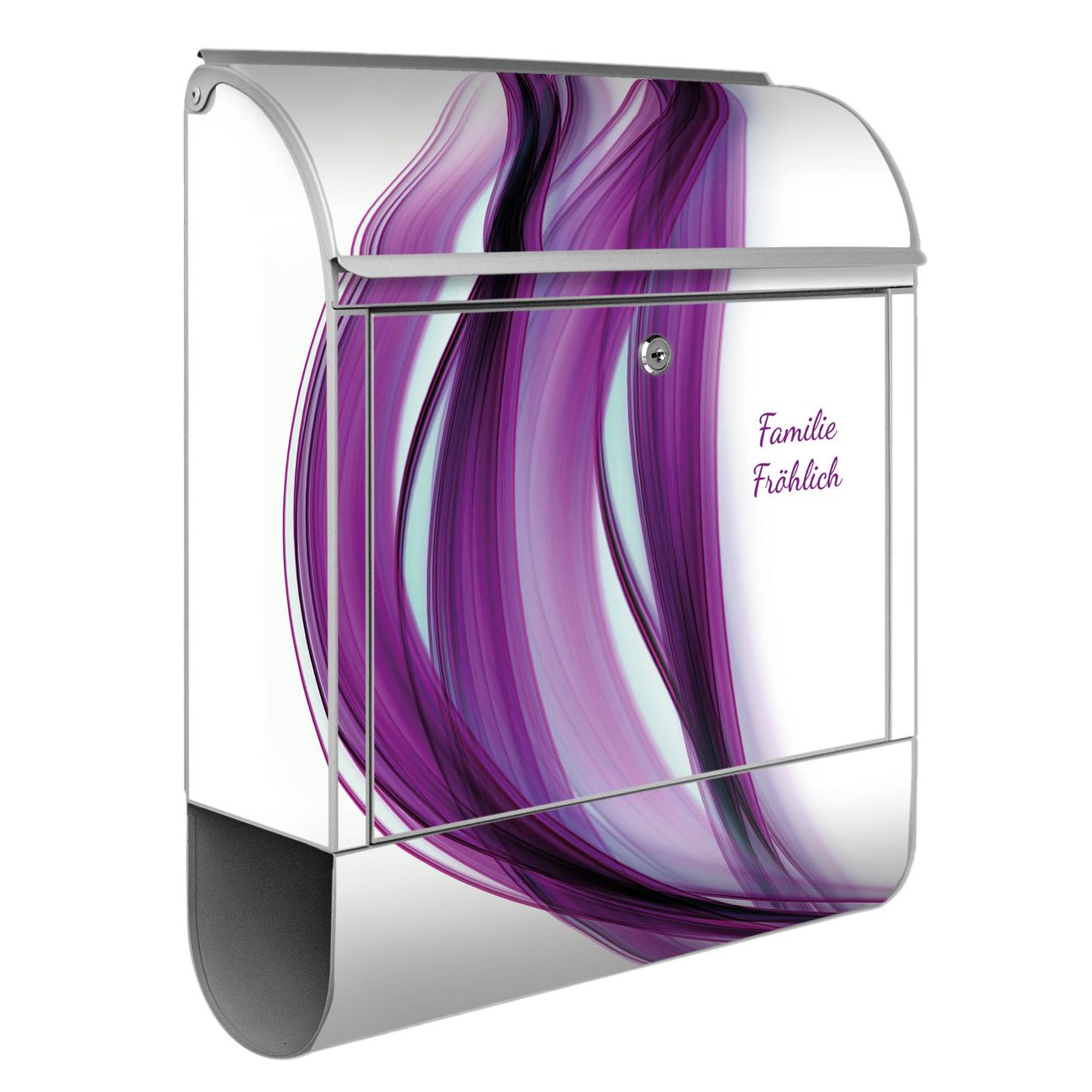 Motiv Violet Element Nr. 10146 Material silber pulverbeschichtetes Stahlblech Dekorfolie UV-beständig, wetterfest Gesamtgröße 38x47x13cm BxHxT Briefschlitz 33x3,5cm BxH Gewicht ca. 3,5 kg Zubehör Montagezubehör, 2 Schlüssel, Bohrschablone