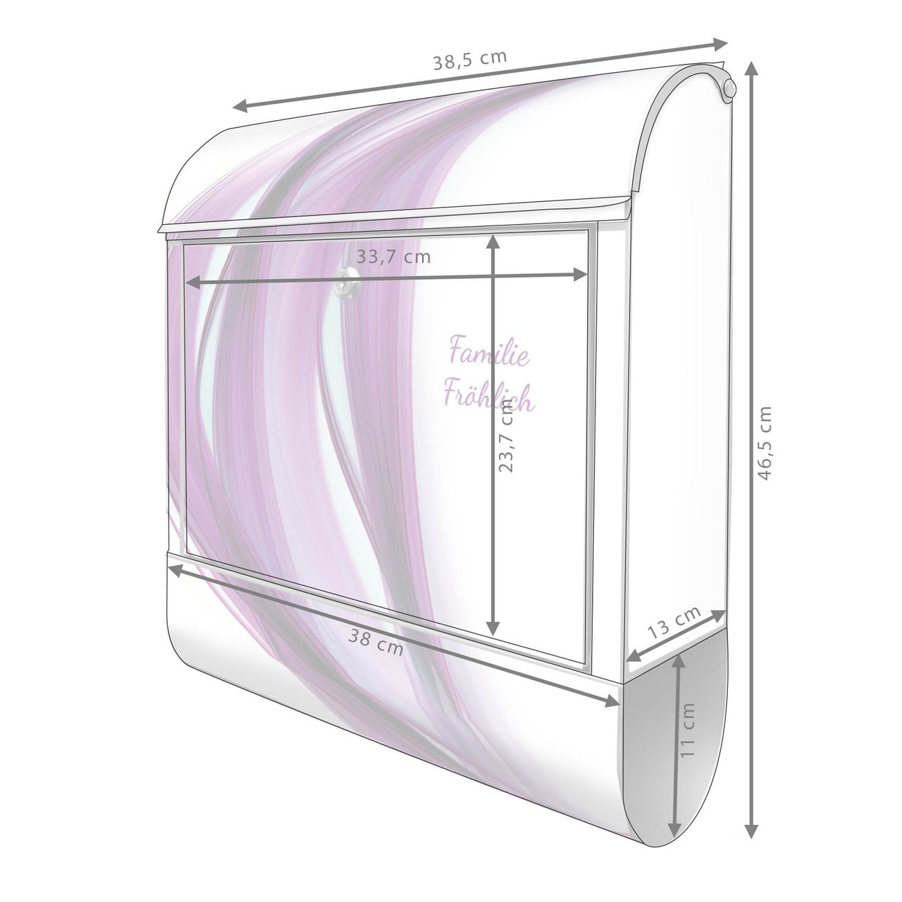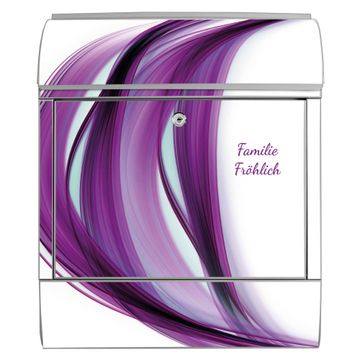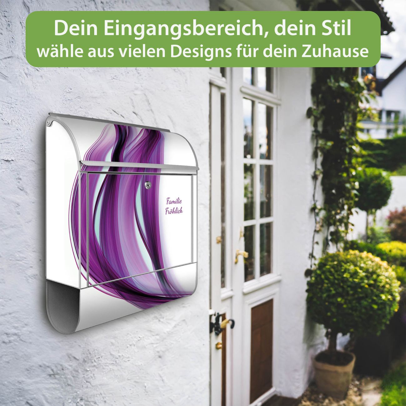 DESIGN: Der Postkasten mit Motiv Violet Element hat ein sehr ansprechendes und ausgefallenes Design, damit entlocken Sie Ihren Nachbarn und dem Postboten ein Lächeln. Heben Sie Sich von der tristen grauen Masse ab, ohne auf Funktionalität zu verzichten. DETAILS: Der Postkasten besteht aus pulverbeschichtetem Stahl. Er ist 38x46x12,5cm groß. Das Motiv besteht aus einer wetter- und UV-resistenten Folie, die mit einem Schutzlaminat überzogen ist, sodass der Briefkasten zusätzlich vor Kratzern geschützt ist. Der Briefkasten wird mit Montagematerial, zusätzlich zwei Schlüssel sowie einer Bohrschablone geliefert. NUTZEN: Sie können diesen Briefkasten sowohl als Wandbriefkasten montieren oder einen passenden Ständer kaufen und als Standbriefkasten einbetonieren. Die Größe bietet genügend Platz für Sendungen aller Art, der Einwurf fasst auch größere A4 Sendungen. BANJADO: Ihr Briefkasten wird in Sachsen in einer kleinen Manufaktur von Hand veredelt. Die Motivfolie ist lösungsmittelfrei und schutzlaminiert für einen langen Halt. Wir legen großen Wert auf die Verbindung von Funktionalität und Design. Sie erhalten Handarbeit aus Sachsen.