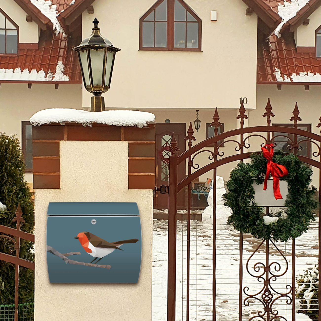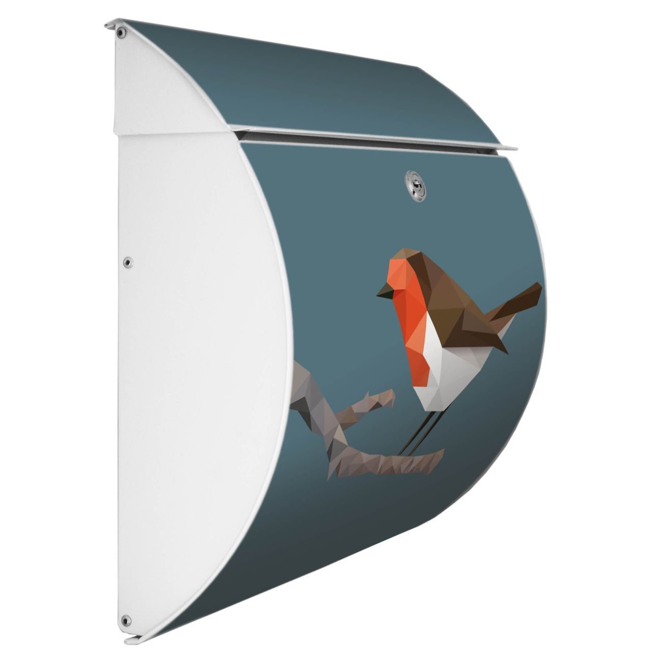 Motiv  abstrakter Vogel Nr. 12883 Material  vollflächig verzinktes und weiß lackiert Stahlblech Dekorfolie  UV-beständig, wetterfest Gesamtgröße  37,6x33x10,6cm BxHxT Briefschlitz  32,5x3,5cm BxH Gewicht  ca. 2,50 kg Zubehör  inkl. Öffnungsstopp, Montagezubehör und 2 Schlüssel