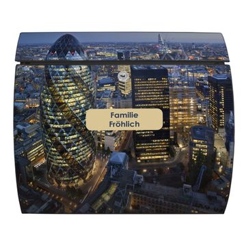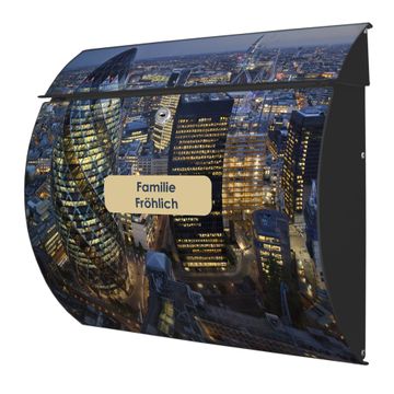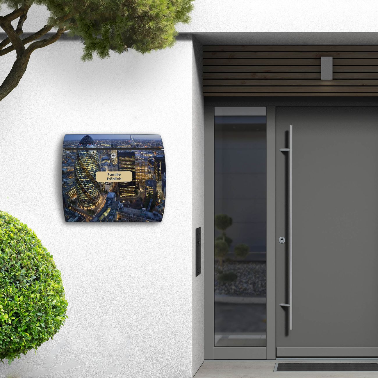 Der geschwungene Burg Wächter Briefkasten Toscana mit Motiv City Of London bietet Ihnen mit seinem großen Fassungsvermögen genügend Platz auch für große A4 Sendungen. Auf Wunsch können Sie bei uns den passenden Standfuß bestellen und so aus dem Wandbriefkasten einen Standbriefkasten machen. Der integrierte Öffnungsstopp ermöglicht eine einfache Handhabung beim Entnehmen der Post.
