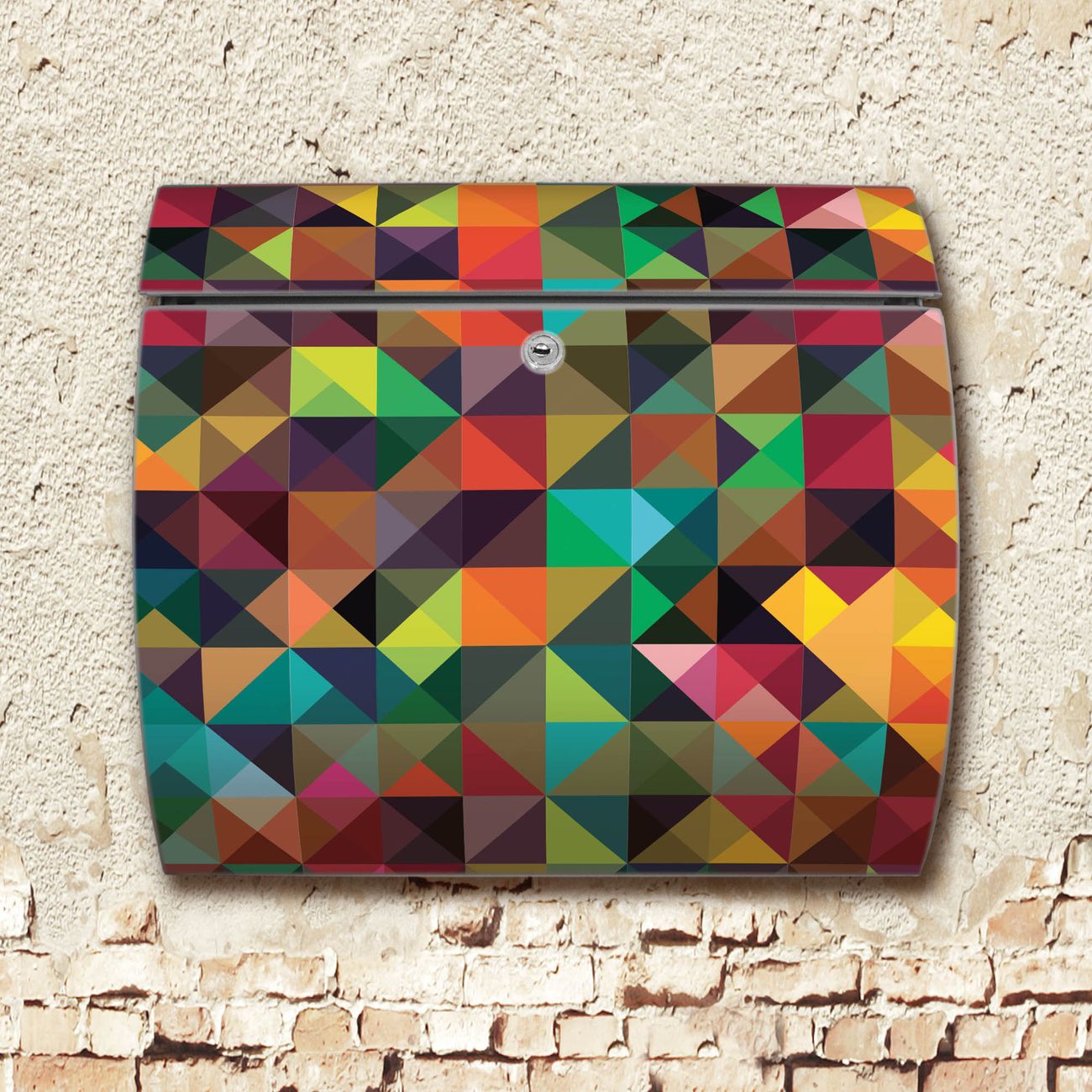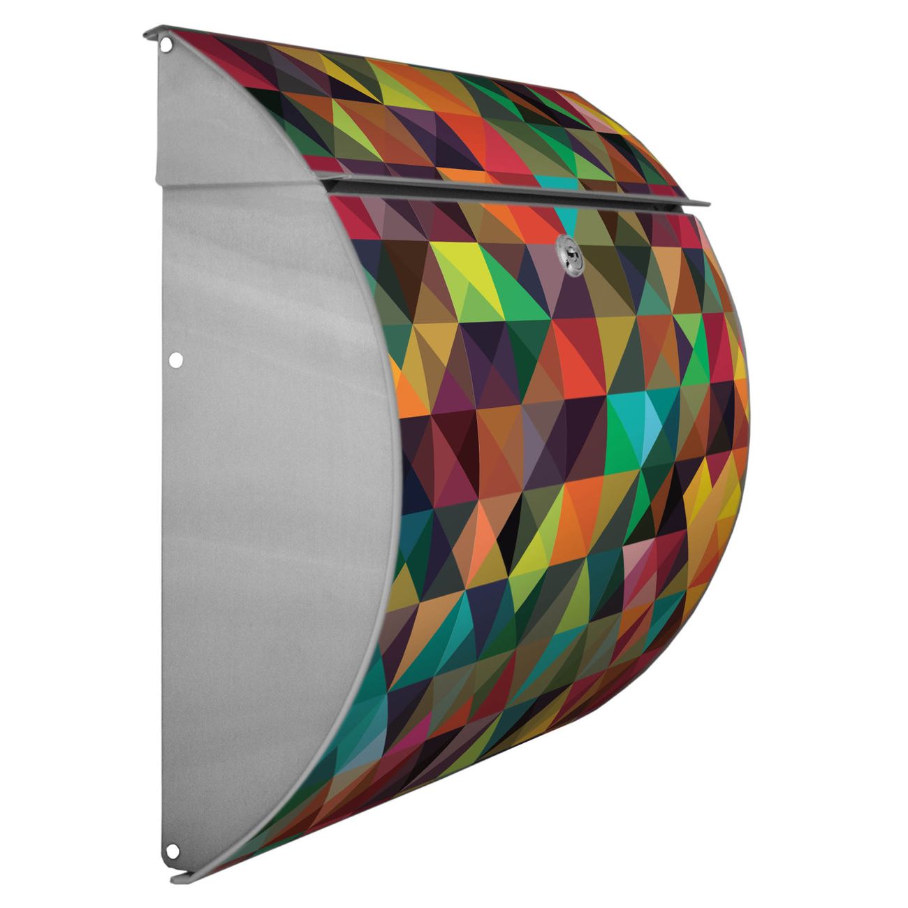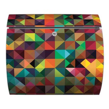 FUNKTION: DESIGN: Das Burg Wächter Modell Toscana mit Motiv Dunkles Kaleidoskop hat ein sehr ansprechendes und zeitloses Design und ist besonderes wetterfest. Heben Sie Sich von der tristen grauen Masse ab, ohne auf Funktionalität zu verzichten. Wir bieten Ihnen ebenfalls Namensschilder, bereits beschriftet oder frei zu beschriften, und verschiedene selbst gestaltete Bitte-Keine-Werbung-Aufkleber. DETAILS: Der Postkasten besteht aus vollflächig verzinktem Stahl welcher in Anthrazit oder Weiß lackiert wurde oder aus Edelstahl (je nach gewählter Variante). Das Motiv besteht aus einer wetter- und UV-festen Folie, die mit einem Schutzlaminat überzogen ist, durch die Ihren Briefkasten zusätzlich vor Kratzern geschützt ist und auf den Briefkasten kaschiert wurde. Sie erhalten zu Ihrem neuen Design Briefkasten 2 Schlüssel sowie das passende Montagematerial. BANJADO: Ihr Briefkasten wird von Burg Wächter in Deutschland gefertigt und in unserer kleinen Manufaktur von Hand veredelt. Die Motivfolie ist lösungsmittelfrei und schutzlaminiert, dies sorgt für einen langen Halt. Wir legen großen Wert auf die Verbindung von Funktionalität und Design. Sie erhalten besondere Handarbeit aus Sachsen und Made in Germany.
