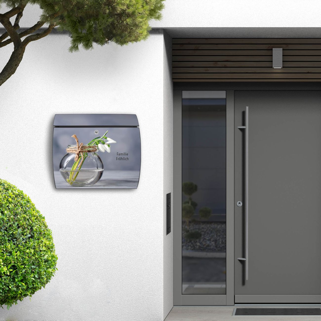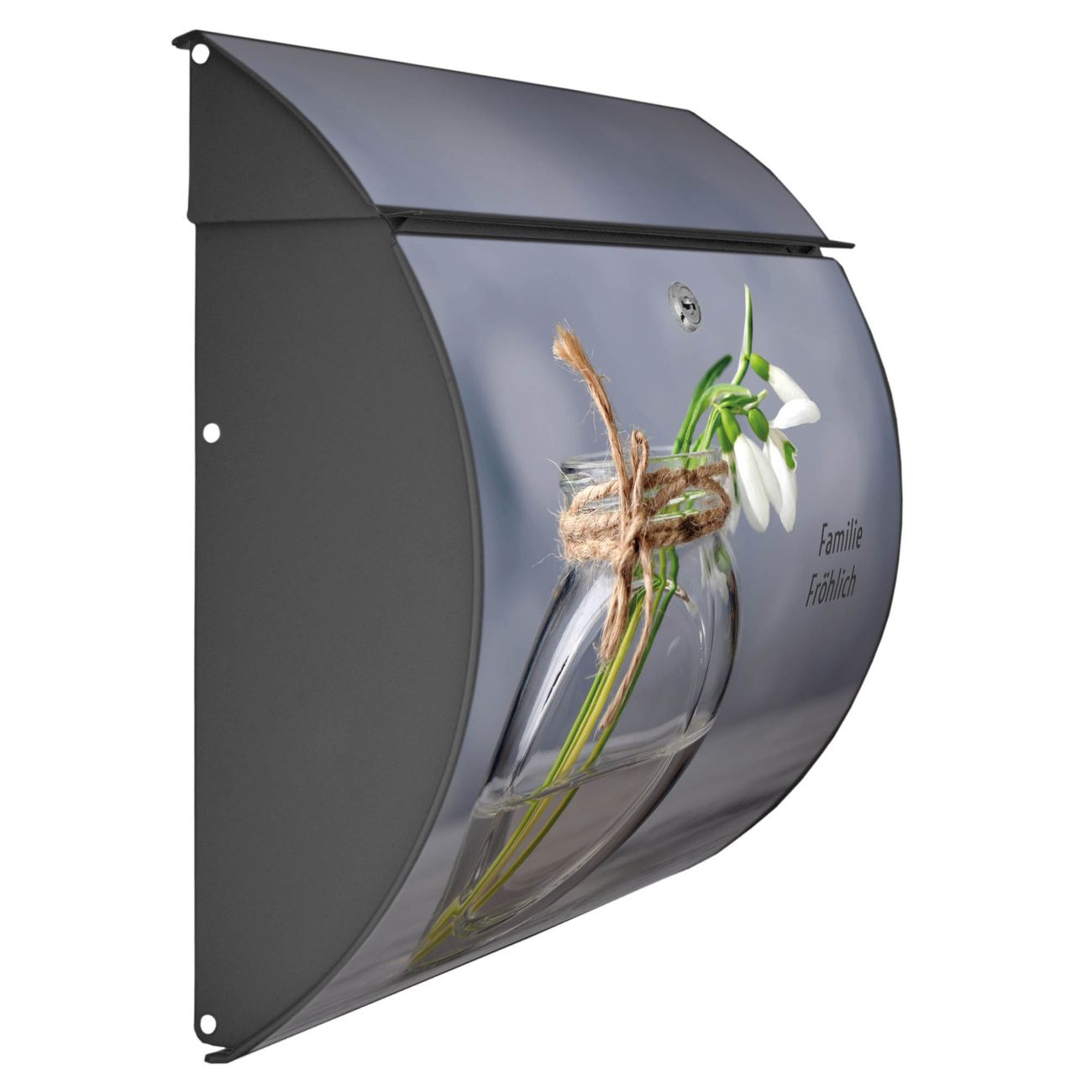 FUNKTION: DESIGN: Das Burg Wächter Modell Toscana mit Motiv Gänseblümchen im Glas hat ein sehr ansprechendes und zeitloses Design und ist besonderes wetterfest. Heben Sie Sich von der tristen grauen Masse ab, ohne auf Funktionalität zu verzichten. Wir bieten Ihnen ebenfalls Namensschilder, bereits beschriftet oder frei zu beschriften, und verschiedene selbst gestaltete Bitte-Keine-Werbung-Aufkleber. DETAILS: Der Postkasten besteht aus vollflächig verzinktem Stahl welcher in Anthrazit oder Weiß lackiert wurde oder aus Edelstahl (je nach gewählter Variante). Das Motiv besteht aus einer wetter- und UV-festen Folie, die mit einem Schutzlaminat überzogen ist, durch die Ihren Briefkasten zusätzlich vor Kratzern geschützt ist und auf den Briefkasten kaschiert wurde. Sie erhalten zu Ihrem neuen Design Briefkasten 2 Schlüssel sowie das passende Montagematerial. BANJADO: Ihr Briefkasten wird von Burg Wächter in Deutschland gefertigt und in unserer kleinen Manufaktur von Hand veredelt. Die Motivfolie ist lösungsmittelfrei und schutzlaminiert, dies sorgt für einen langen Halt. Wir legen großen Wert auf die Verbindung von Funktionalität und Design. Sie erhalten besondere Handarbeit aus Sachsen und Made in Germany.