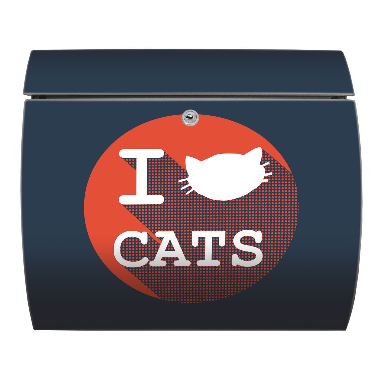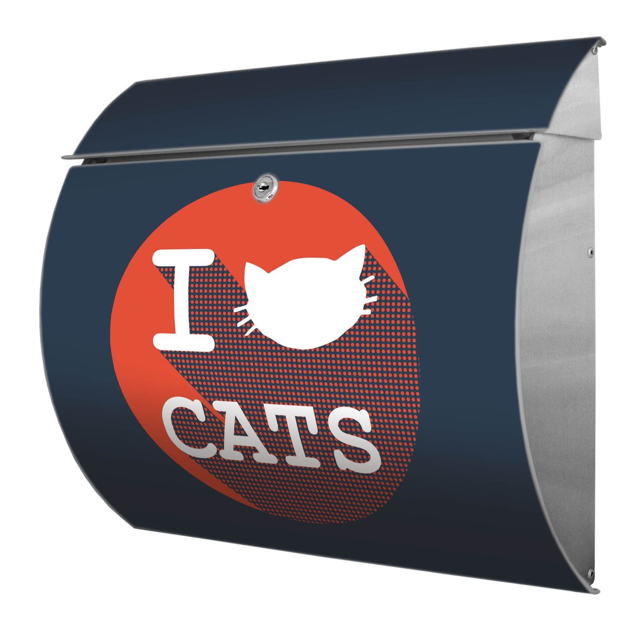 Motiv  I Love Cats Nr. 12134 Material  Edelstahl Dekorfolie  UV-beständig, wetterfest Gesamtgröße  37,6x33x10,6cm BxHxT Briefschlitz  32,5x3,5cm BxH Gewicht  ca. 2,30 kg Zubehör  inkl. Öffnungsstopp, Montagezubehör und 2 Schlüssel