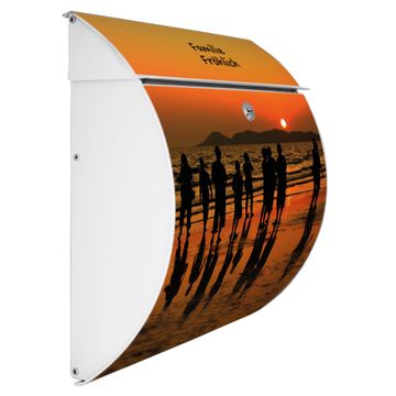 FUNKTION: DESIGN: Das Burg Wächter Modell Toscana mit Motiv Koh Samet Beach hat ein sehr ansprechendes und zeitloses Design und ist besonderes wetterfest. Heben Sie Sich von der tristen grauen Masse ab, ohne auf Funktionalität zu verzichten. Wir bieten Ihnen ebenfalls Namensschilder, bereits beschriftet oder frei zu beschriften, und verschiedene selbst gestaltete Bitte-Keine-Werbung-Aufkleber. DETAILS: Der Postkasten besteht aus vollflächig verzinktem Stahl welcher in Anthrazit oder Weiß lackiert wurde oder aus Edelstahl (je nach gewählter Variante). Das Motiv besteht aus einer wetter- und UV-festen Folie, die mit einem Schutzlaminat überzogen ist, durch die Ihren Briefkasten zusätzlich vor Kratzern geschützt ist und auf den Briefkasten kaschiert wurde. Sie erhalten zu Ihrem neuen Design Briefkasten 2 Schlüssel sowie das passende Montagematerial. BANJADO: Ihr Briefkasten wird von Burg Wächter in Deutschland gefertigt und in unserer kleinen Manufaktur von Hand veredelt. Die Motivfolie ist lösungsmittelfrei und schutzlaminiert, dies sorgt für einen langen Halt. Wir legen großen Wert auf die Verbindung von Funktionalität und Design. Sie erhalten besondere Handarbeit aus Sachsen und Made in Germany.