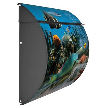 Der geschwungene Burg Wächter Briefkasten Toscana mit Motiv Korallenriff 1 bietet Ihnen mit seinem großen Fassungsvermögen genügend Platz auch für große A4 Sendungen. Auf Wunsch können Sie bei uns den passenden Standfuß bestellen und so aus dem Wandbriefkasten einen Standbriefkasten machen. Der integrierte Öffnungsstopp ermöglicht eine einfache Handhabung beim Entnehmen der Post.